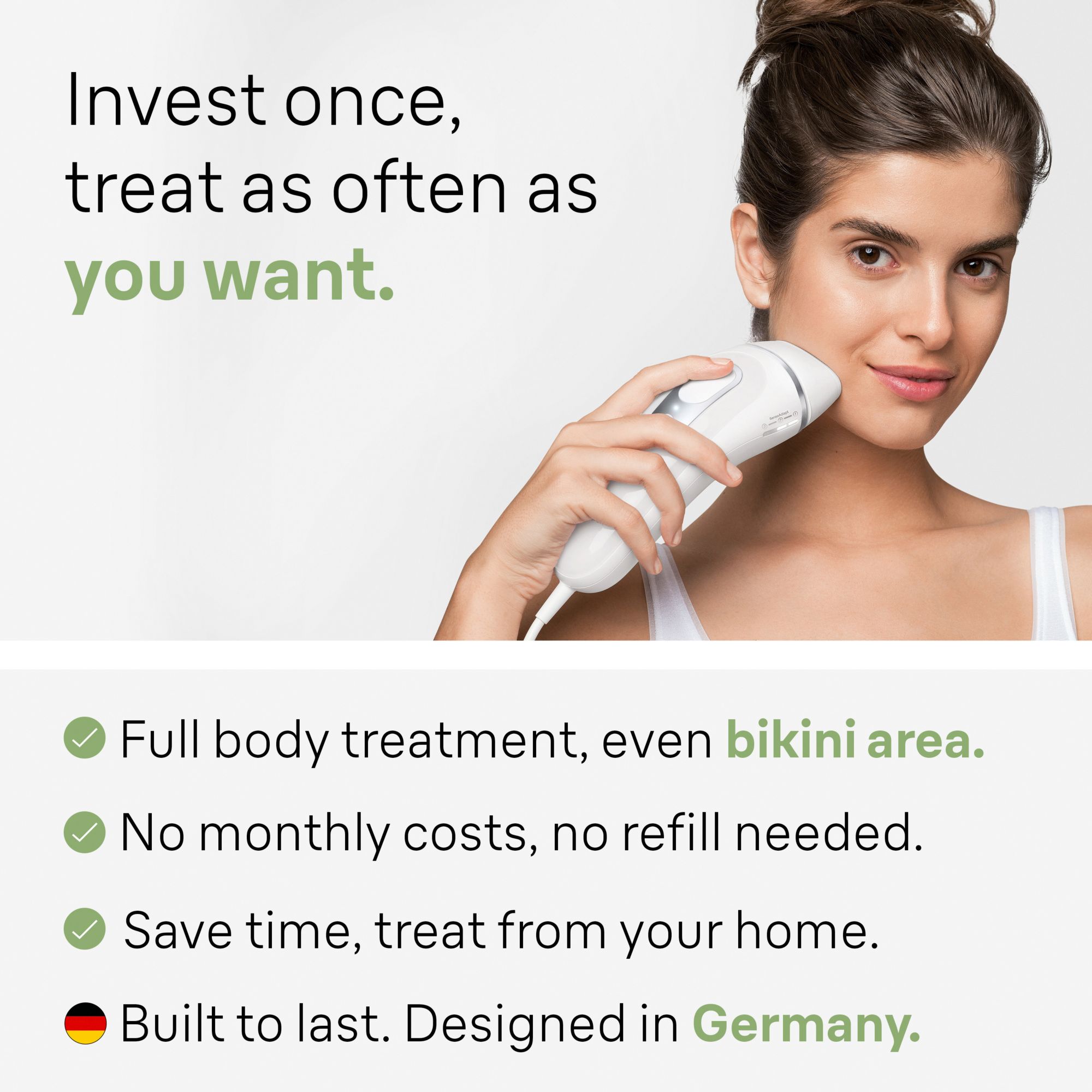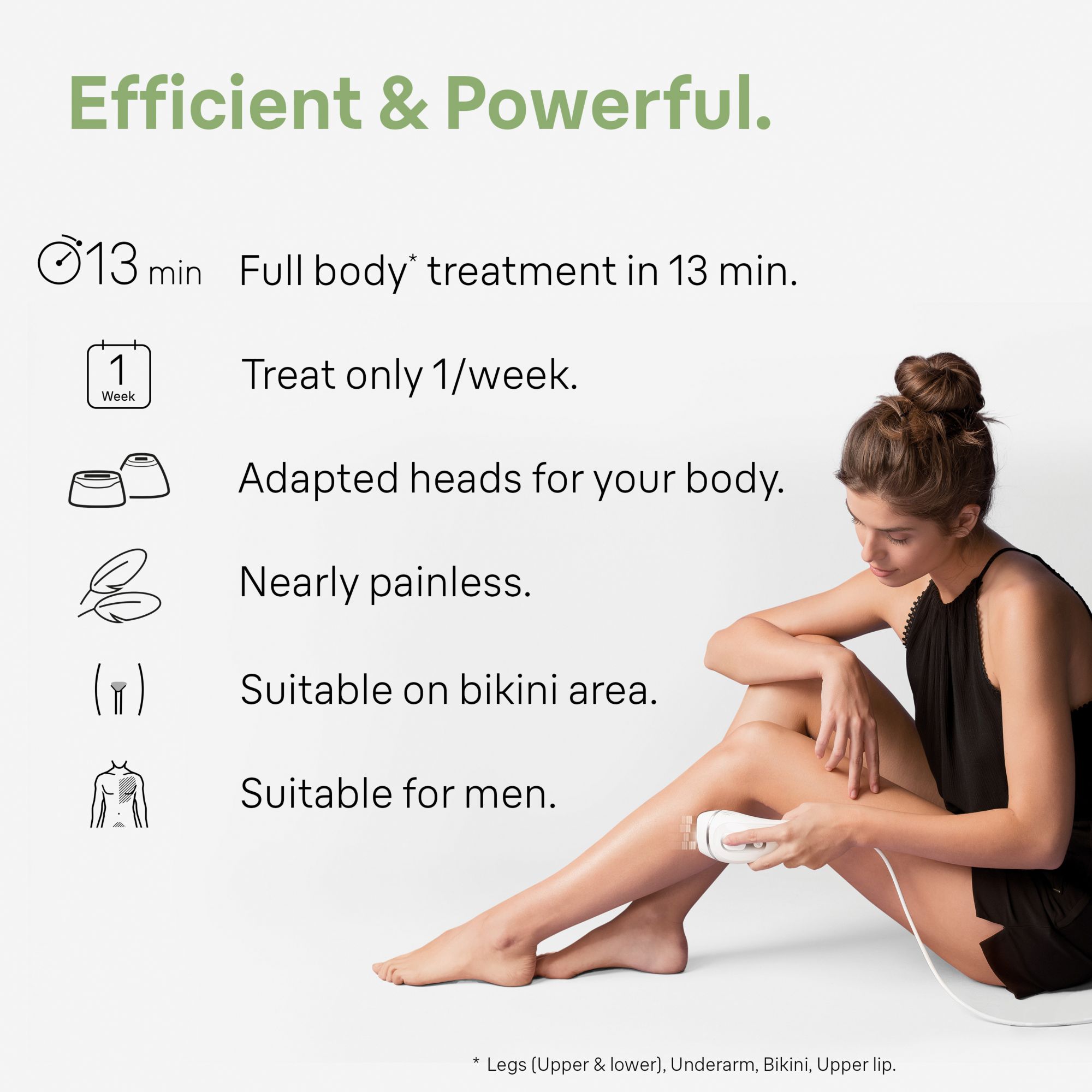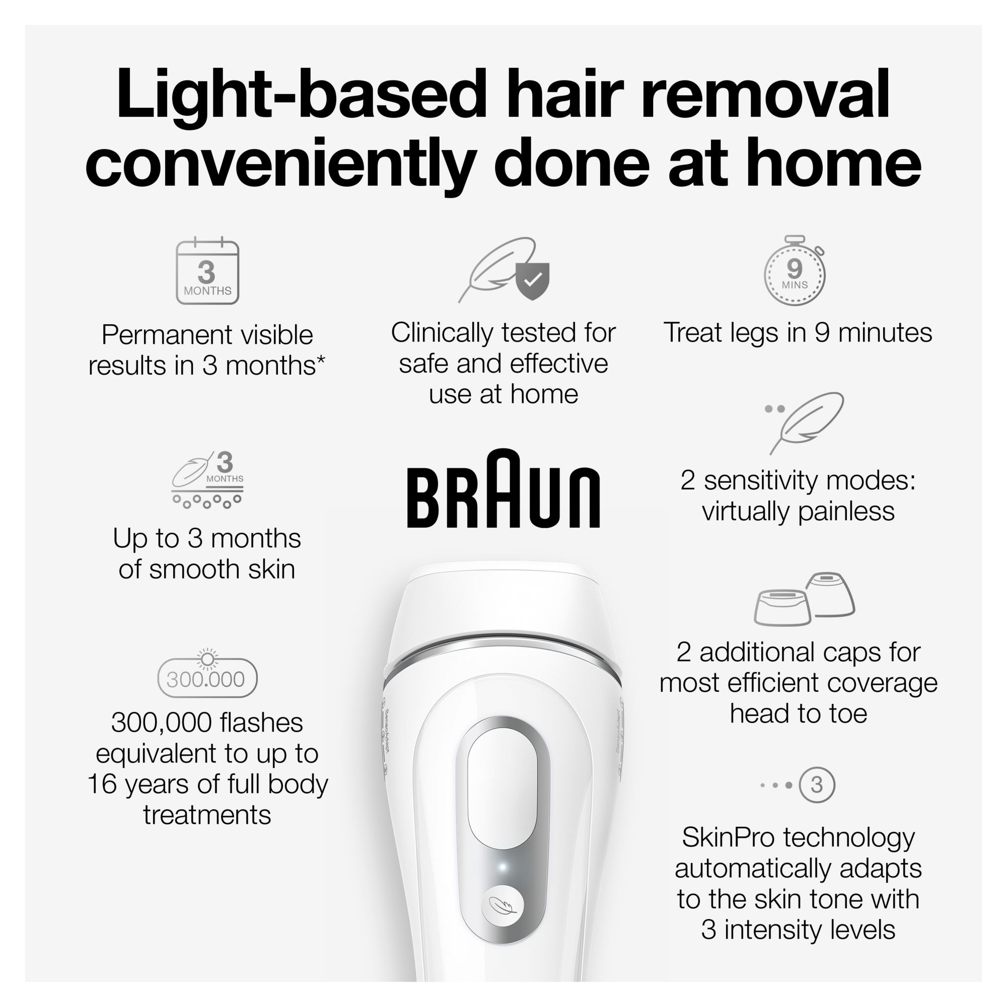 Fast and easy: flashes up to 100 times per minute for an effortless treatment and better skin coverage for less missed spots