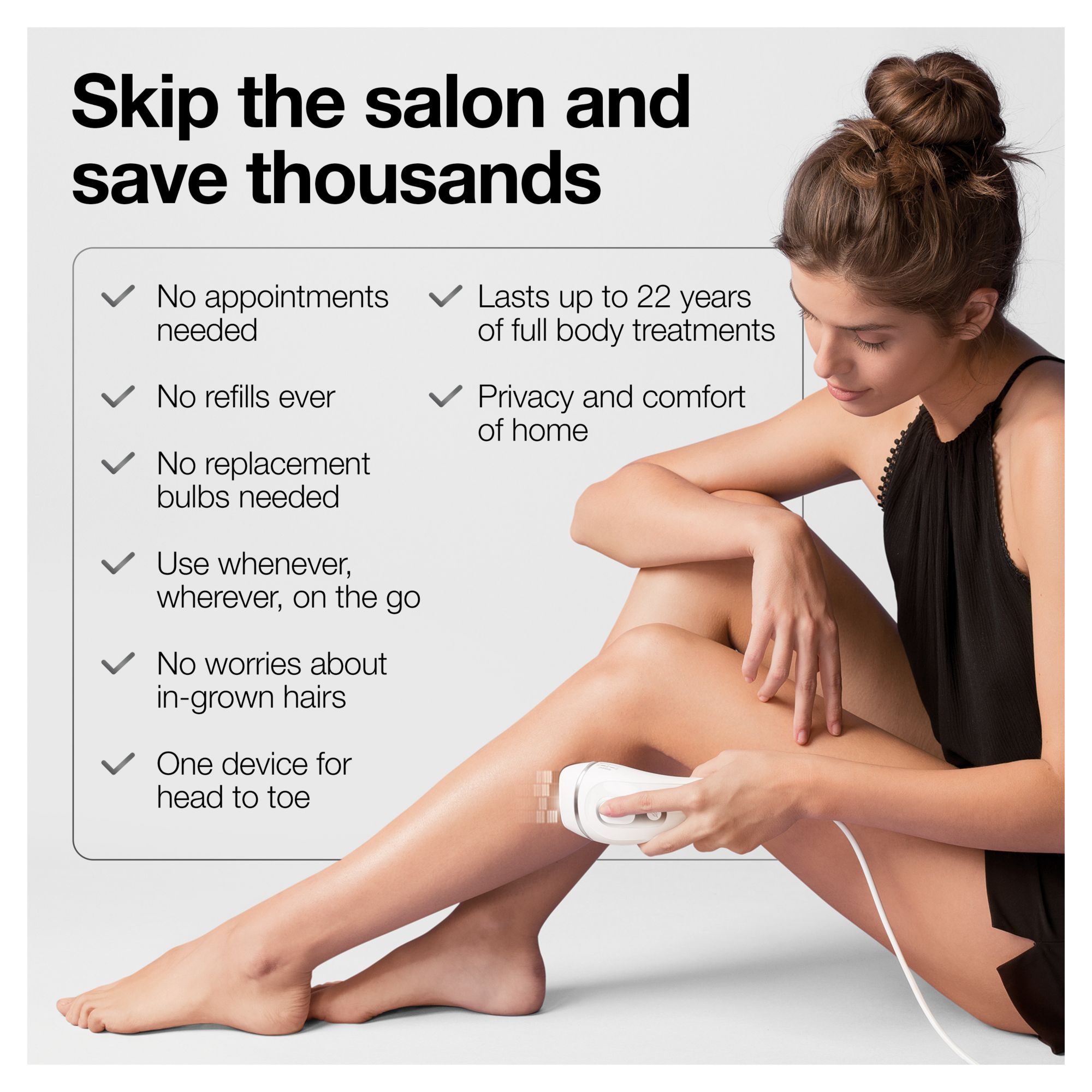 Automatically adapts performance to your skin tone and body part: Optimal power for every body part with Skin Pro -salon-like technology that automatically and continuously adapts to your skin tone