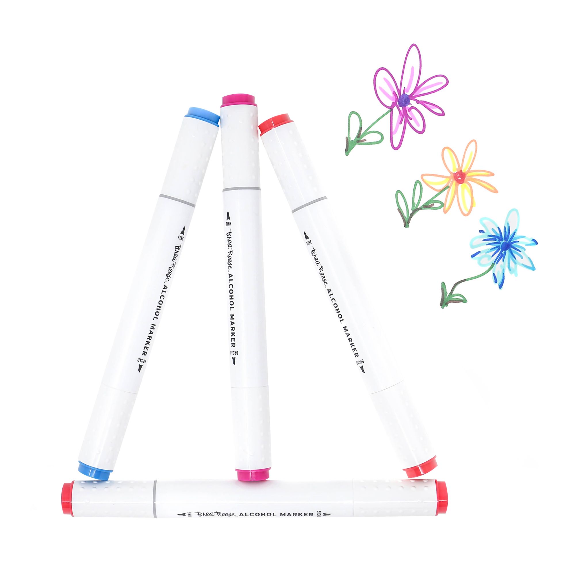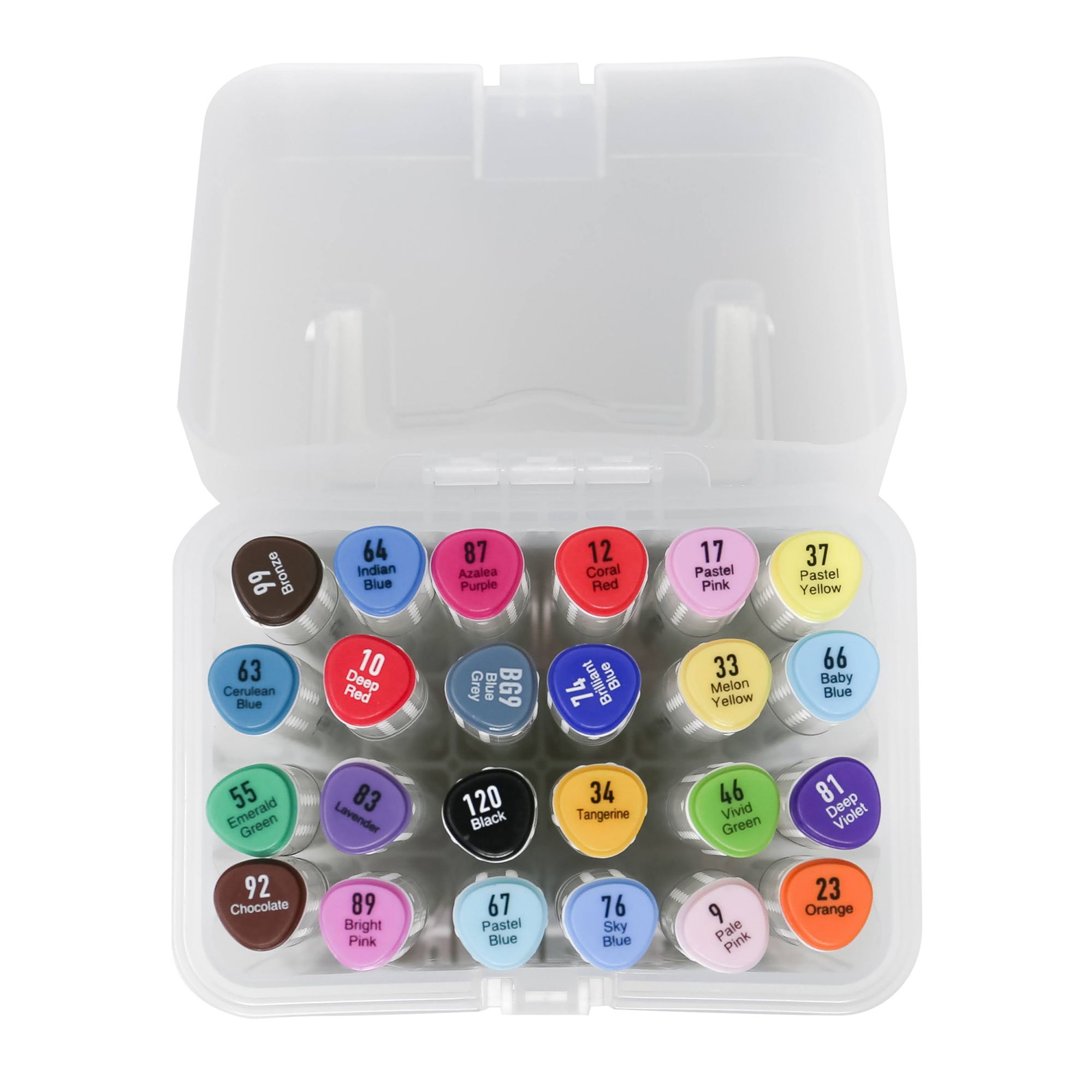 Brea Reese Alcohol Markers are of professional grade quality. These vibrant, blend-able markers come are dual-tipped, fine and broad, allowing the artist to write or draw with thick or thin lines. Each marker is color coded for easy organization and color identification. Brea Reese alcohol based markers come in a hard plastic container with a handle for easy storage.