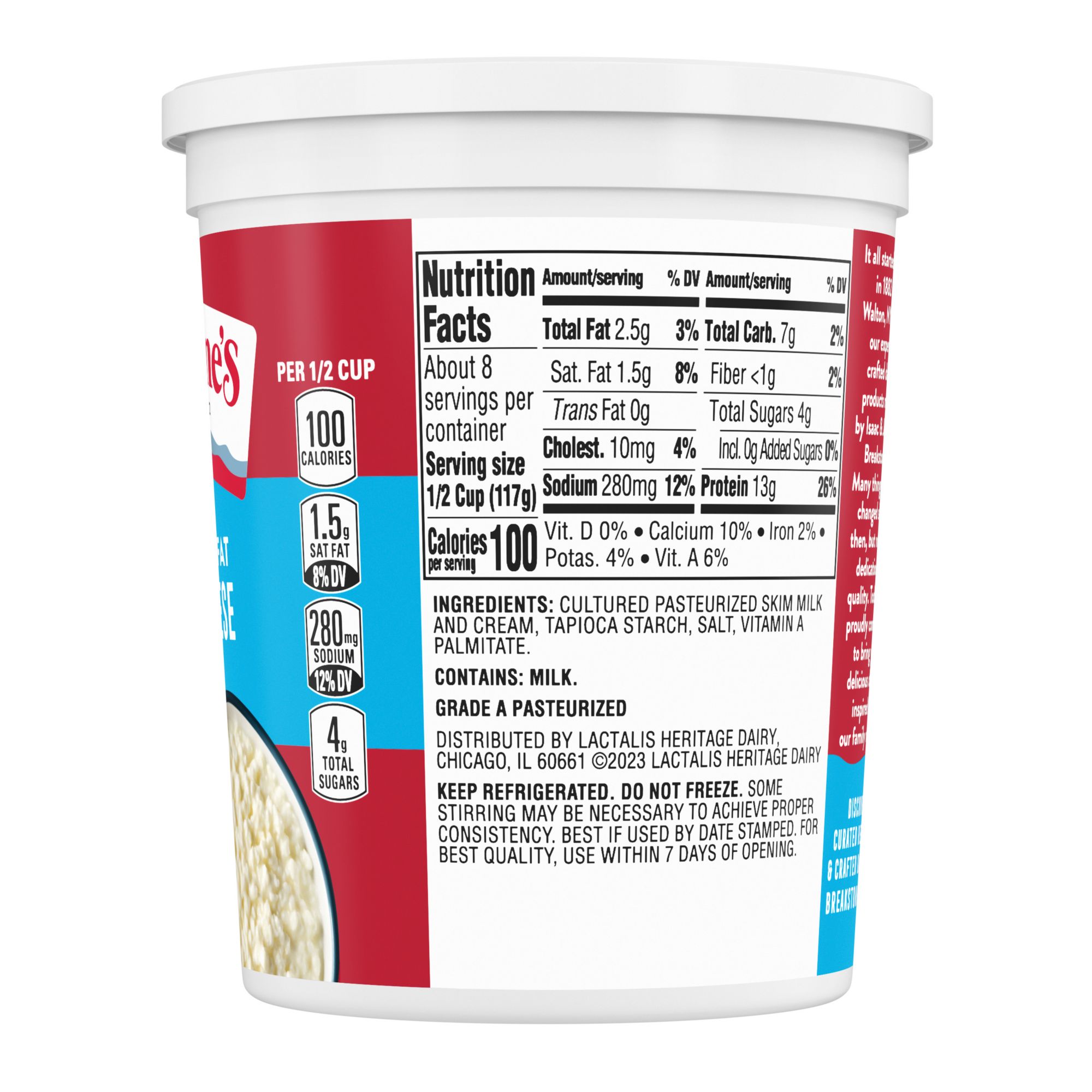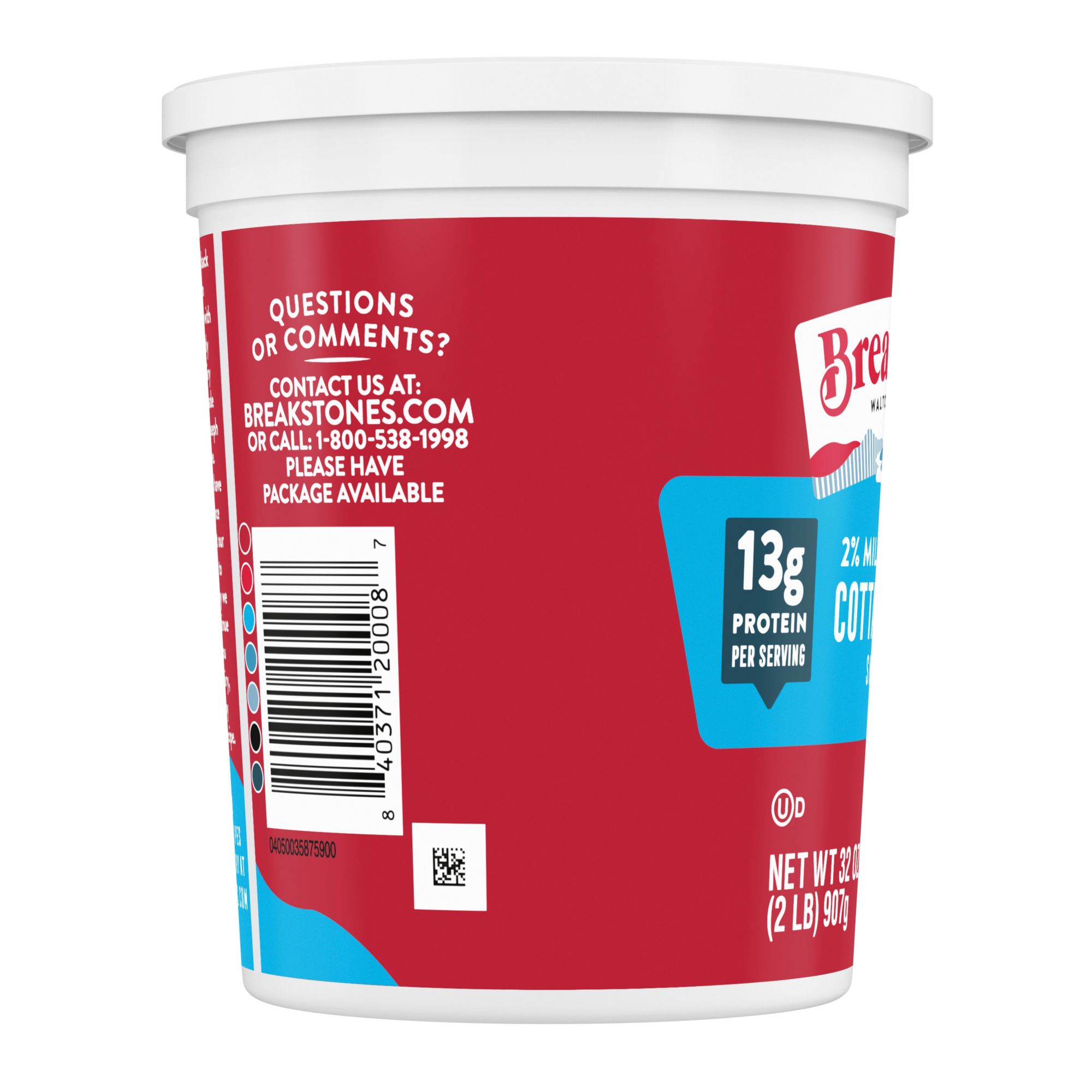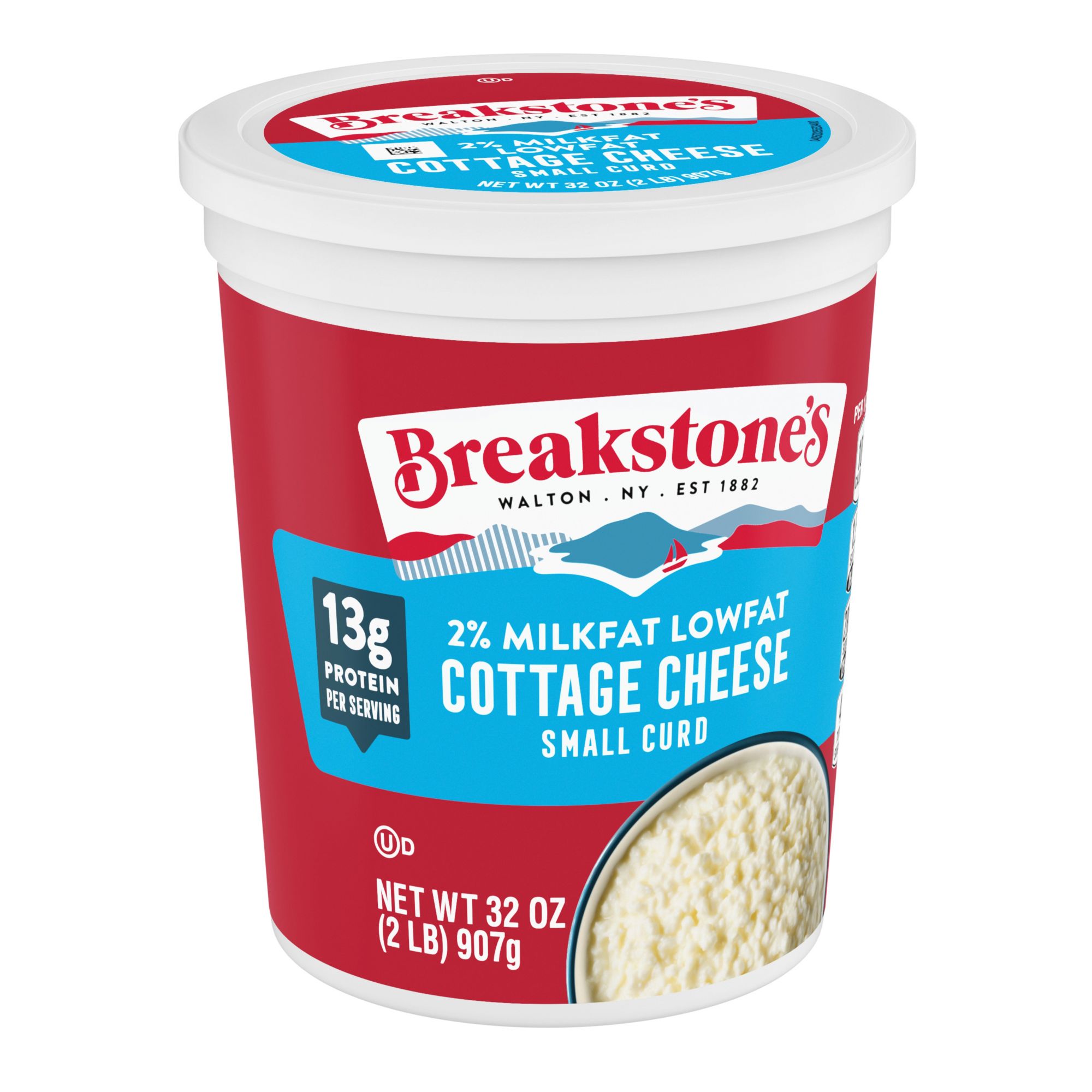 Breakstone’s 2% milkfat low fat small curd cottage cheese is delicious, creamy, and packed with protein. Enjoyed on its own, as a side dish, a protein snack or an ingredient in a variety of recipes, Breakstone’s low fat cottage cheese is extremely versatile. With over 140 years of heritage, Breakstone’s pays tribute to cultured dairy by bringing delicious high-quality dairy to your home.