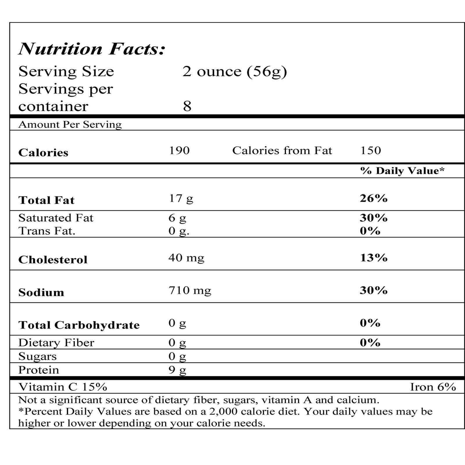 Vacuum-sealed packaging Low in carbohydrates and high in protein Includes 16 oz. of sausage
