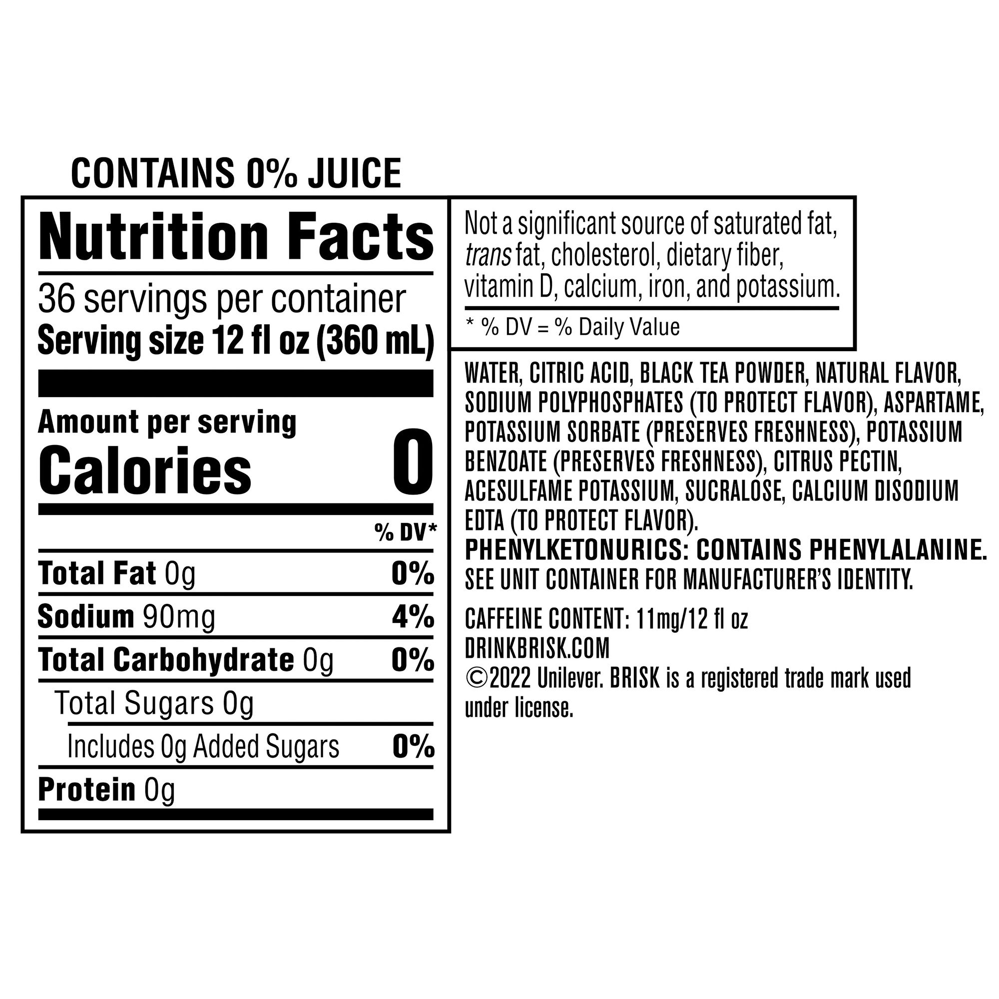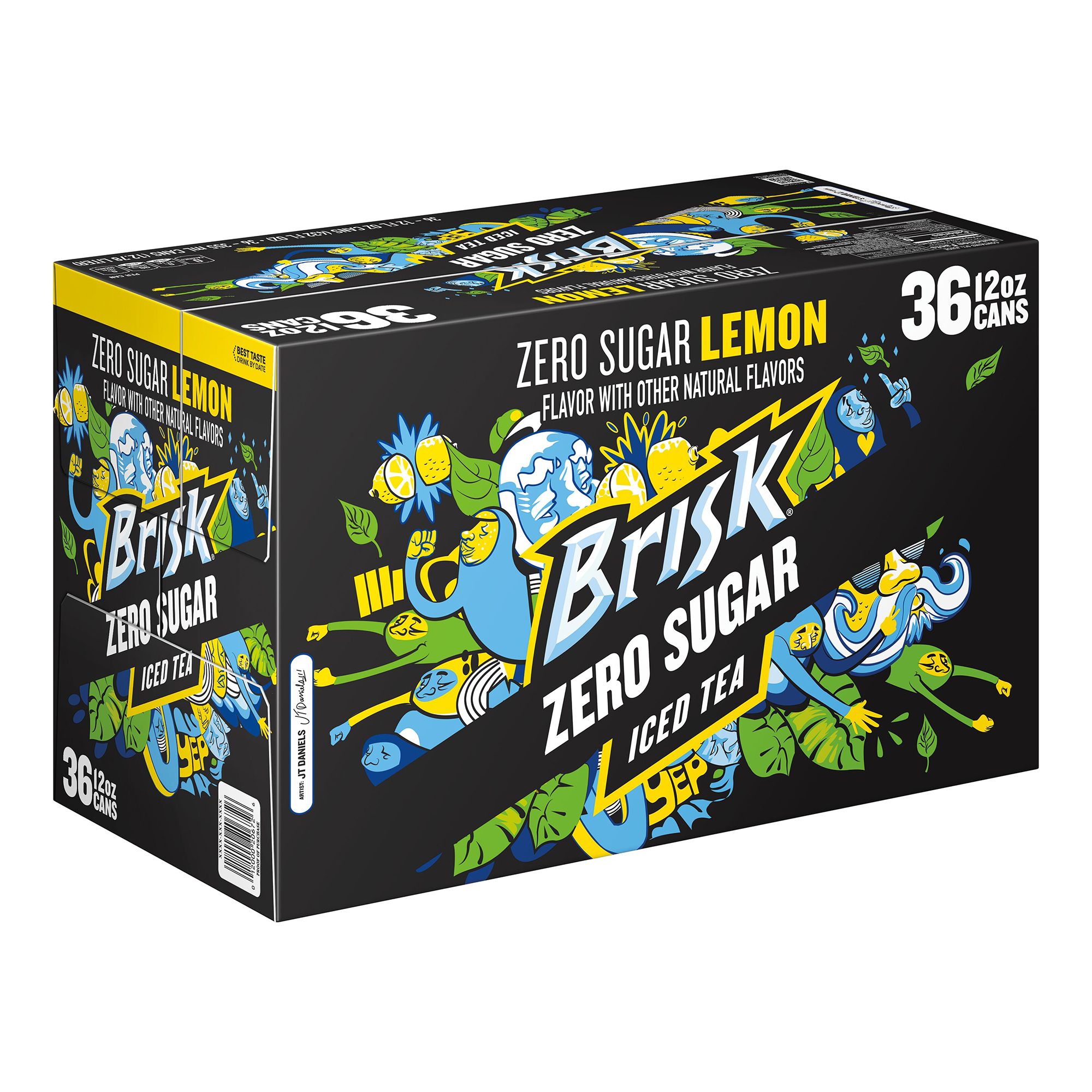 Includes 36 cans of Brisk Zero Sugar Iced Tea