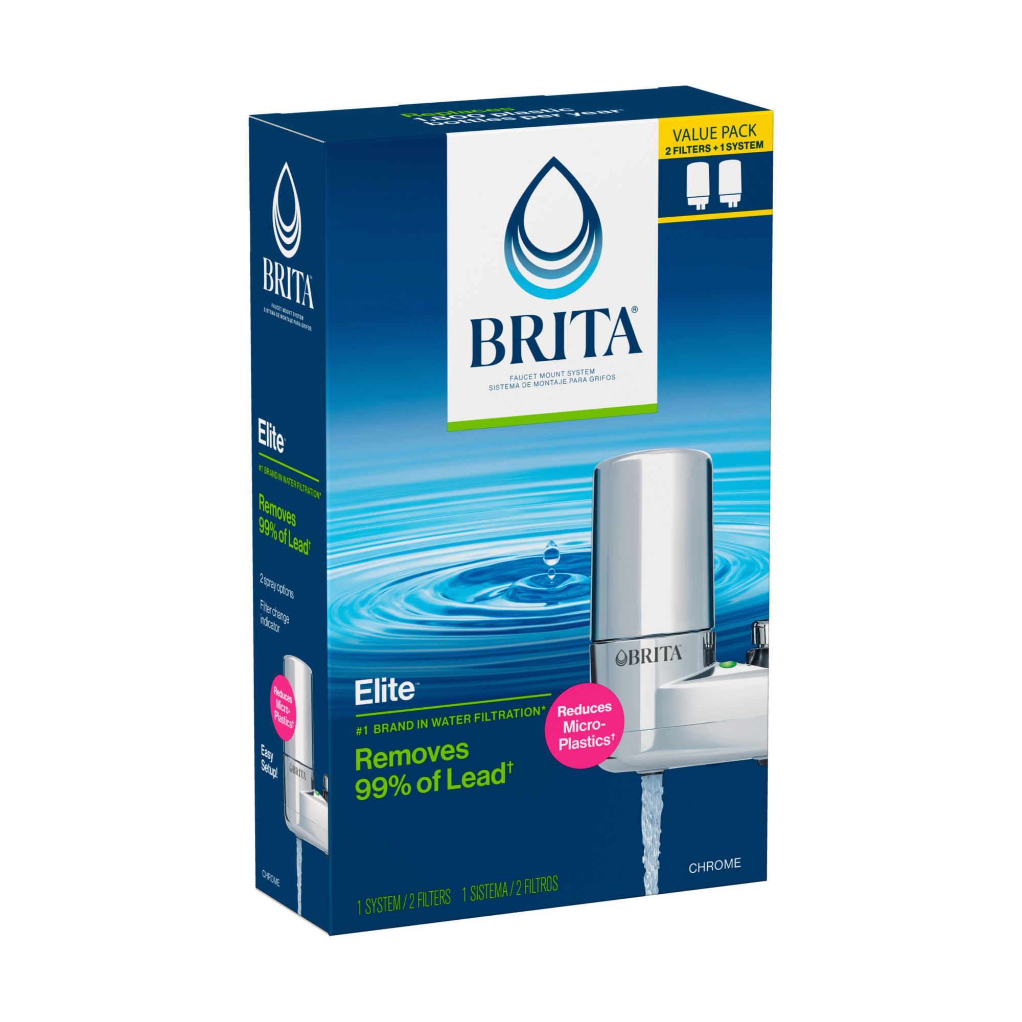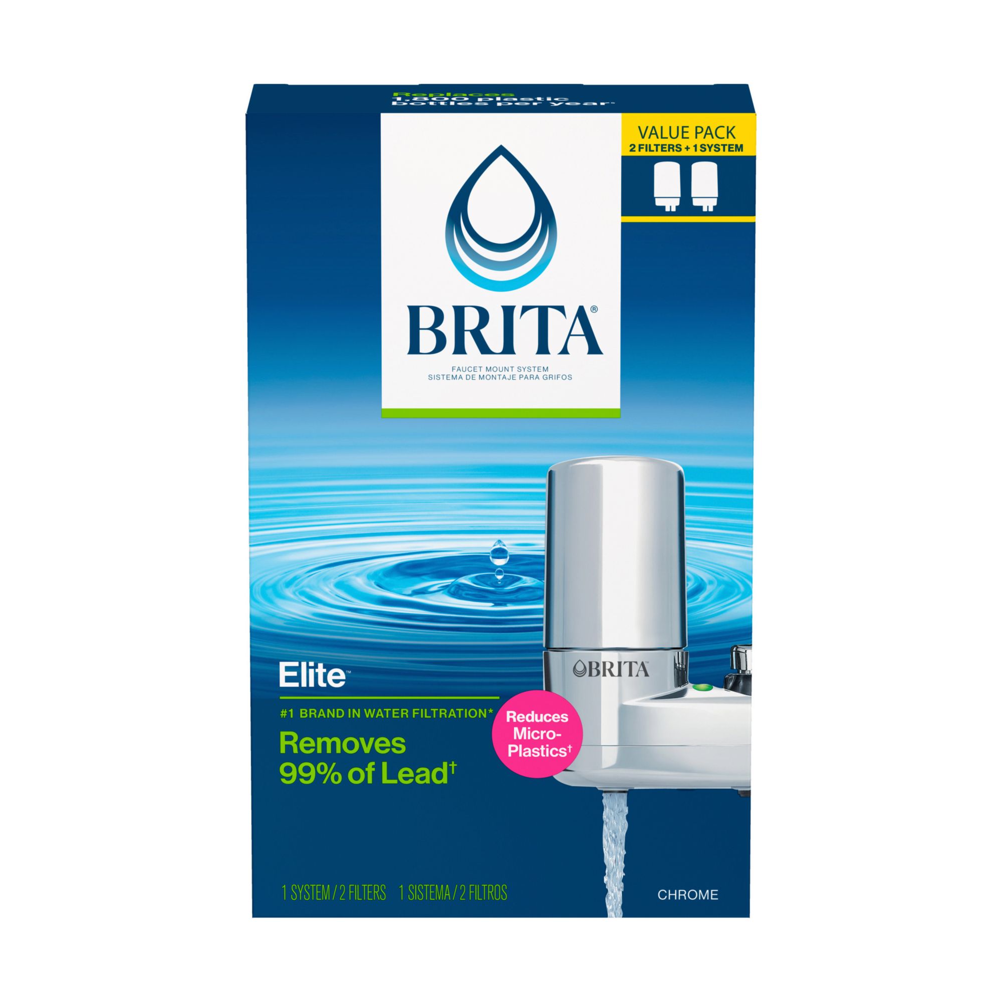 Brita Faucet Mount System with Filter Change Reminder, Two Replacement Filters