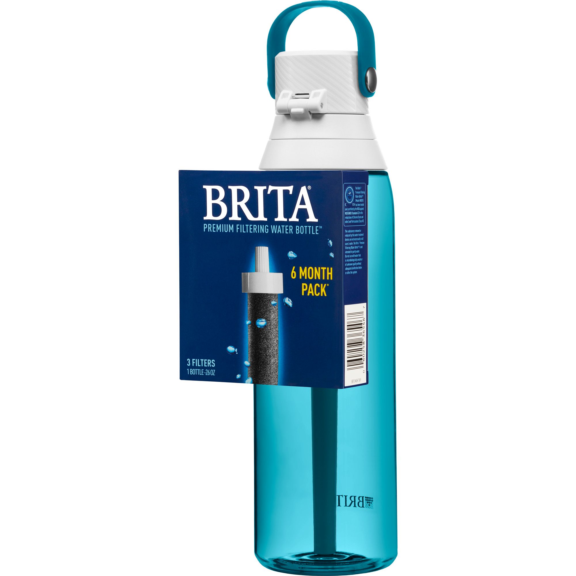 The BPA-free Brita Premium Filtering Bottle holds 26 oz of water, and is designed with a Brita filter that fits in the straw and makes water taste great