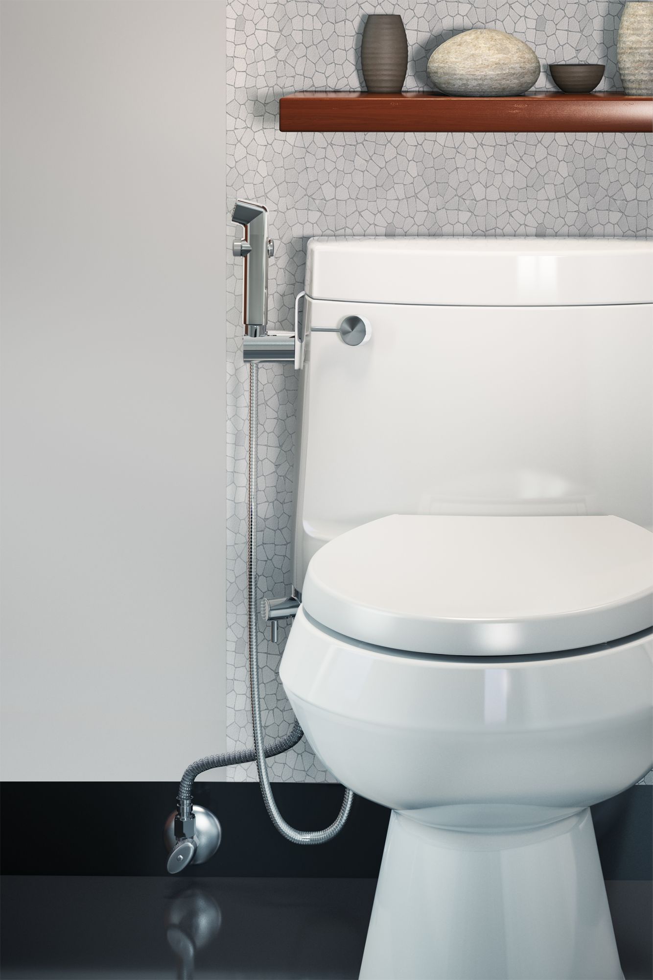 The Brondell SimpleSpa hand-held bidet is a simple and inexpensive way to retrofit your existing toilet into a hygienic bidet. The elegant and ergonomic hand sprayer is simple to use and offers several mounting options to easily install in any bathroom. The solid metal T-valve (with brass core) offers full pressure adjustability, backflow prevention and complete water shutoff. The flexible metal banded PVC hose makes the SimpleSpa one of the most reliable bidet sprayers on the market. Made of durable high quality components and backed by a 1-year warranty and superior customer support, the SimpleSpa is the quality choice for handheld bidet sprayers.