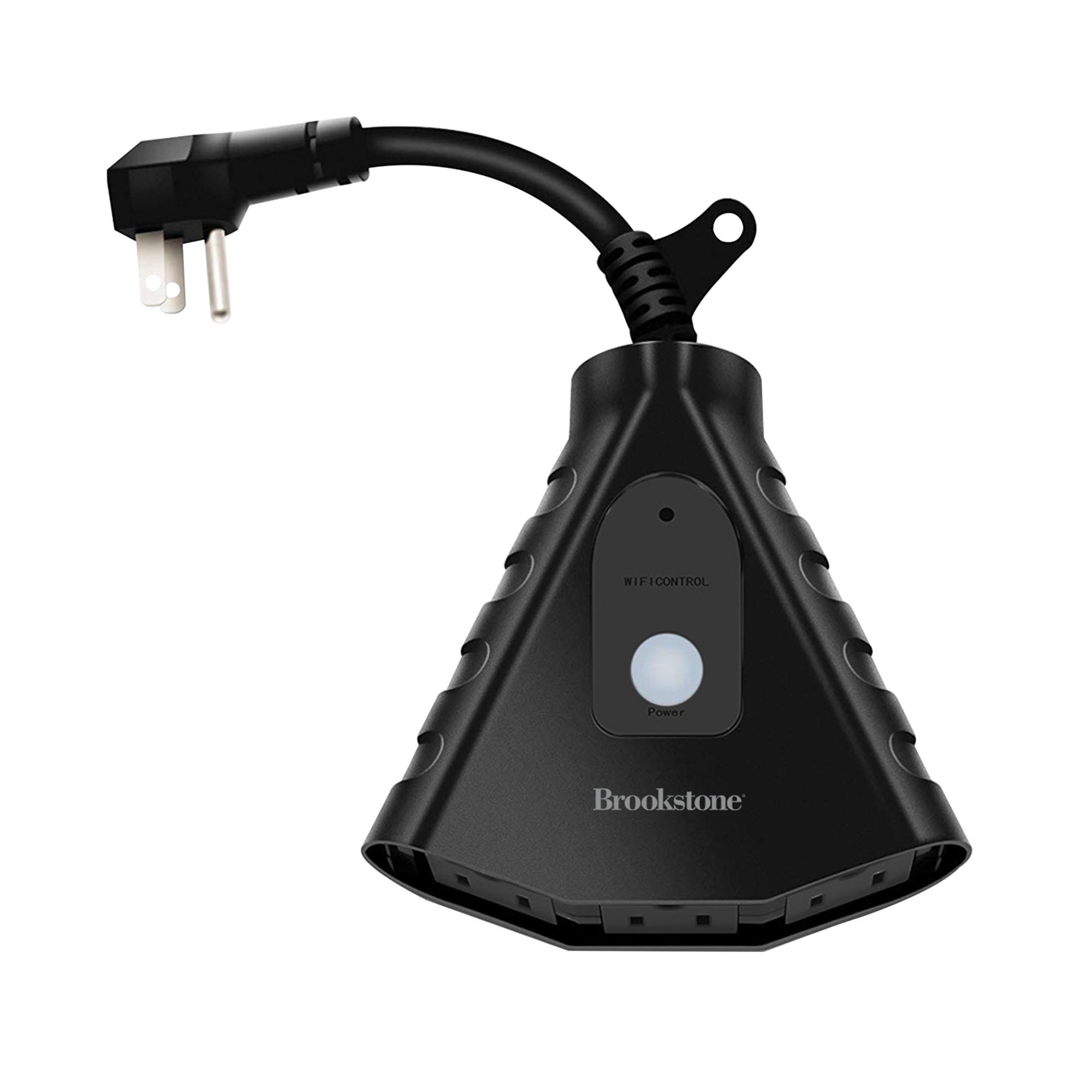 Control any device plugged into smart plug Programmable with schedule Controlled with phone app Controlled with smart speaker via Amazon Alexa or Google Assistant Outdoor smart plug is weatherproof Wi-Fi remote controlled Includes Brookstone Outdoor Smart Plug Warranty: 1 year limited