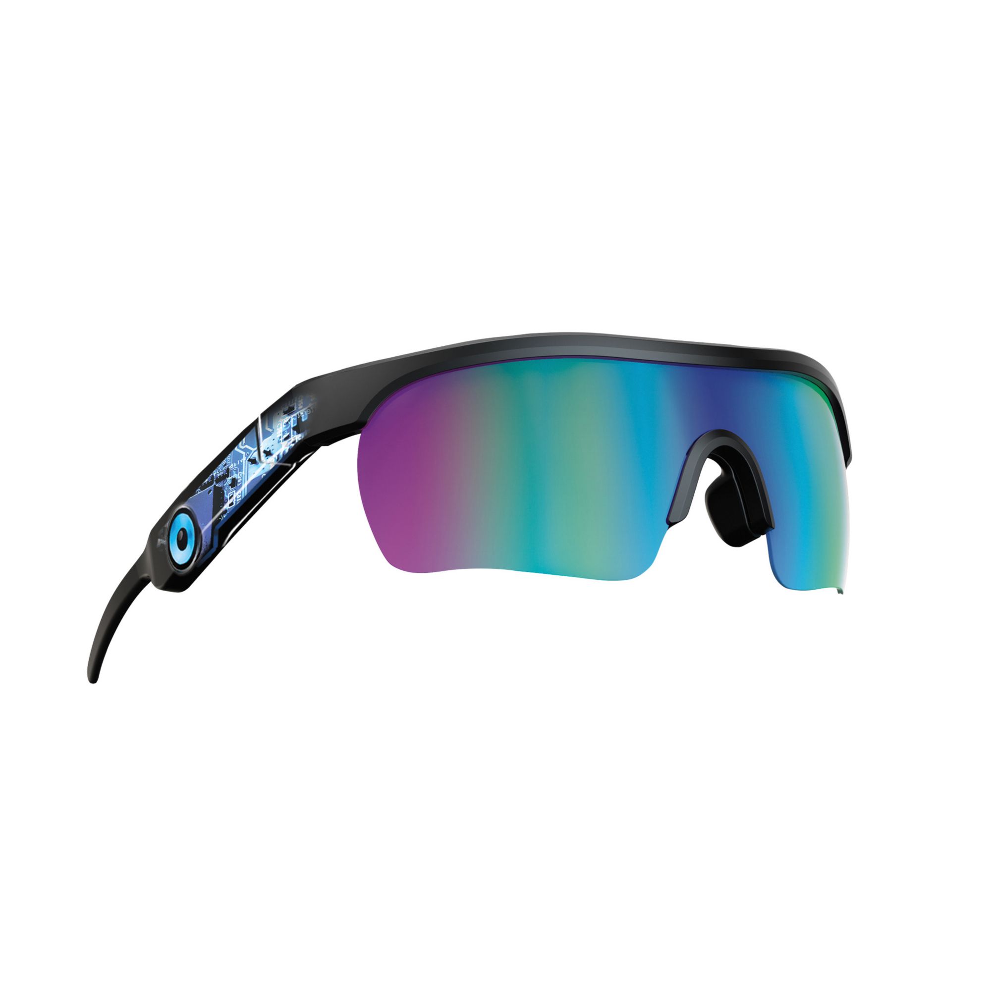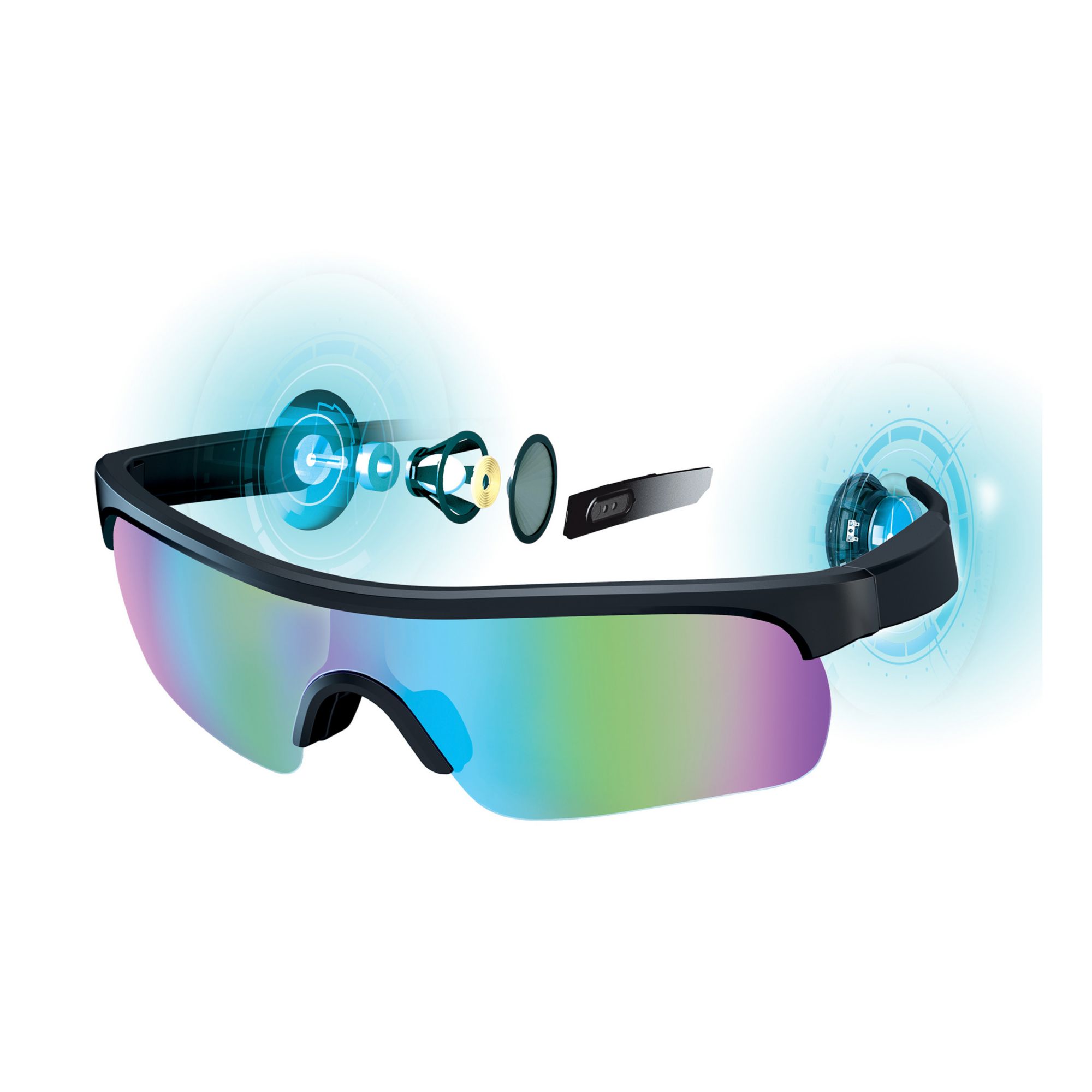 These Brookstone wireless sport sunglasses are a new lens of exploration, designed with open-ear audio sunglasses with a travel case. Shield your eyes from harmful UV rays and enjoy magnified clarity with the anti-glare lenses that offer optimum comfort and protection in the sun. Built-in onboard control surface with soft silicone tips for comfort. Two-hour playtime with built-in 16mm dynamic driver for deep bass sound. Effortlessly connect to Bluetooth right as you open the sunglasses. Enjoy these IPX5 waterproof sunglasses with a peak performance.