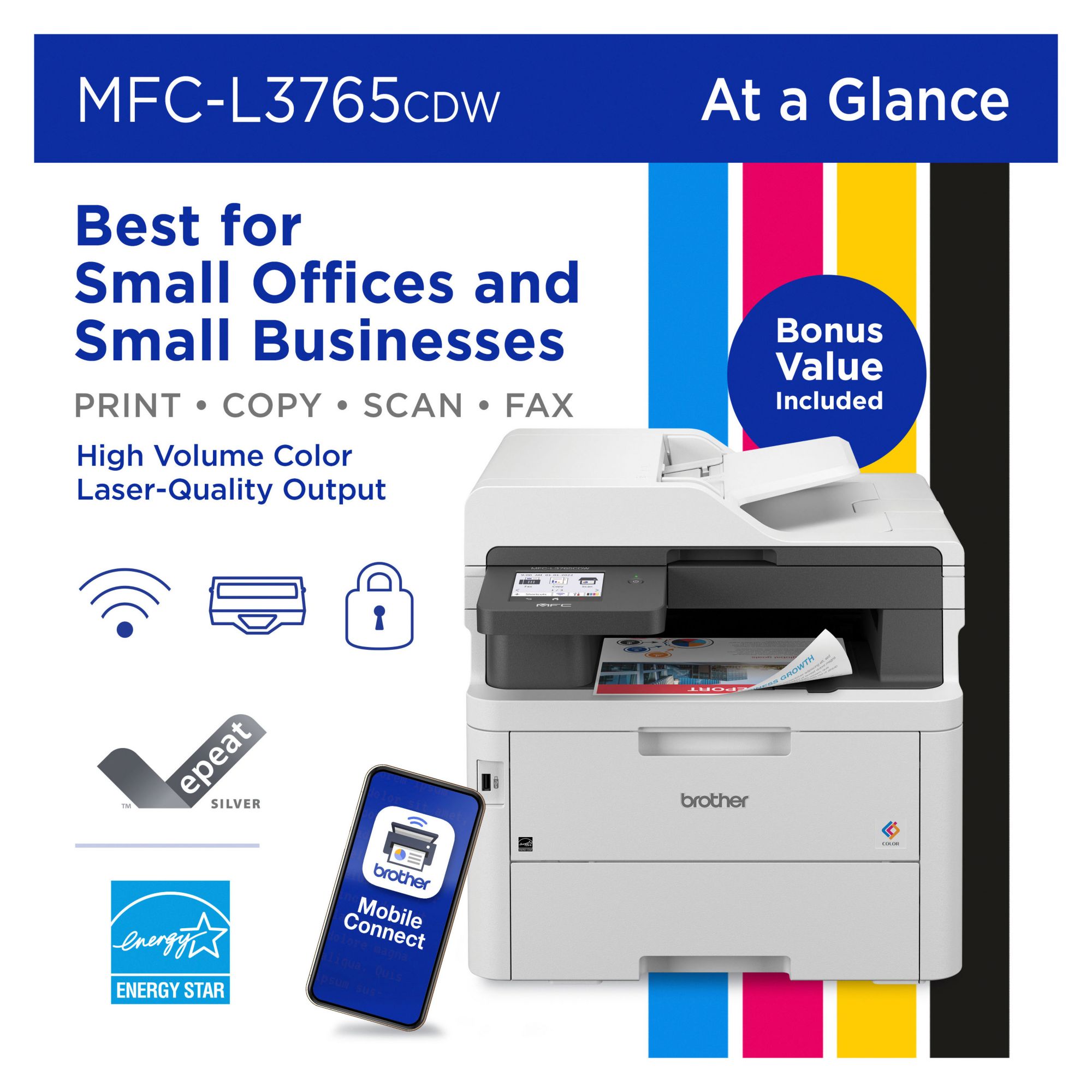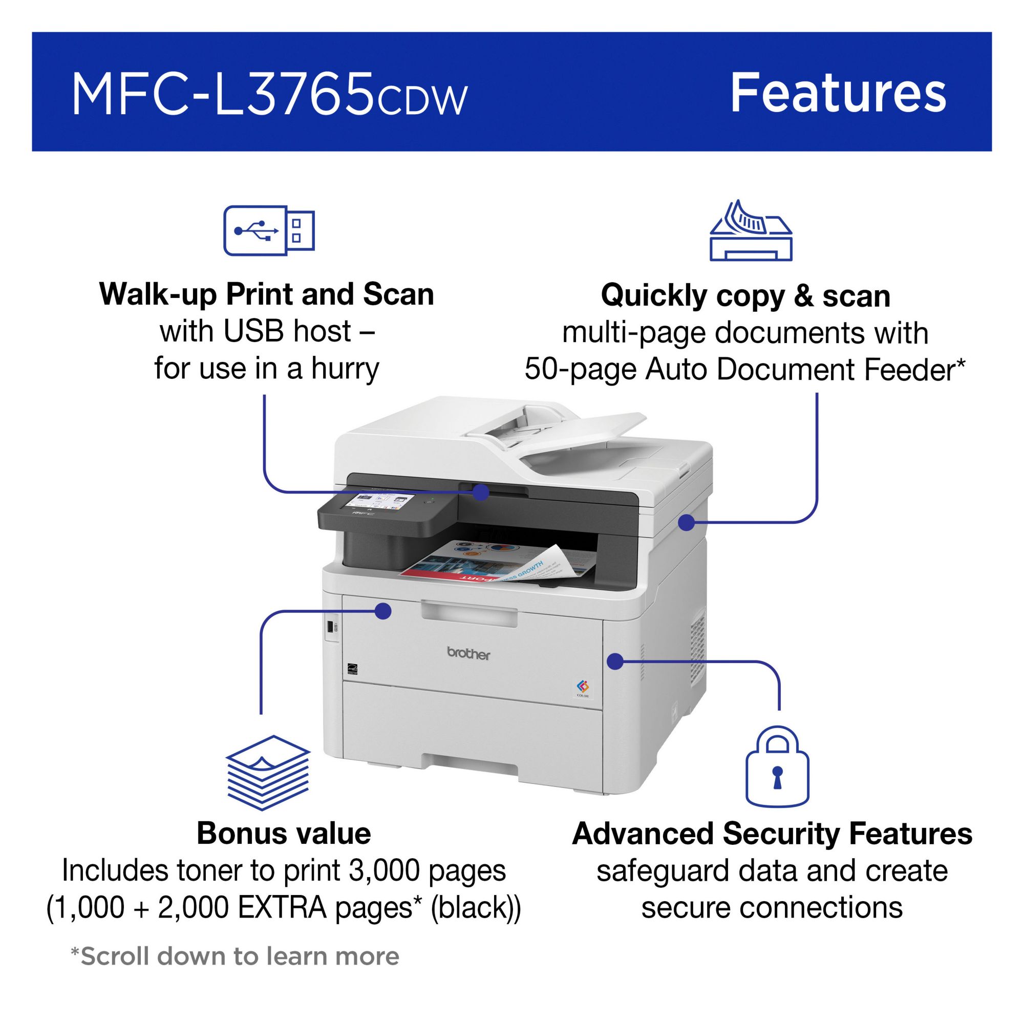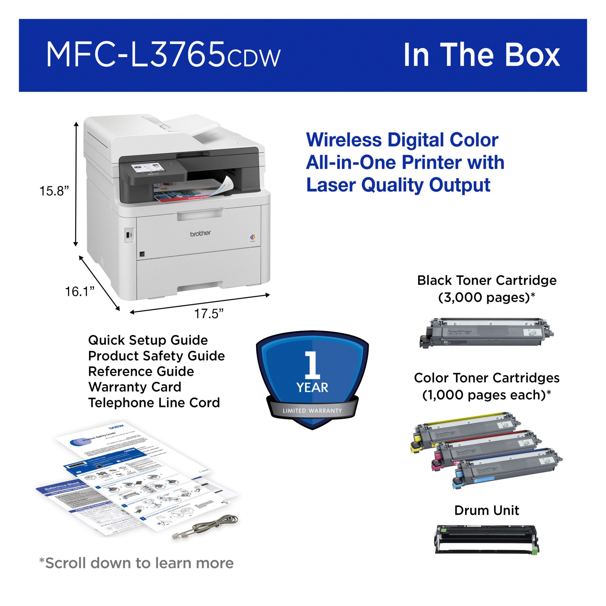 (30 Items)Brother MFC-L3765CDW Digital Color All-in-One Printer