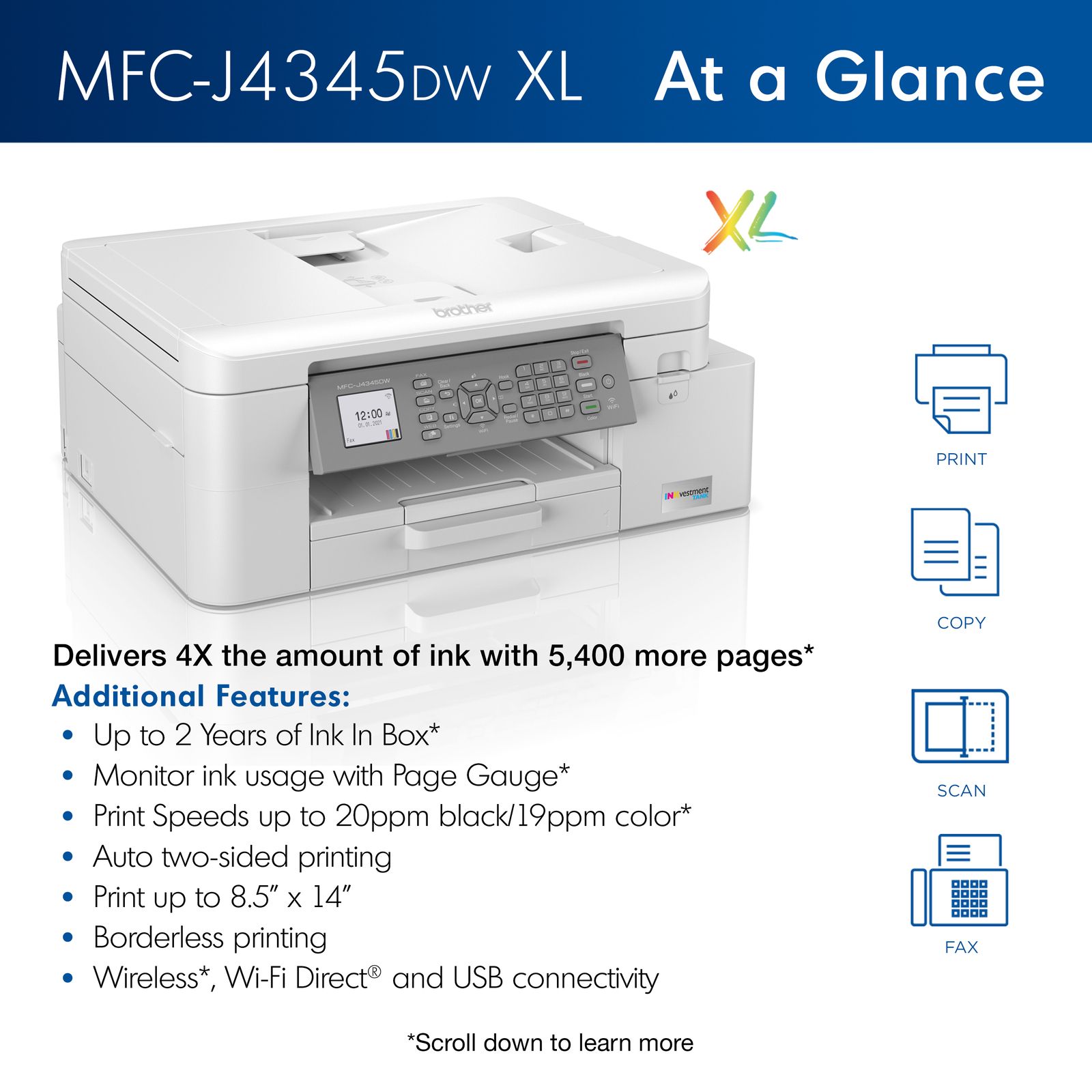 Brother MFCJ4345DWXL INKvestment Tank All-in-One Color Inkjet Printer