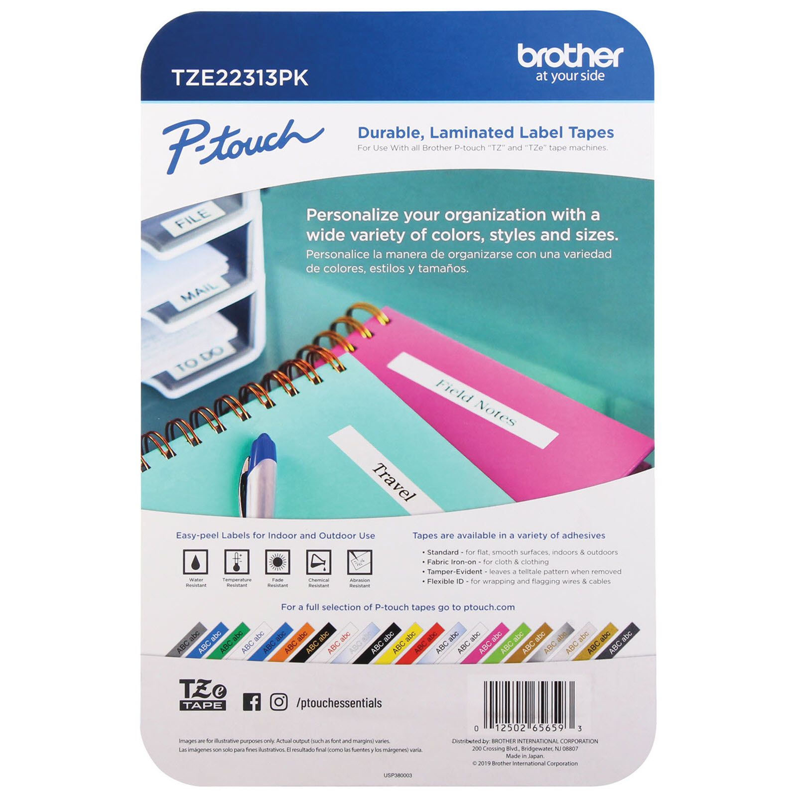 | Includes | 2 Black on White Laminated TZe Tapes, and 1 Black on Clear Laminated TZe Tape |