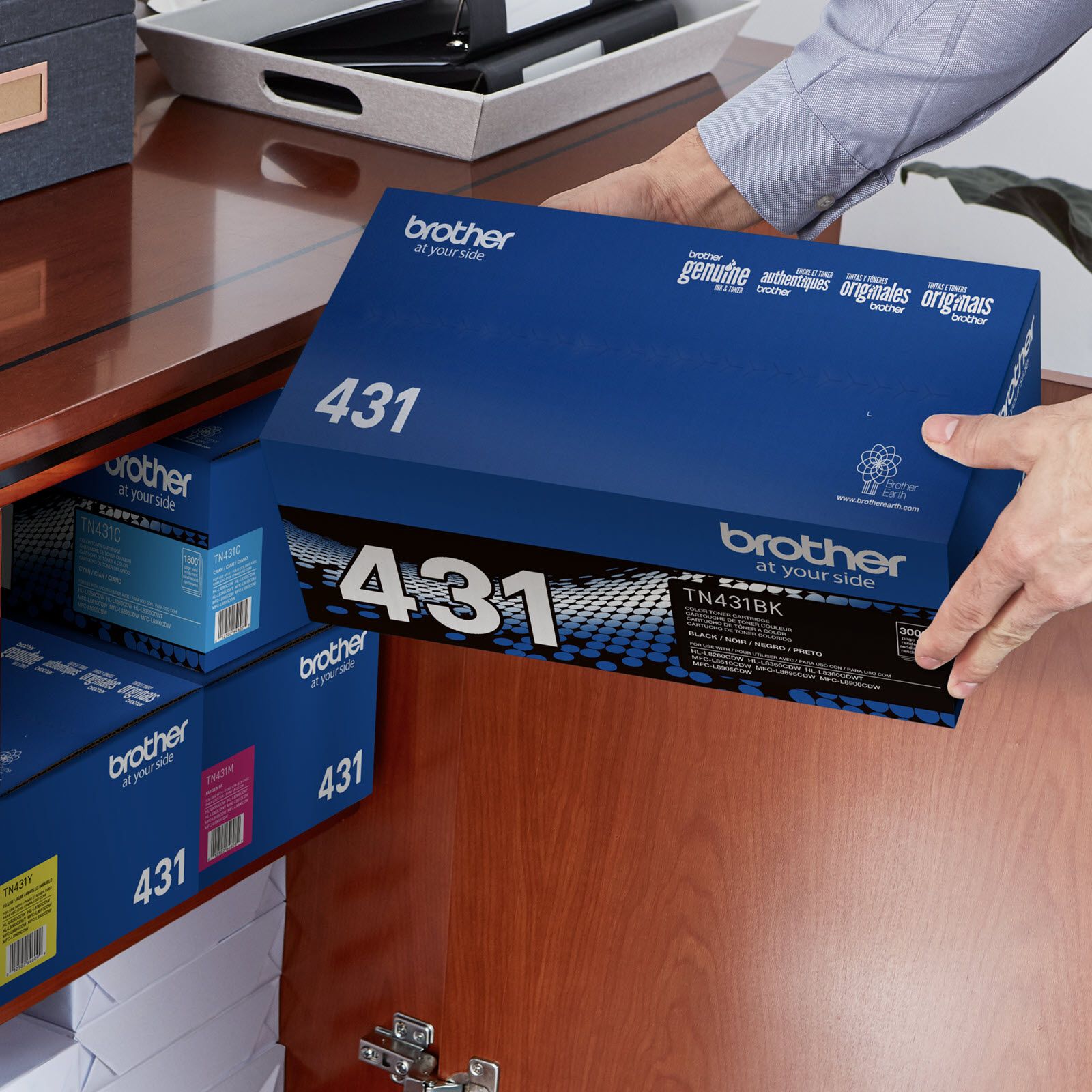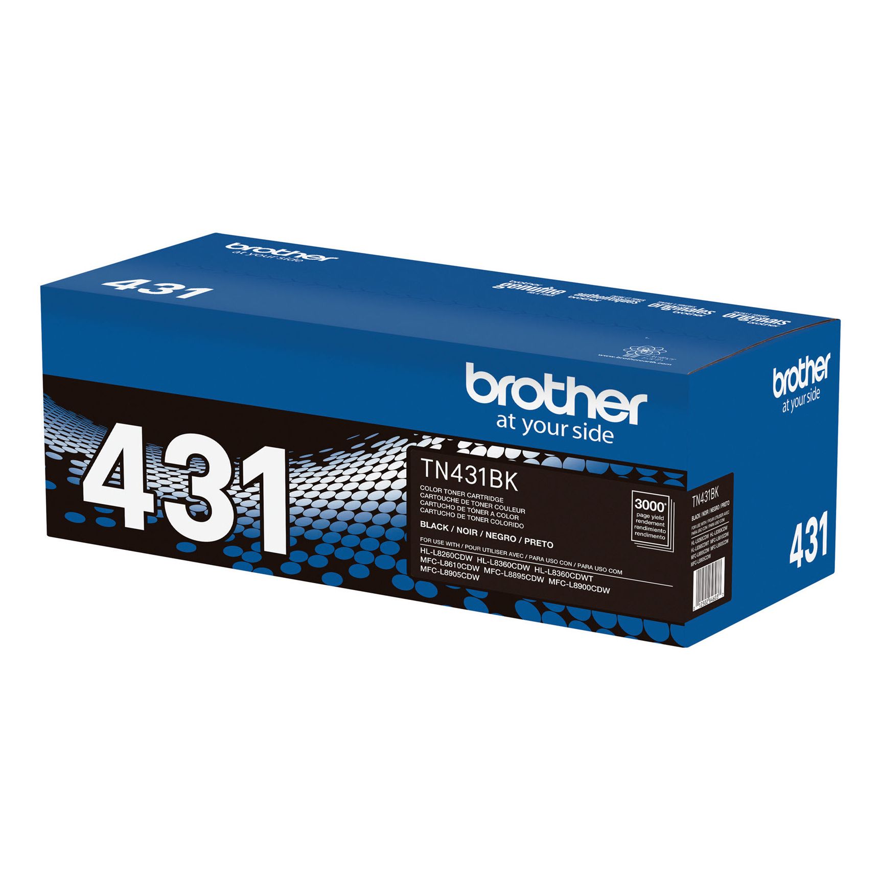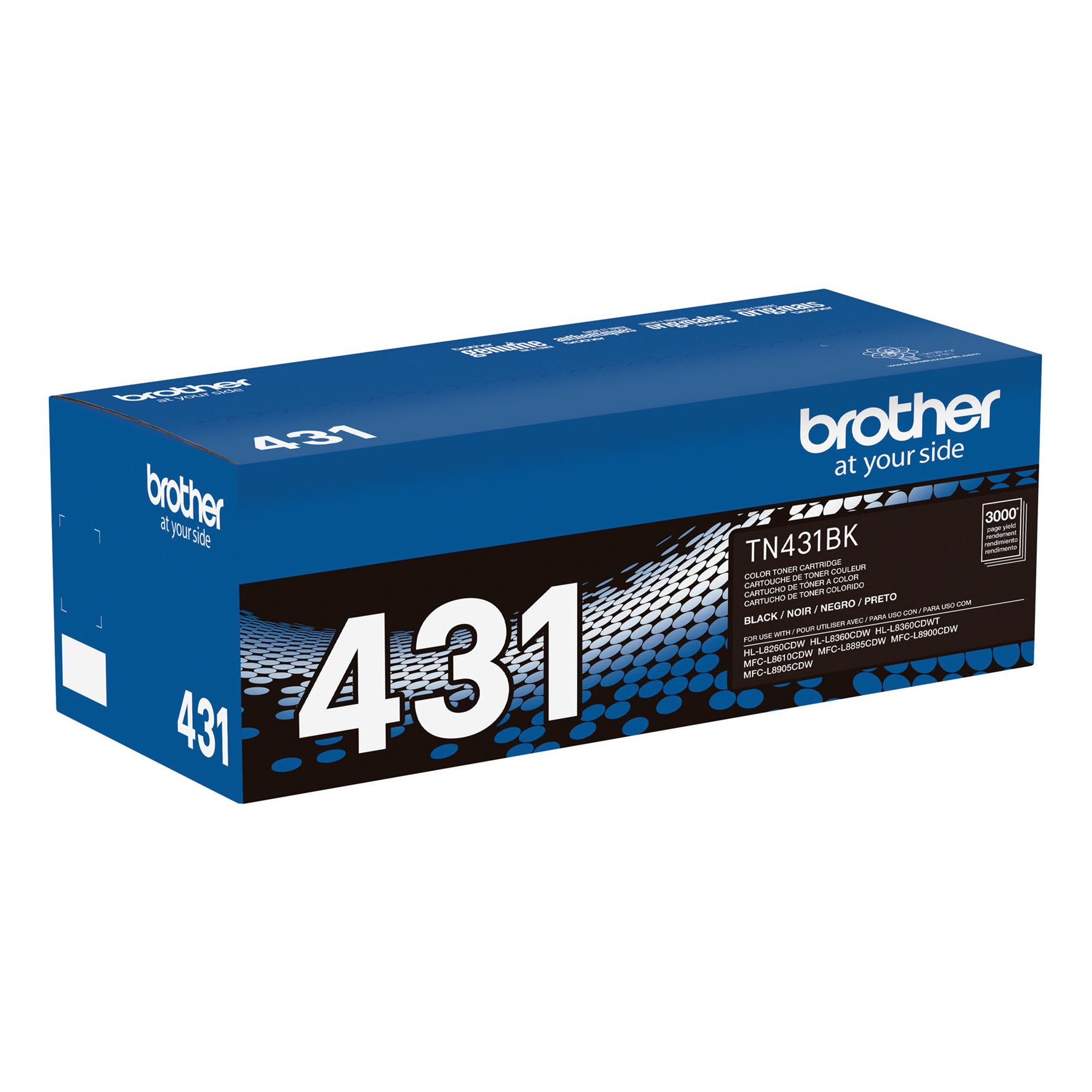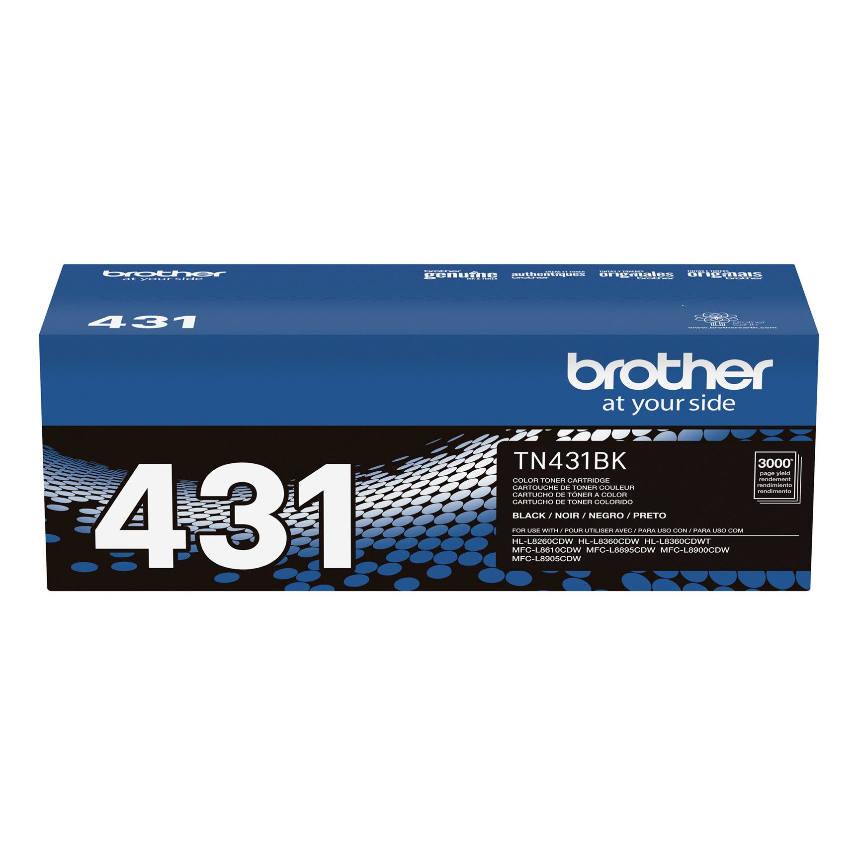 Brother Genuine TN431 Black toner cartridge Delivers crisp, professional color laser output with 3,000 page yield Designed as part of a complete printing system to provide superior quality results Precisely balanced for even flow and consistent toner distribution on the paper Enjoy ongoing improvements and technical changes, which regularly occur throughout the hardware lifecycle Our Environmental Program enables you to send back your used cartridge free! See www.brother-usa.com/environment for more information Brother Genuine TN431BK Toner Cartridge is for use with the Brother HLL8260CDW, HLL8360CDW, HLL8360CDWT, MFCL8610CDW, MFCL8895CDW, MFCL8900CDW