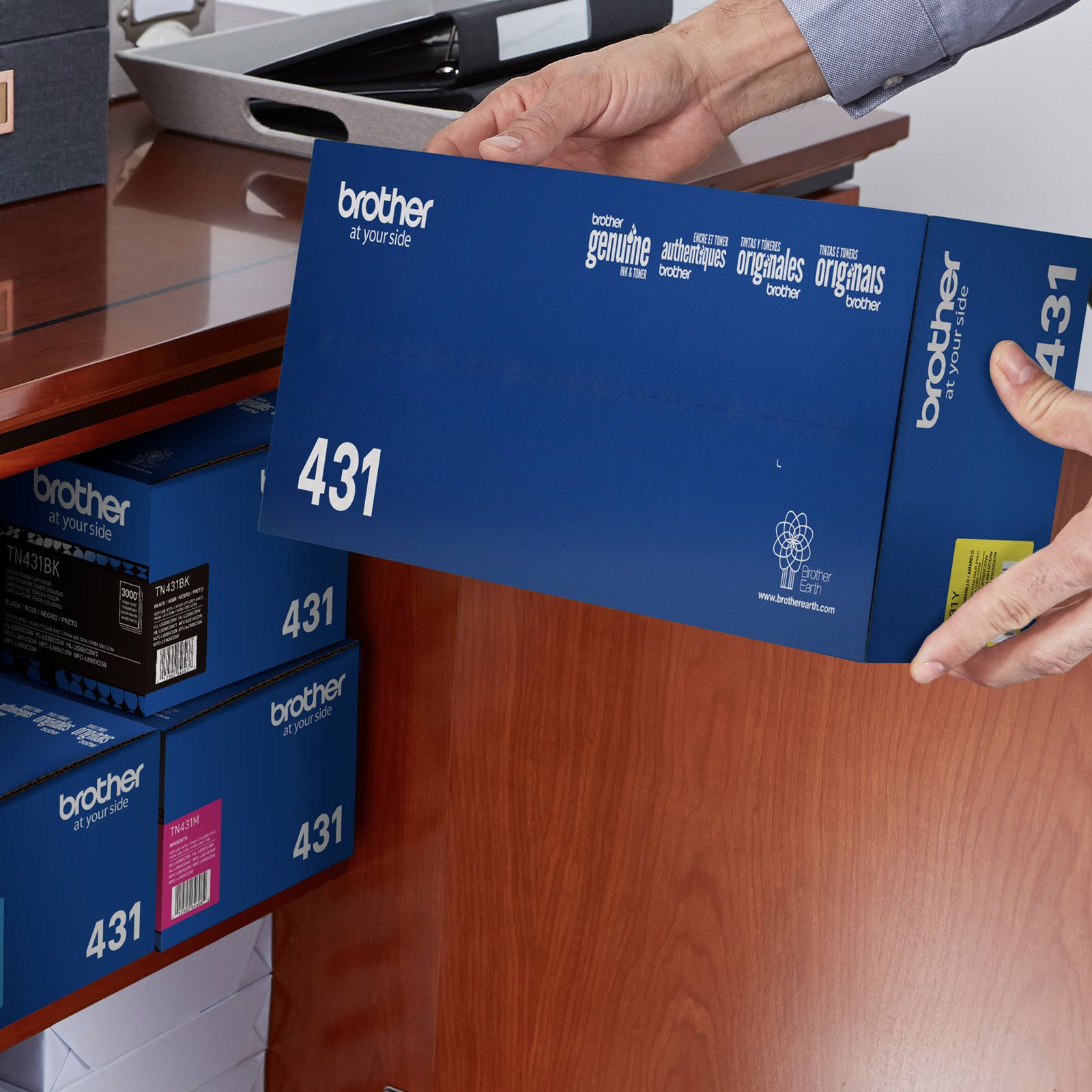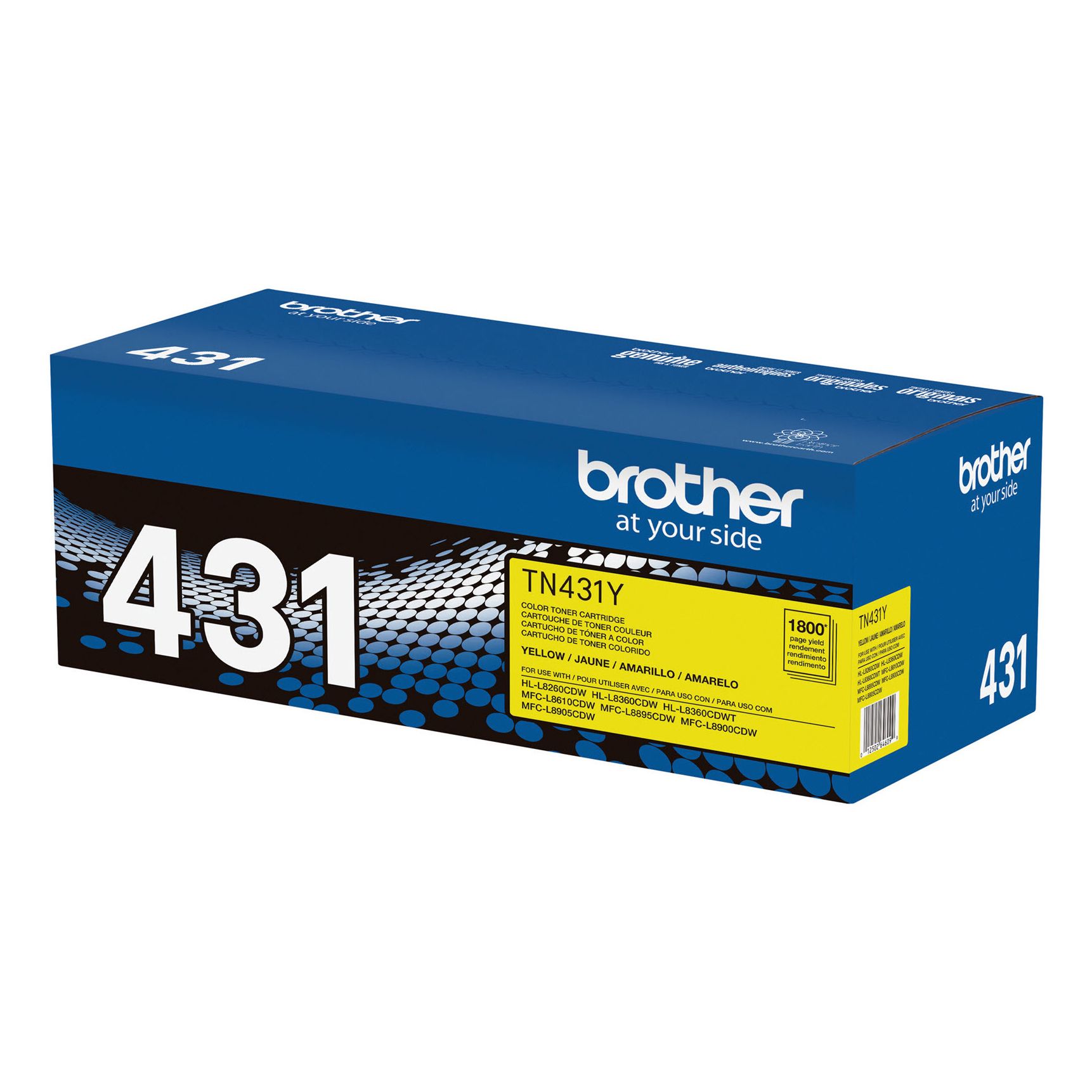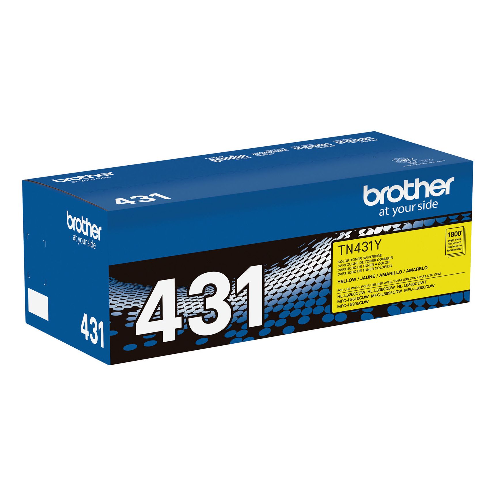 Brother Genuine TN431 Yellow toner cartridge Delivers crisp, professional color laser output with 1,800 page yield Designed as part of a complete printing system to provide superior quality results Precisely balanced for even flow and consistent toner distribution on the paper Enjoy ongoing improvements and technical changes, which regularly occur throughout the hardware lifecycle Our Environmental Program enables you to send back your used cartridge free! See www.brother-usa.com/environment for more information Brother Genuine TN431Y Toner Cartridge is for use with the Brother HLL8260CDW, HLL8360CDW, HLL8360CDWT, MFCL8610CDW, MFCL8895CDW, MFCL8900CDW Includes Brother Genuine TN431 Yellow toner cartridge