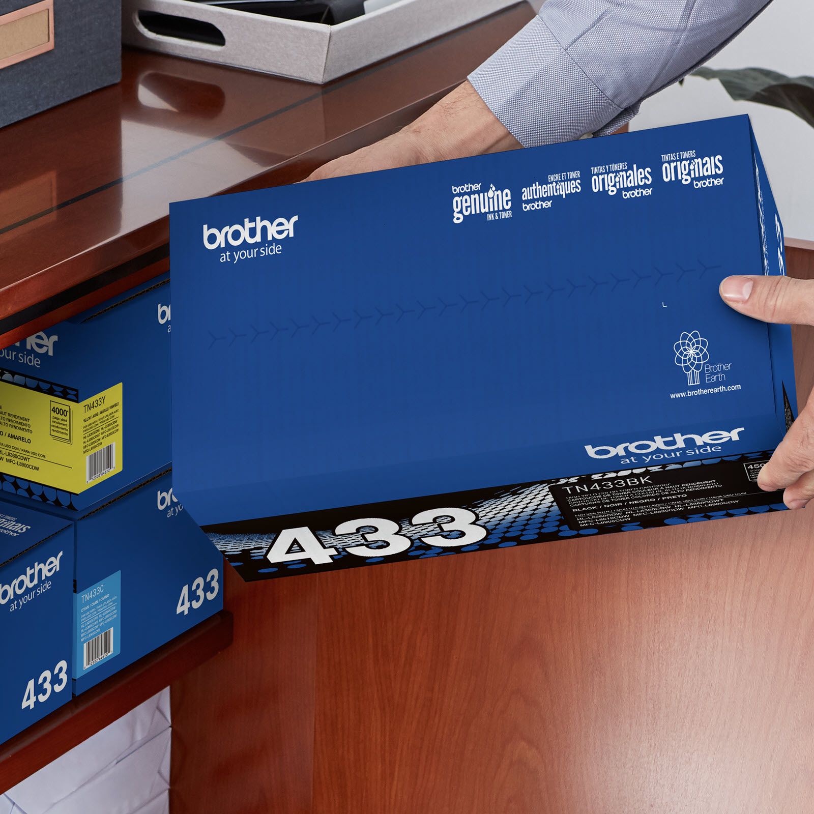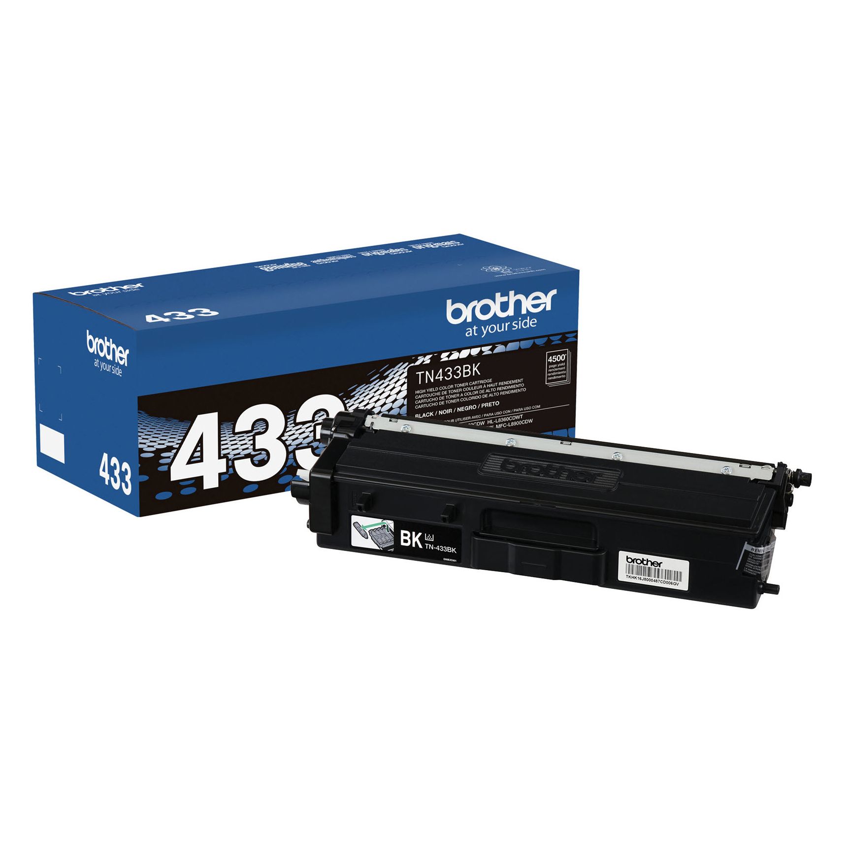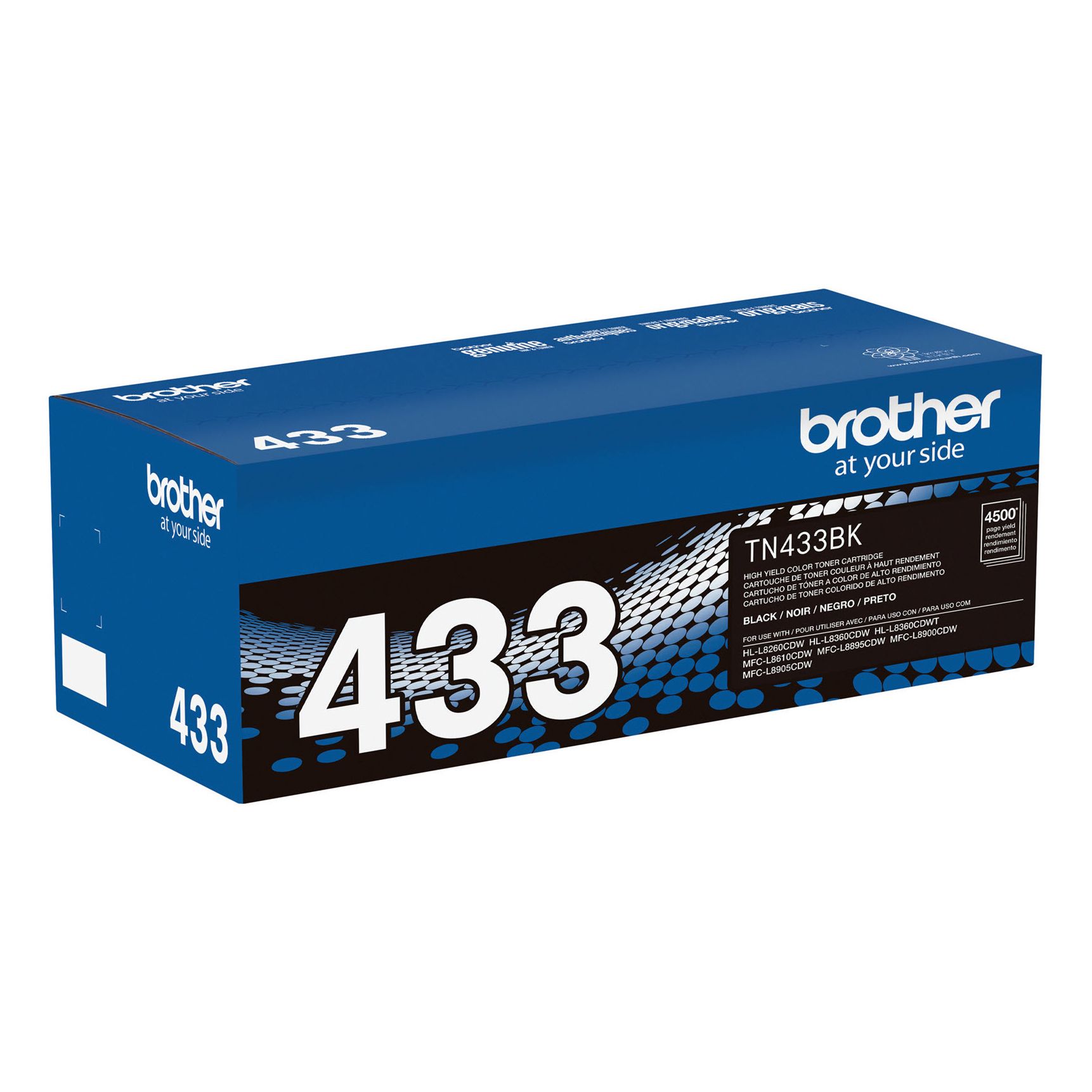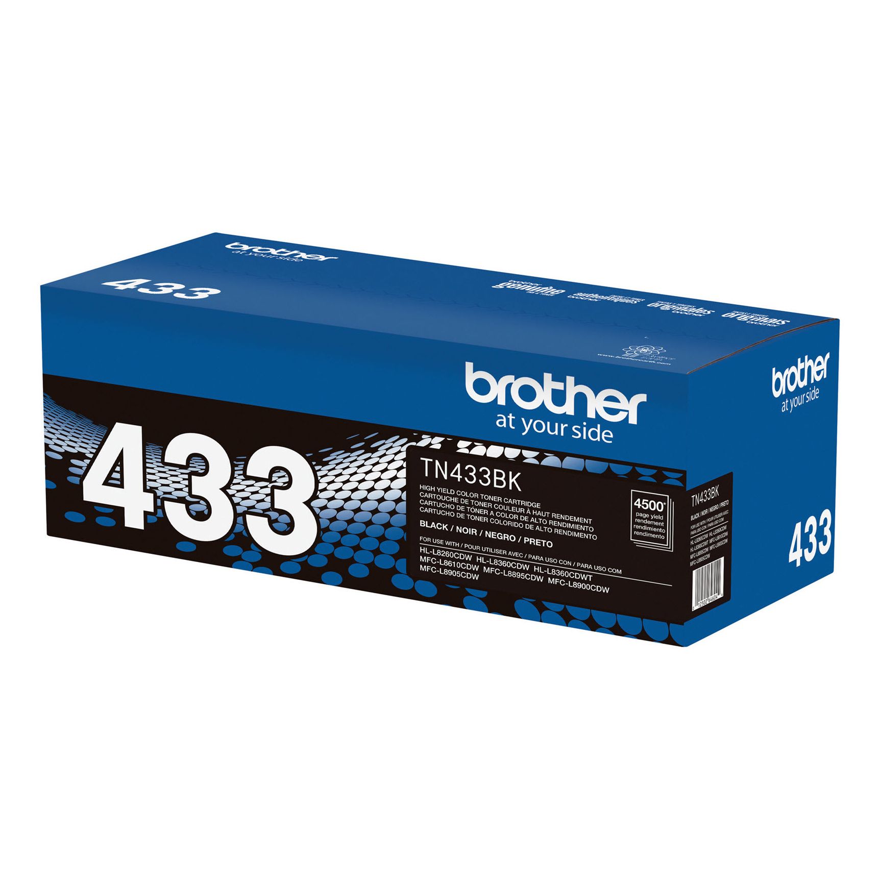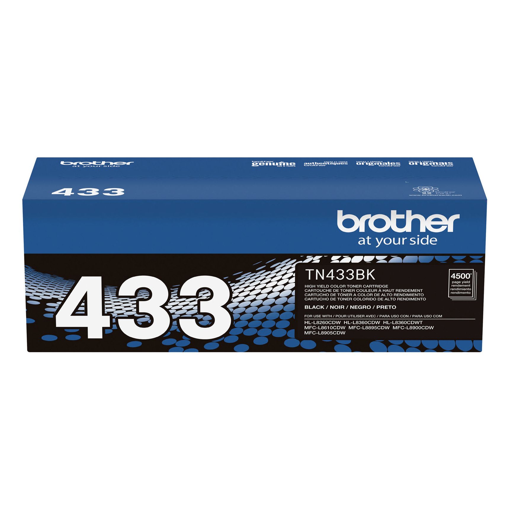 Brother Genuine TN433 High Yield Black toner cartridge Delivers crisp, professional color laser output with 4,500 page yield Designed as part of a complete printing system to provide superior quality results Precisely balanced for even flow and consistent toner distribution on the paper Enjoy ongoing improvements and technical changes, which regularly occur throughout the hardware lifecycle Our Environmental Program enables you to send back your used cartridge free! See www.brother-usa.com/environment for more information Brother Genuine TN433BK Toner Cartridge is for use with the Brother HLL8260CDW, HLL8360CDW, HLL8360CDWT, MFCL8610CDW, MFCL8895CDW, MFCL8900CDW Includes Brother Genuine TN433 High Yield Black toner cartridge