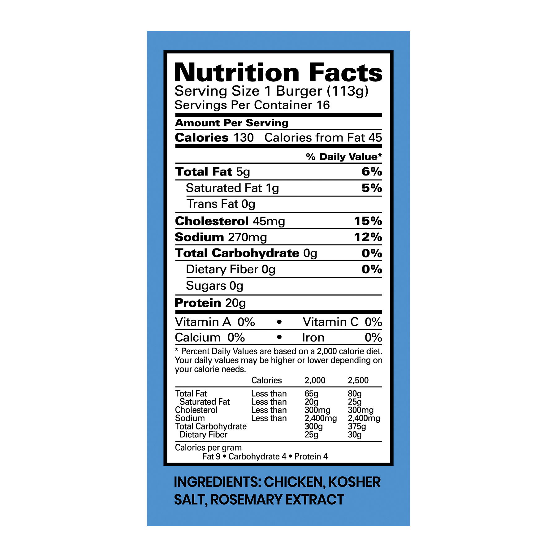 Ingredients: Chicken, Kosher Salt, Rosemary Extract.
