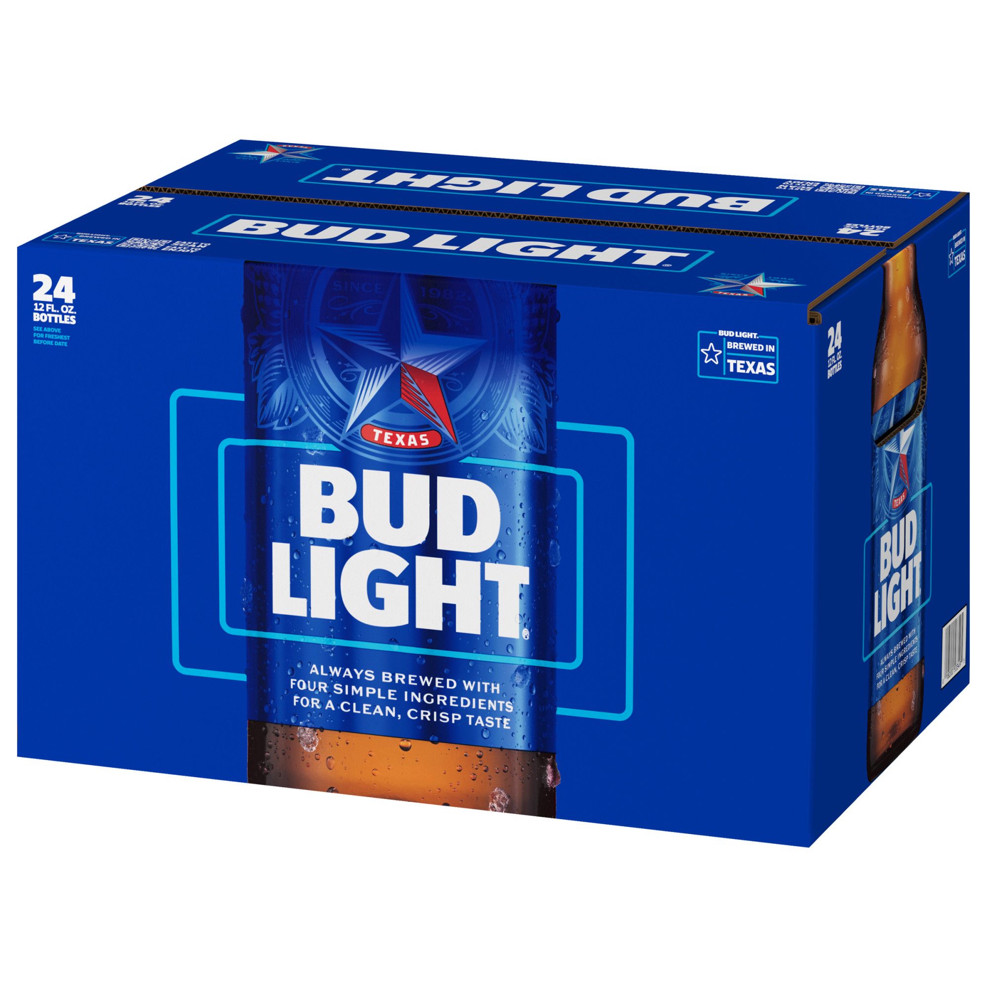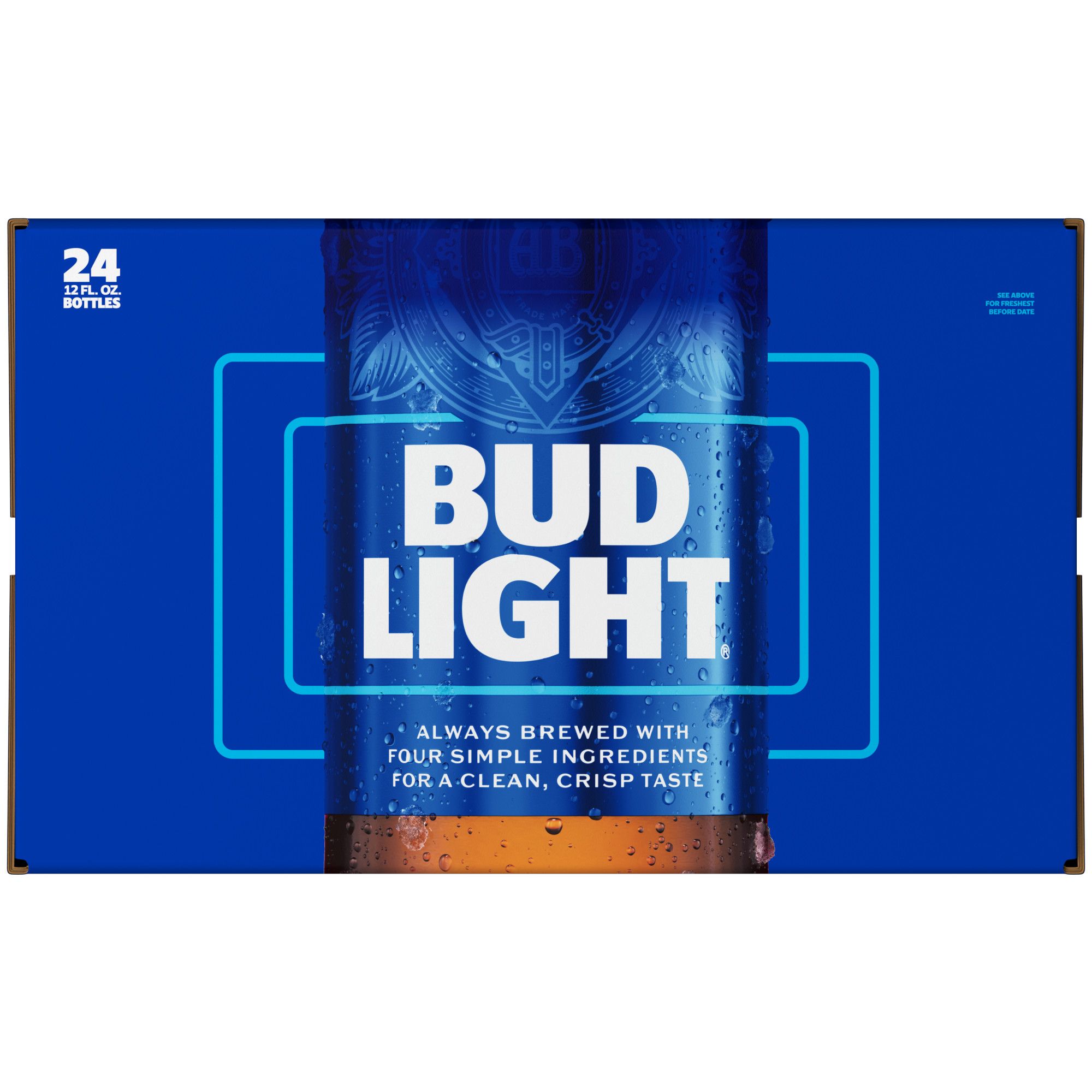 Bud Light is a premium beer with incredible drinkability that has made it a top selling American beer that everybody knows and loves. This light beer is brewed using a combination of barley malts, rice and a blend of premium aroma hop varieties. Featuring a fresh, clean taste with subtle hop aromas, this light lager delivers ultimate refreshment with its delicate malt sweetness and crisp finish. Bud Light is made with no preservatives or artificial flavors. Grab this pack of beer bottles when you're in charge of providing party drinks, are in need of cold beer for a tailgate or simply want to keep a case of beer in your fridge so you're ready when Bud Light calls your name.