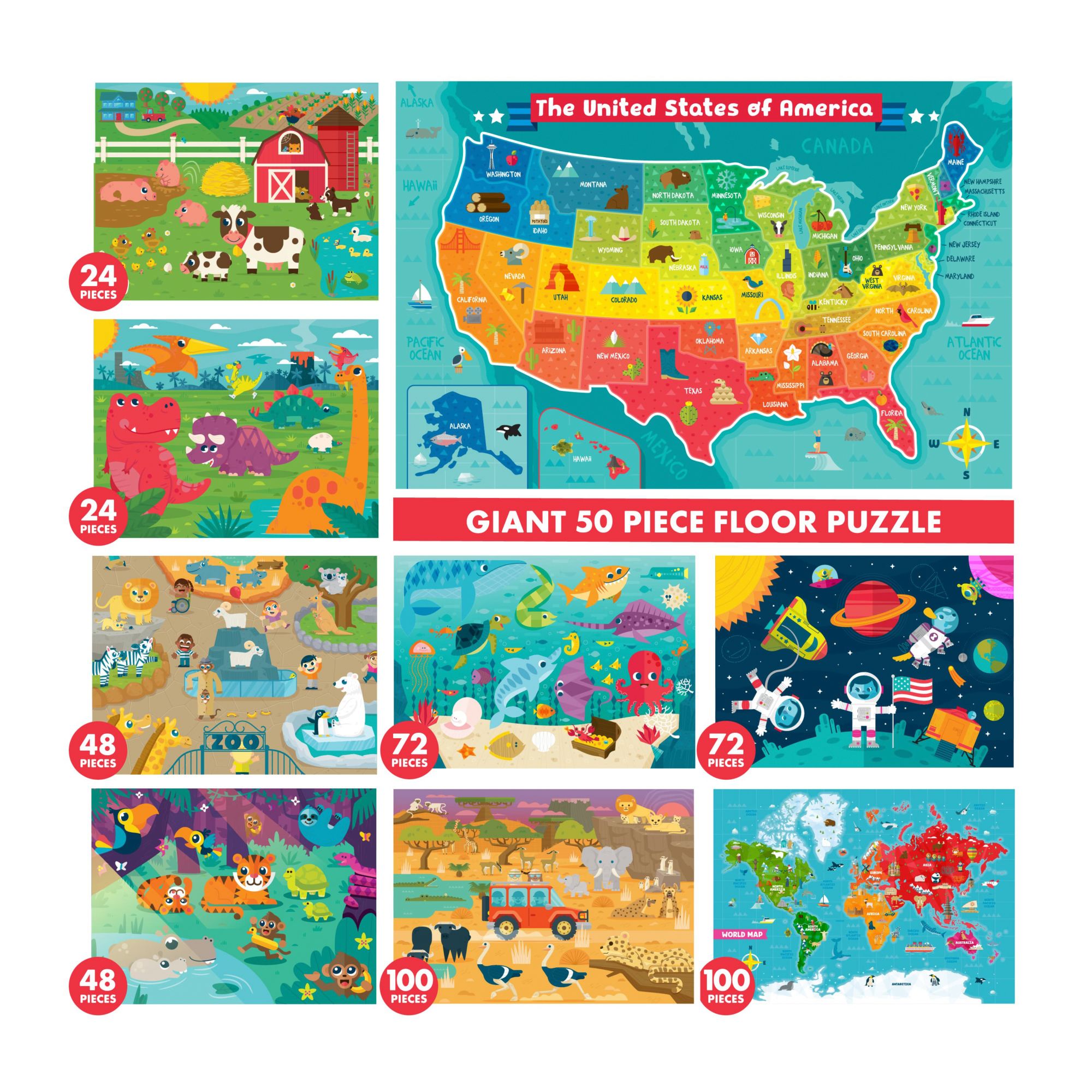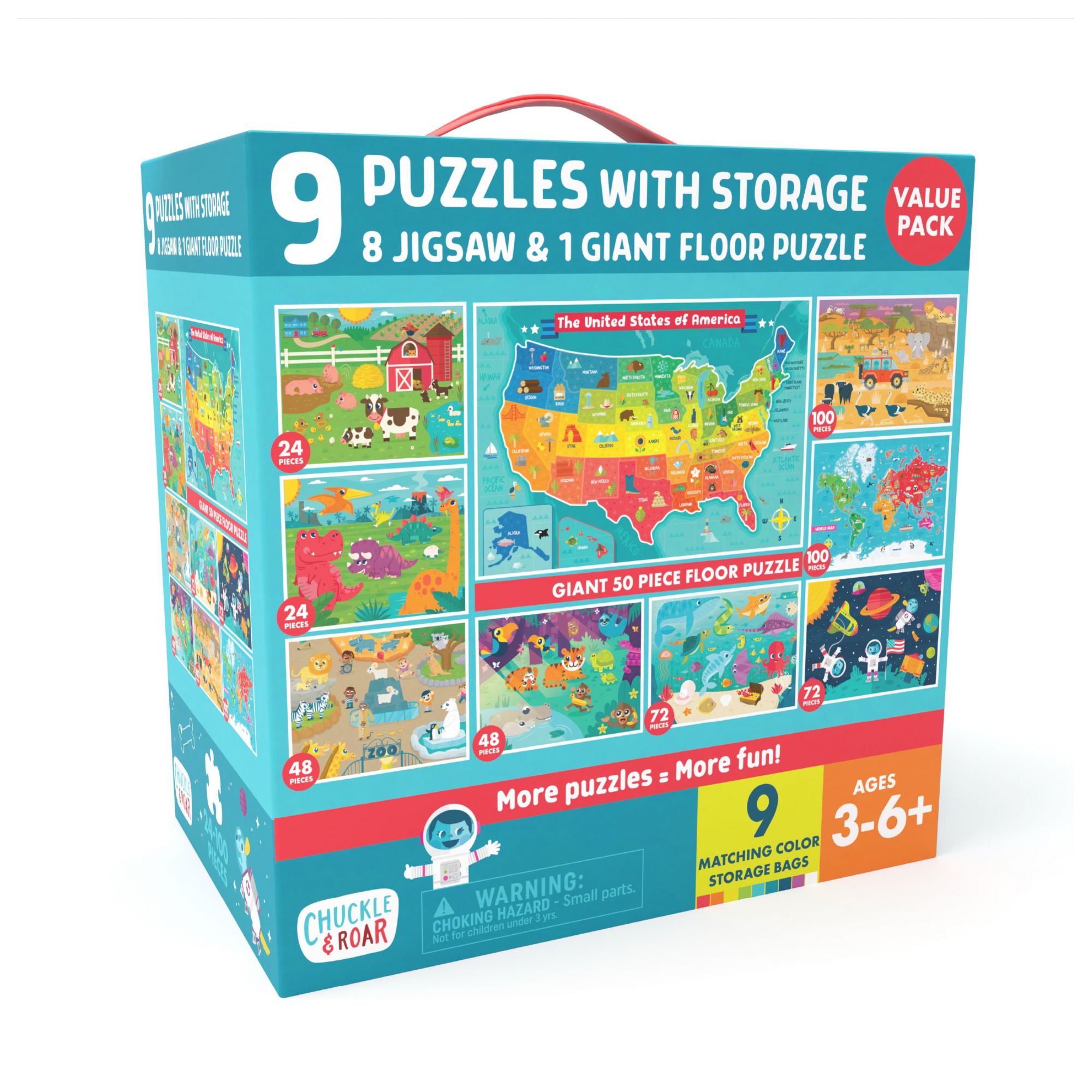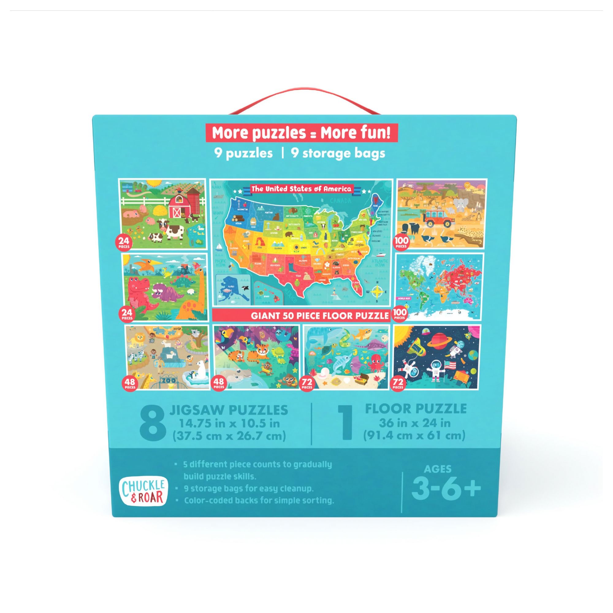 Buffalo Games Chuckle & Roar 9 pk. Puzzles - Farm, Space, Ocean, Safari, World Map Puzzles