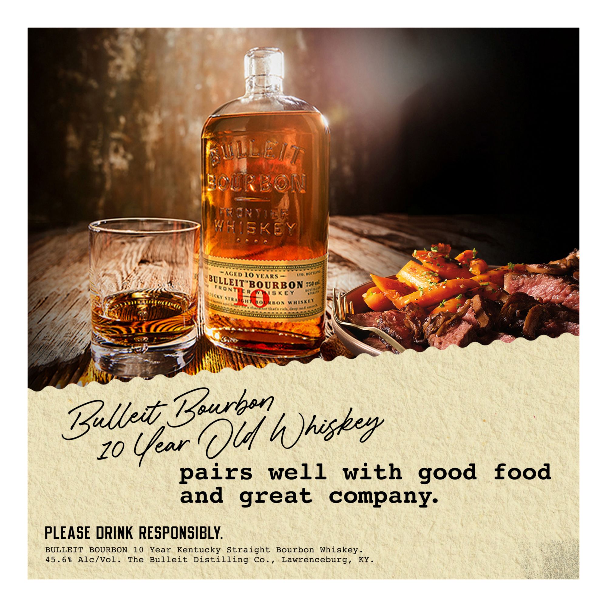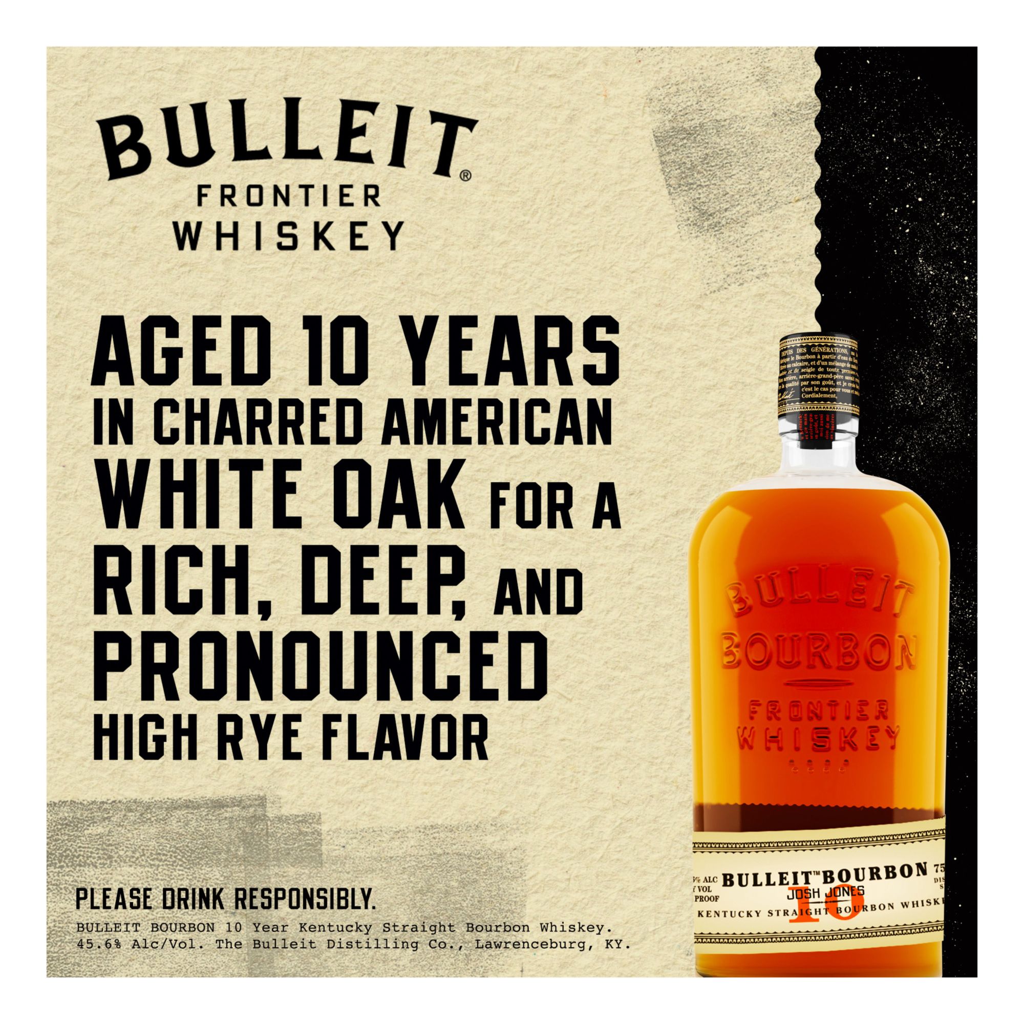 Includes one 750 mL bottle of Bulleit 10 Year Old Bourbon Whiskey