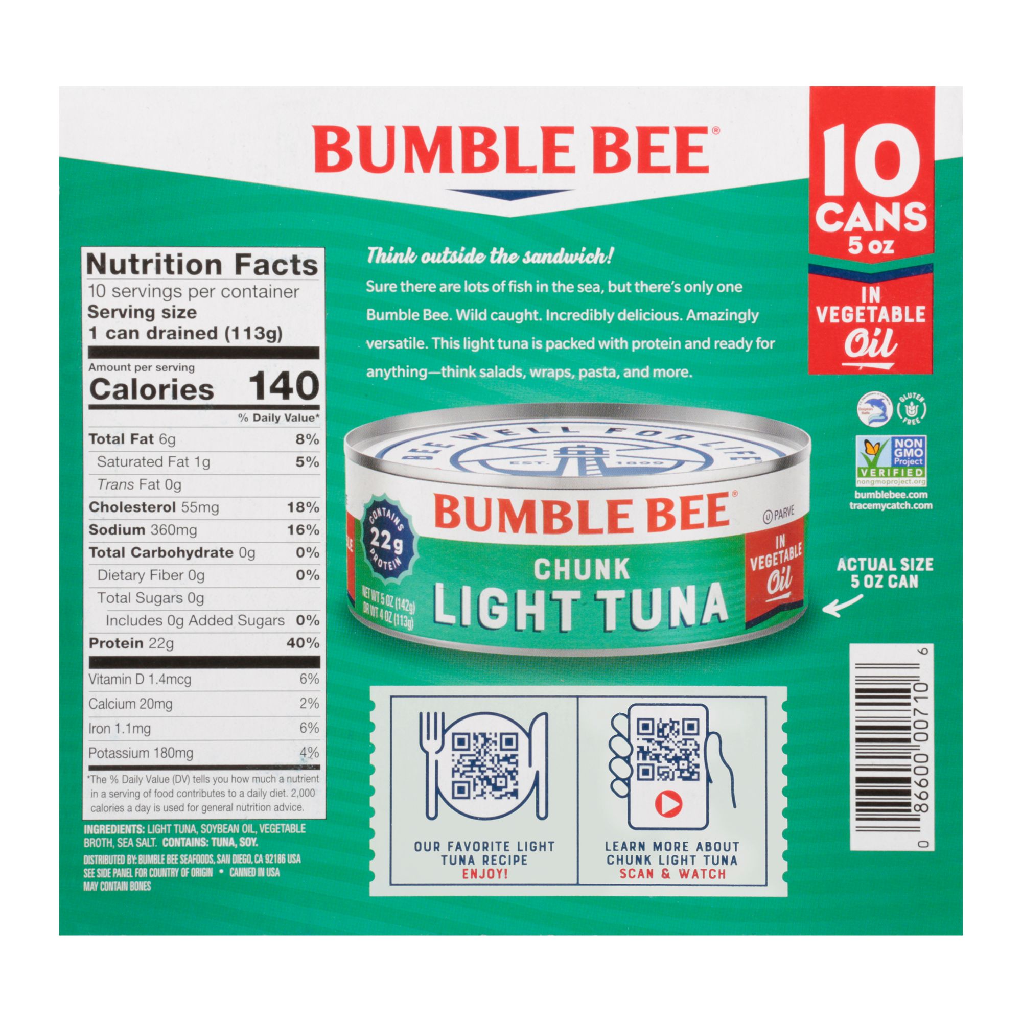 (1) Bumble Bee Light, 10 pk./2.5 oz., OR Chunk Light Tuna in Oil OR Water, 10 pk./5 oz.