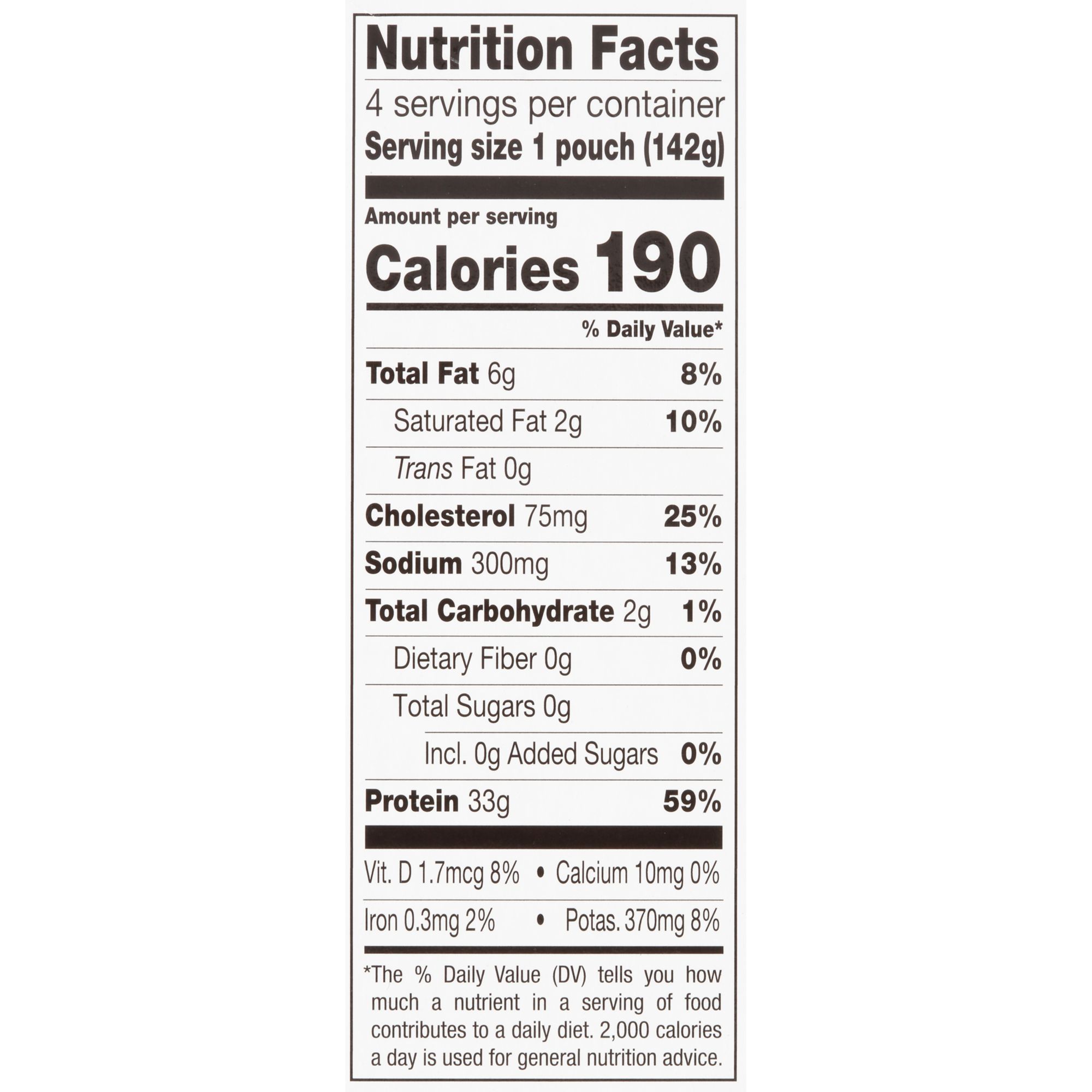 High-quality protein Vitamin and minerals Rich in omega-3 fatty acids Gluten free and kosher Dolphin-safe policy Packed in water Includes four 5-oz. pouches