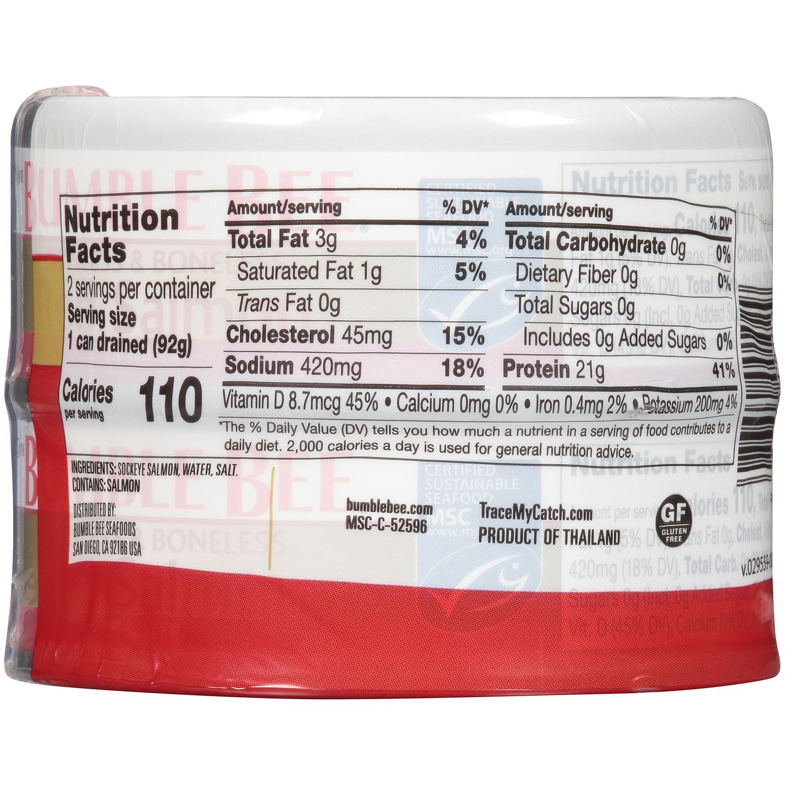 Bumble Bee Red Salmon is caught wild in the waters of Alaska. This salmon is packed with protein making it the perfect power lunch. These two 5 oz. can will be great for making sandwiches, salads and pasta for the whole family.