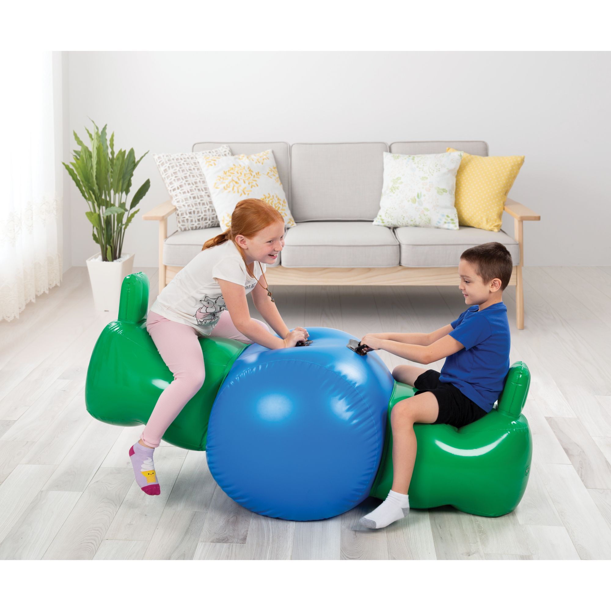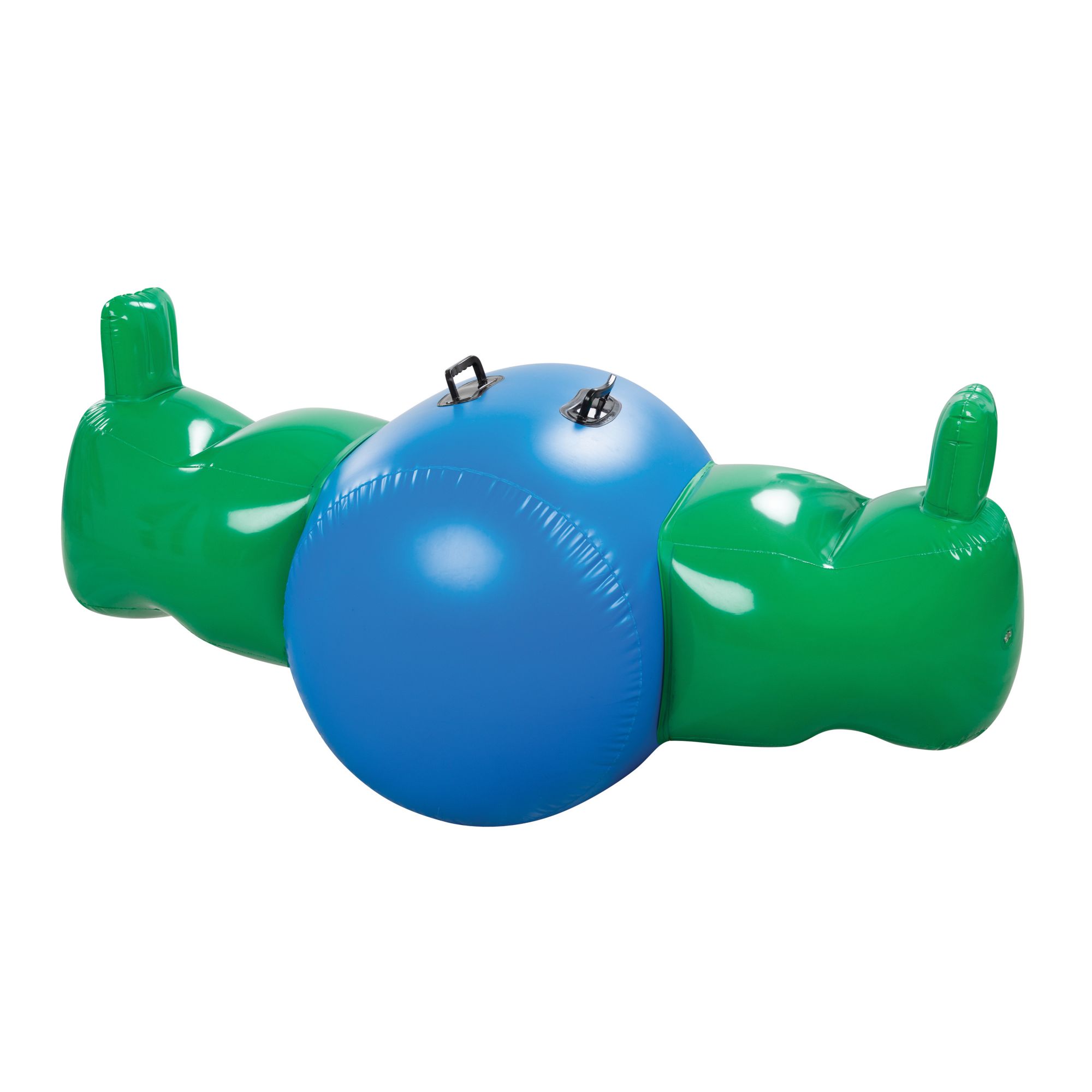 Each inflatable seesaw rocker is 6' long and can support the weight of two kids aged at least three years old. It’s hard to miss our inflatable with its vibrant green and blue color. The barrel at the center is fitted with two handles for each rider. Place this whimsical inflatable seesaw in any room or space with flat floors or terrain. The rockers are made with durable and thick PVC material, giving them superb toughness against tears and punctures. They’re built to withstand even the most active of playtimes out in your living room or your yard.