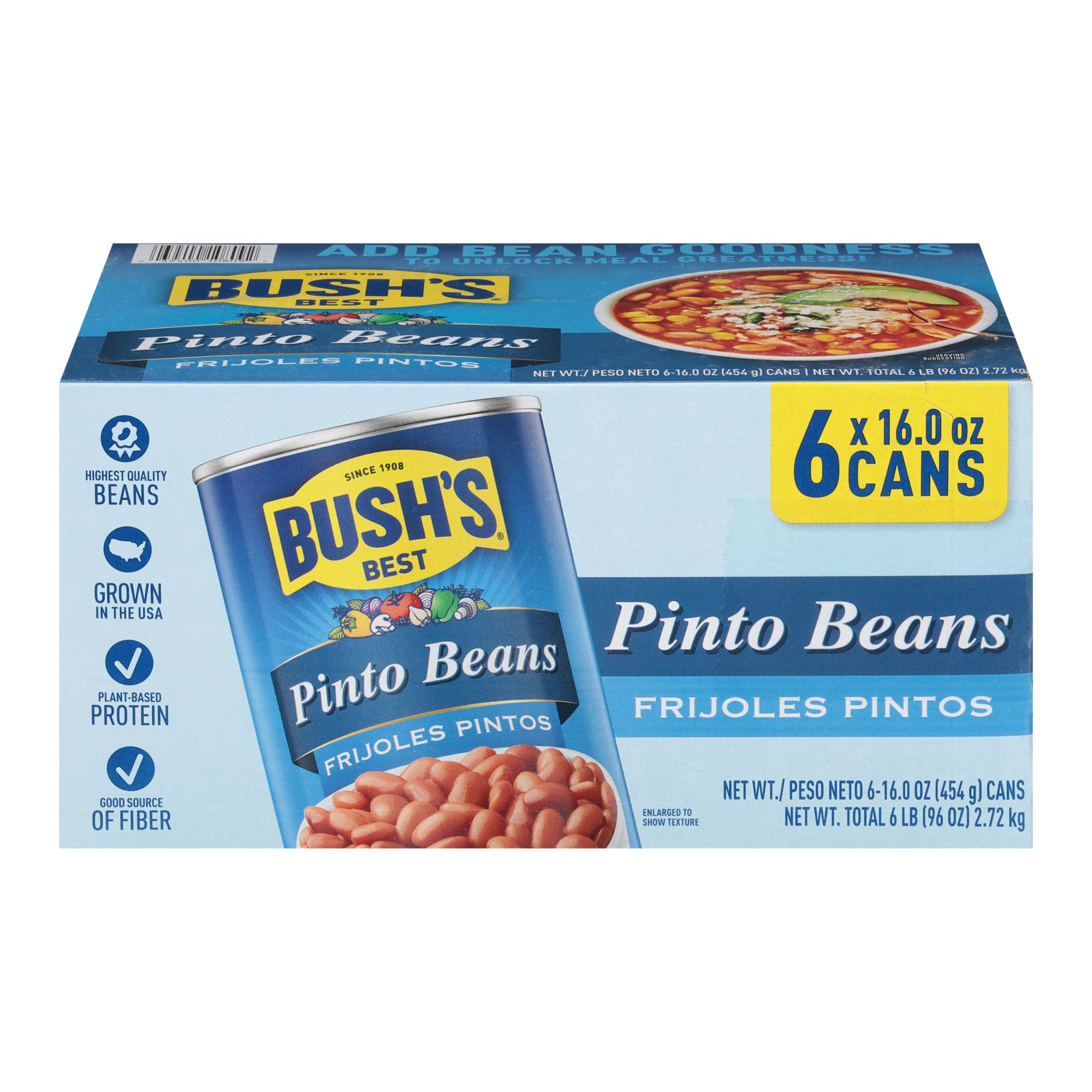 Bush's Best Pinto Beans, Cans, 6 pk./16 oz.