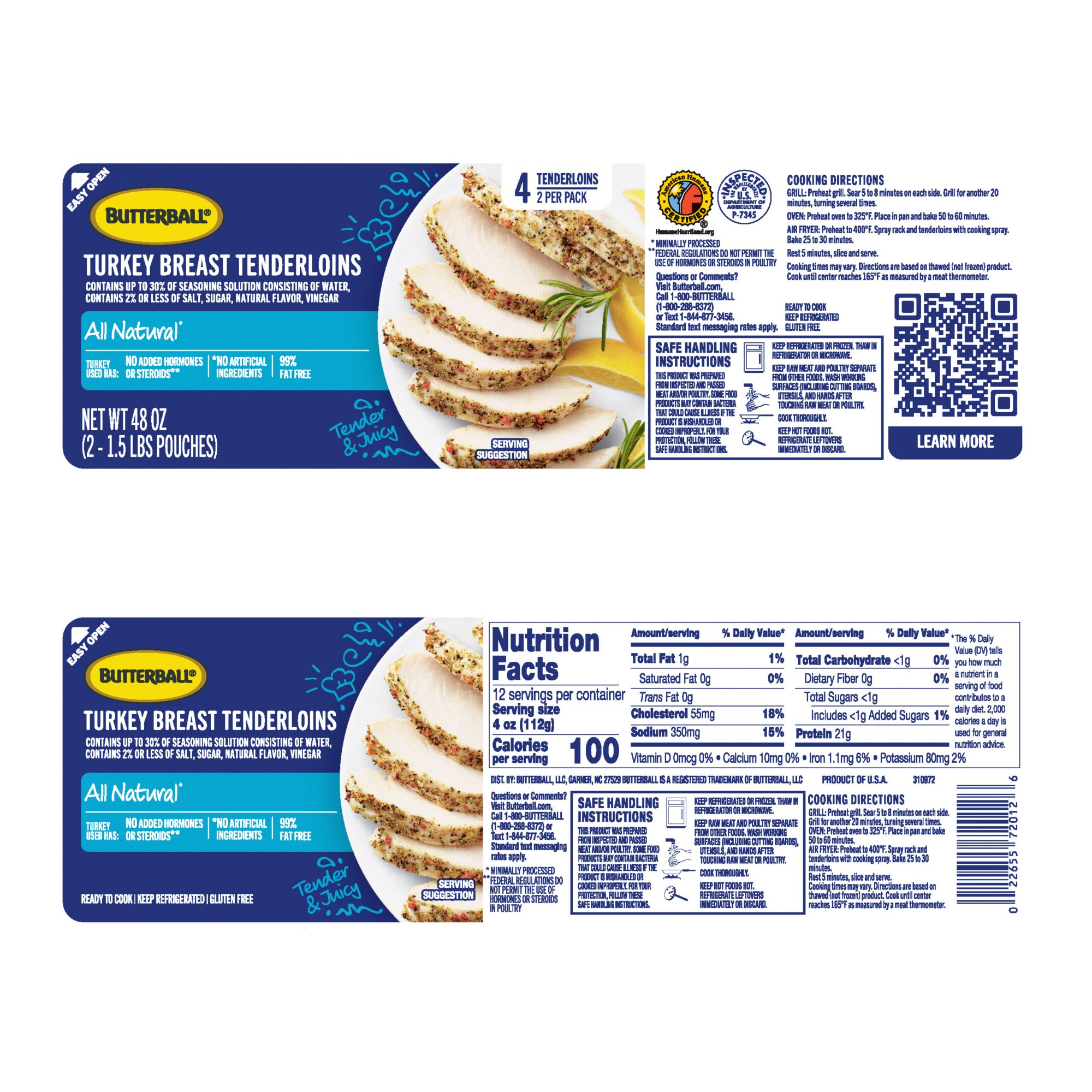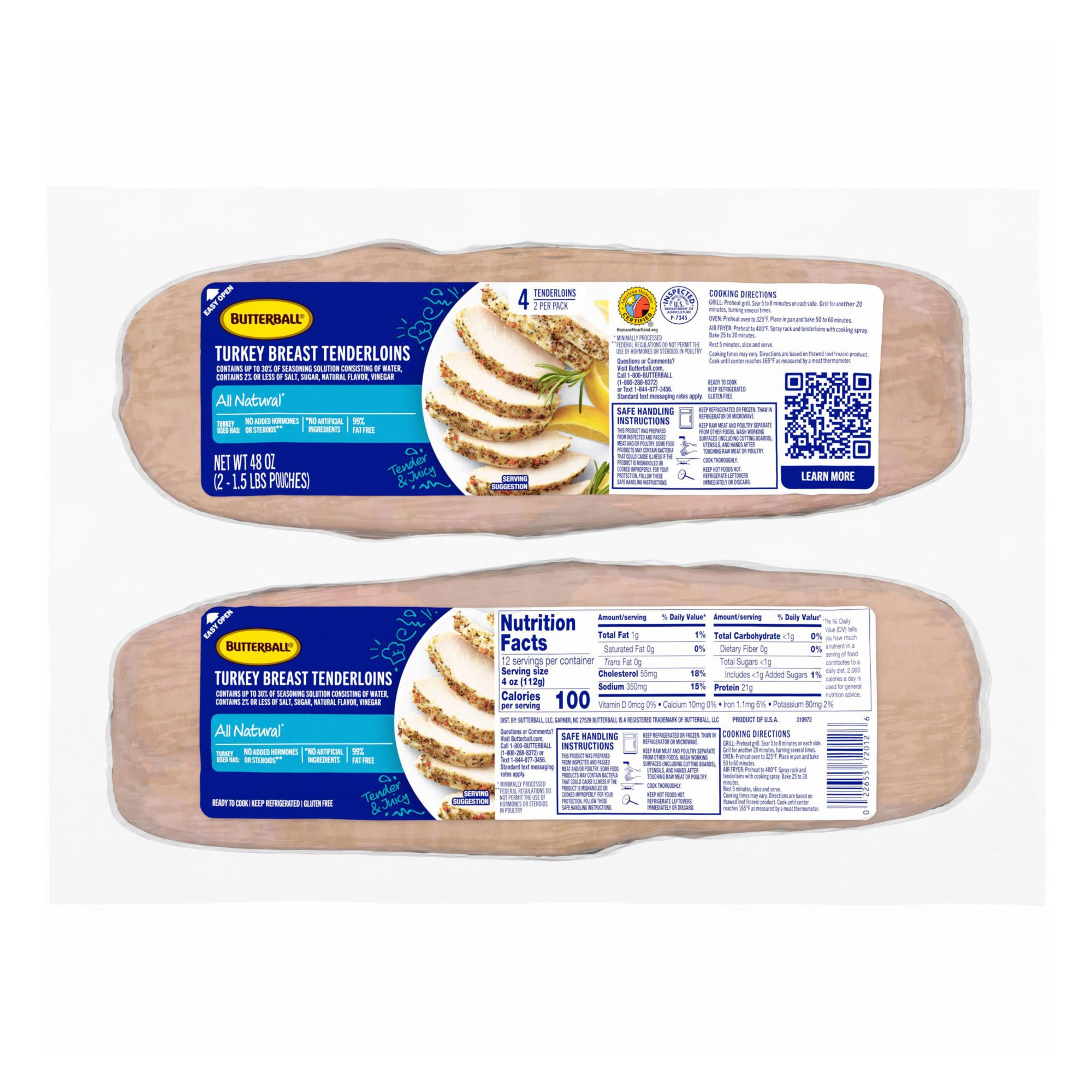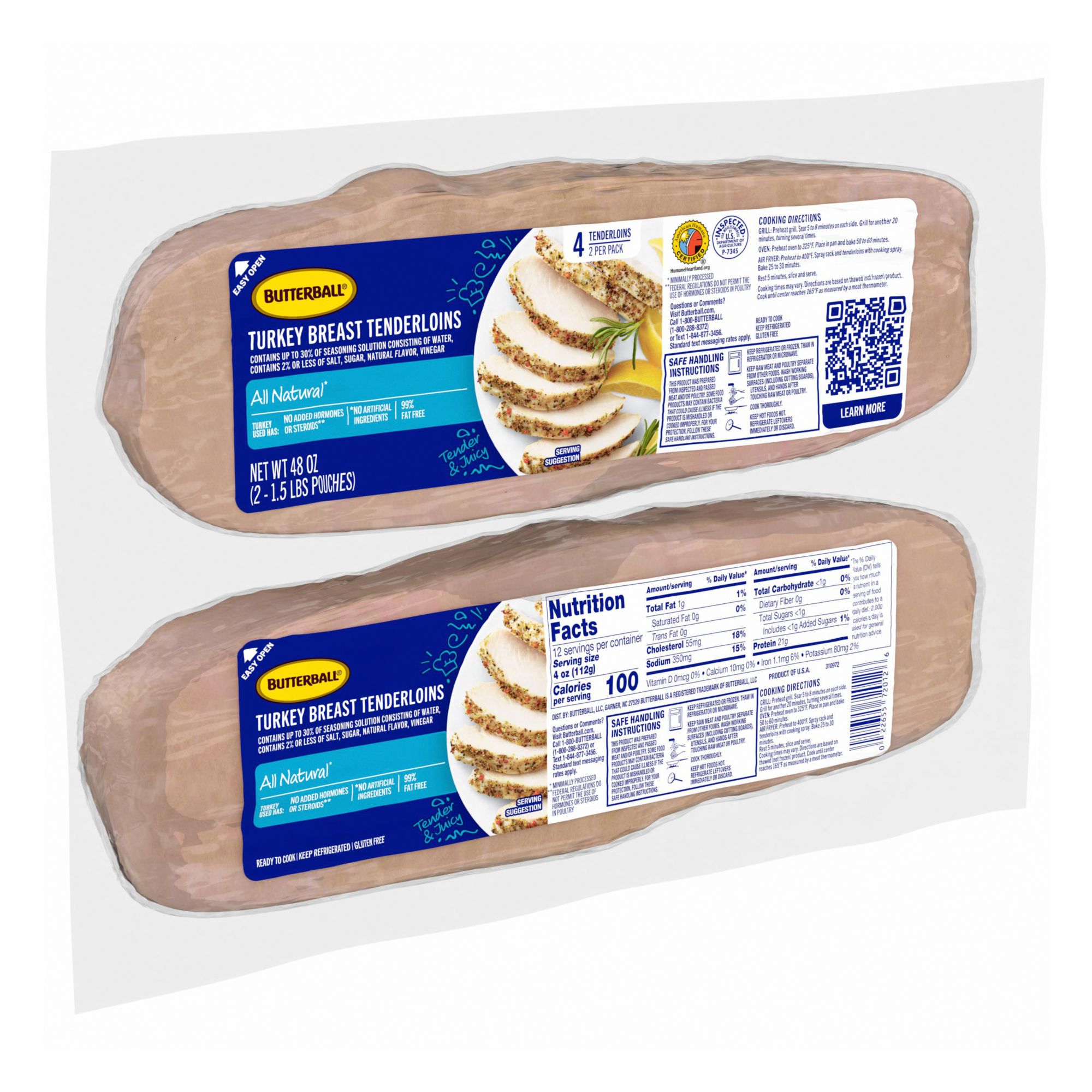 Includes 3.0 lbs. (2 tenderloins) of Butterball Ready-to-Cook Turkey Breast Tenderloins