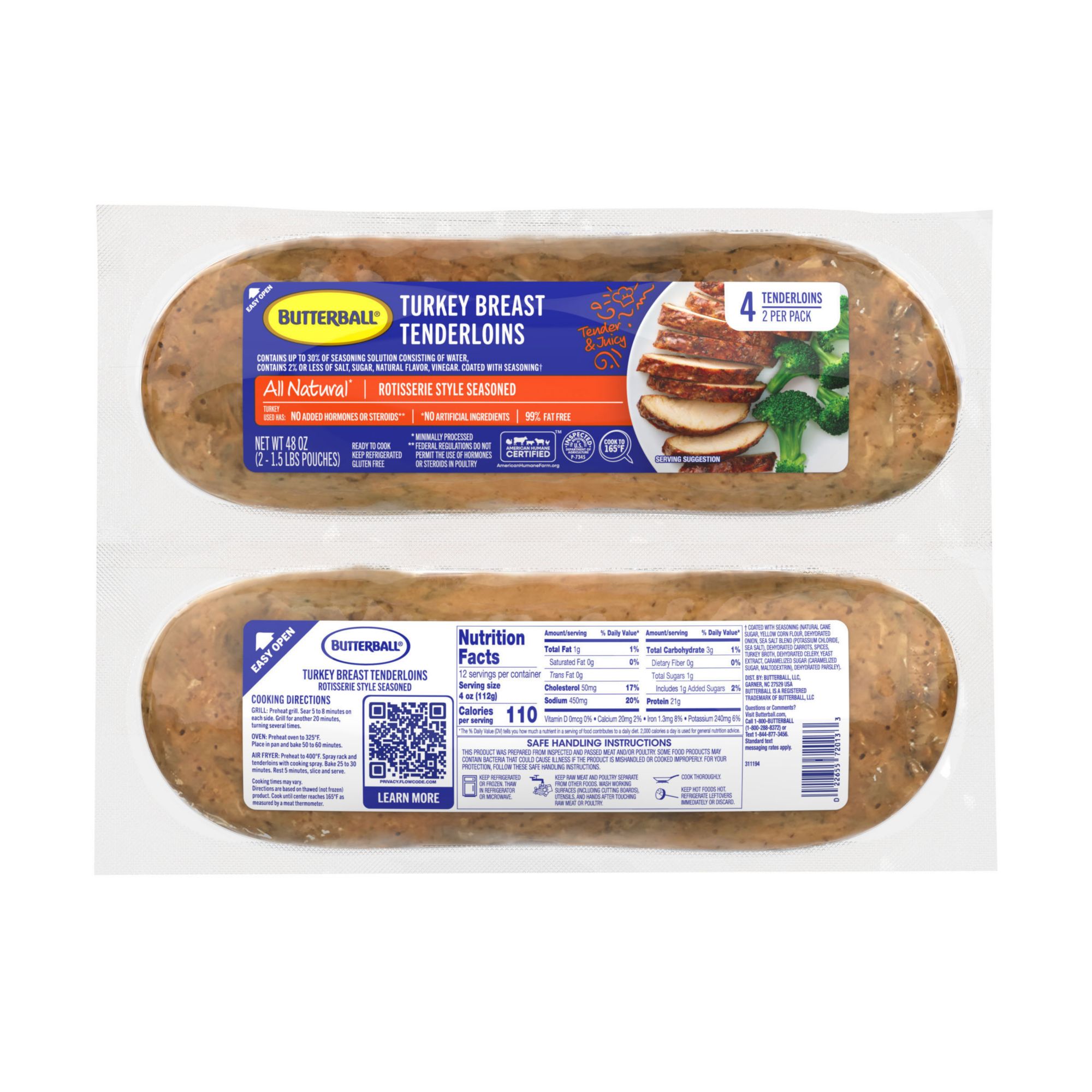 Includes one 48 oz. package of 4 Butterball All Natural Extra Lean Turkey Breast Tenderloins