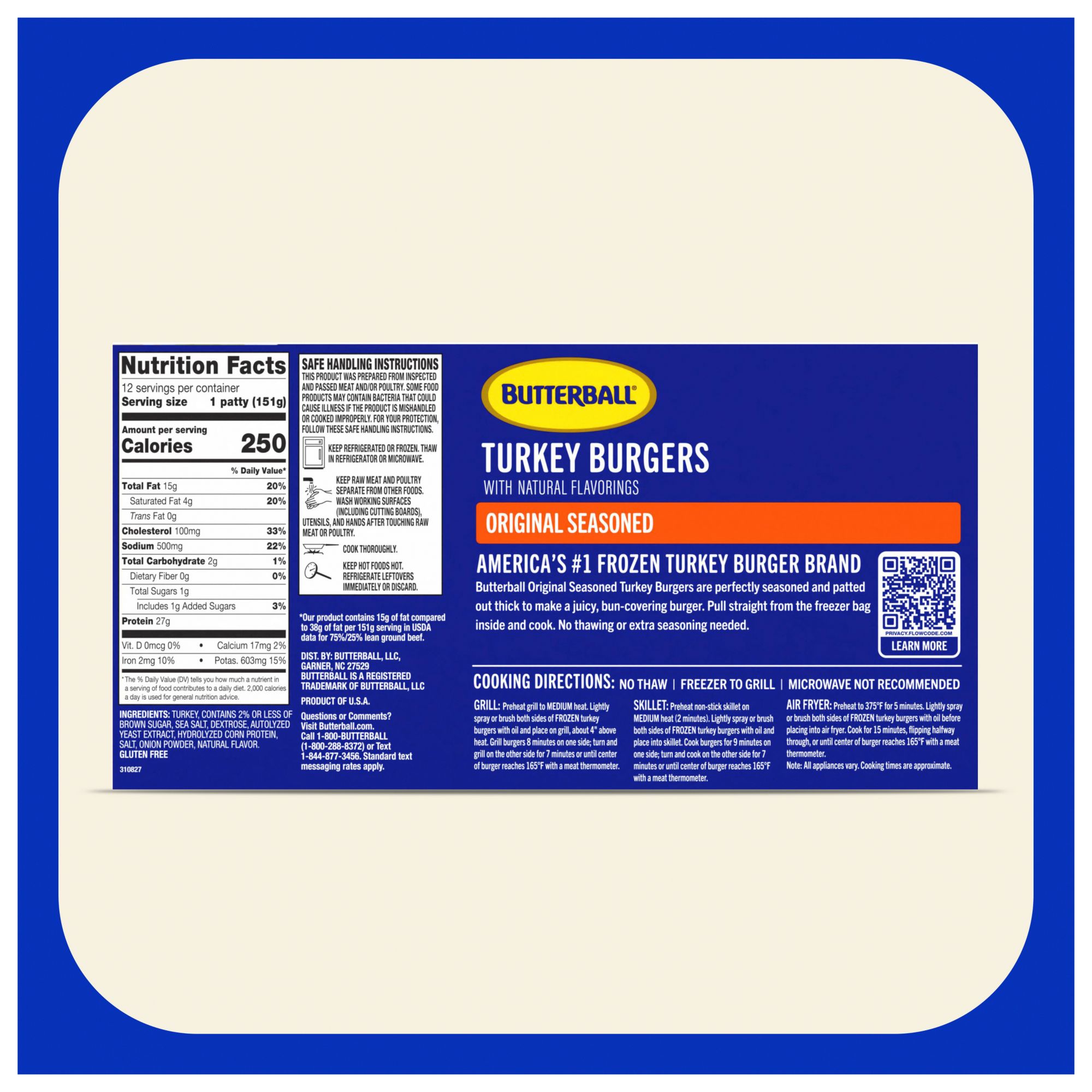 Includes 12, 1/3 lb. Butterball Original Seasoned Frozen Turkey Burger Patties
