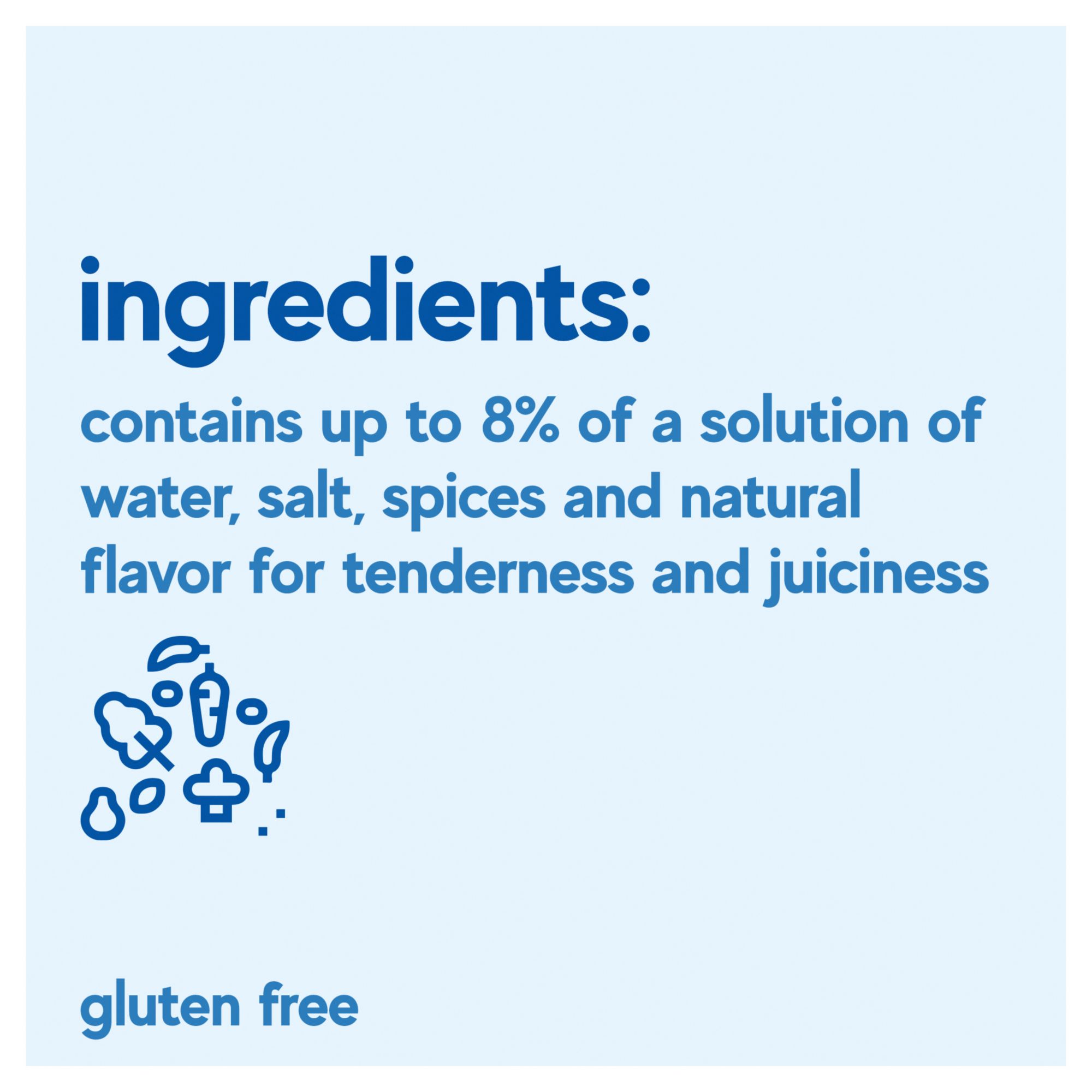 Ingredients: Whole Young Turkey. Contains up to 8% of a solution of Water, Salt, Spices, and Natural Flavor.