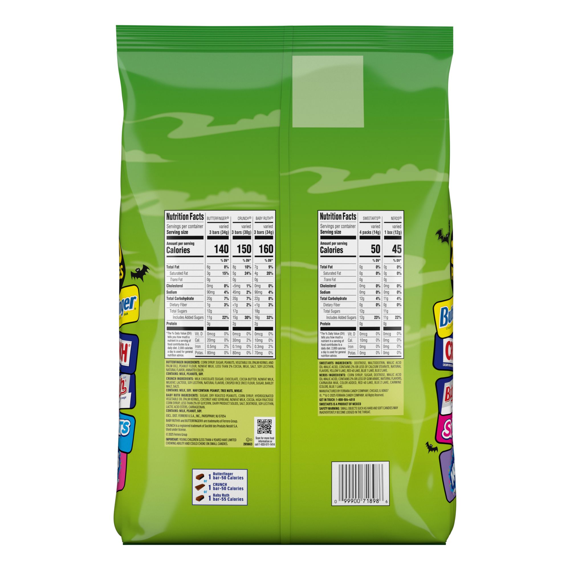 Trick-or-treat Favorites: Enjoy the tasty variety of trick-or-treat candy favorites like Butterfinger, Crunch, Baby Ruth, Nerds And Sweetarts.