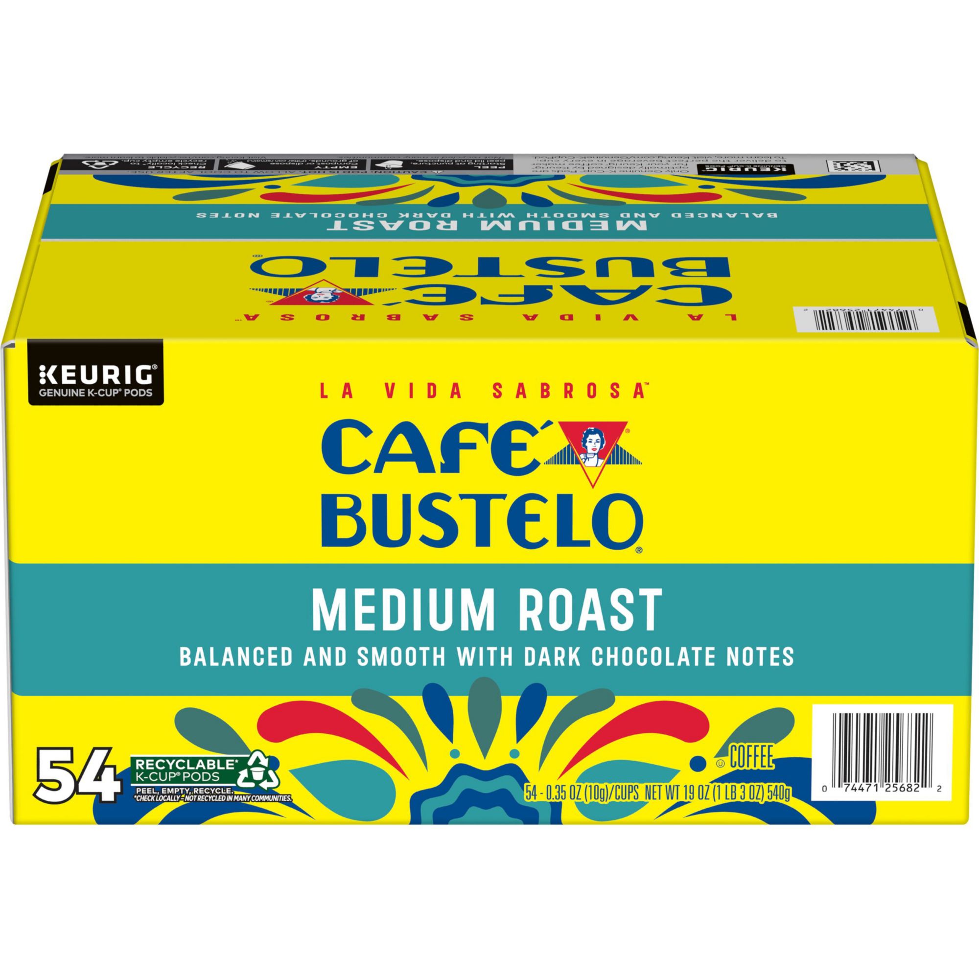Contains: One box of 54 Cafe Bustelo coffee pods