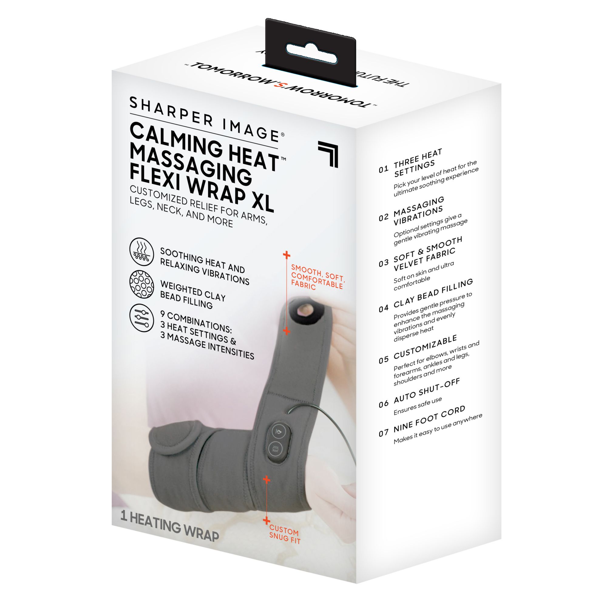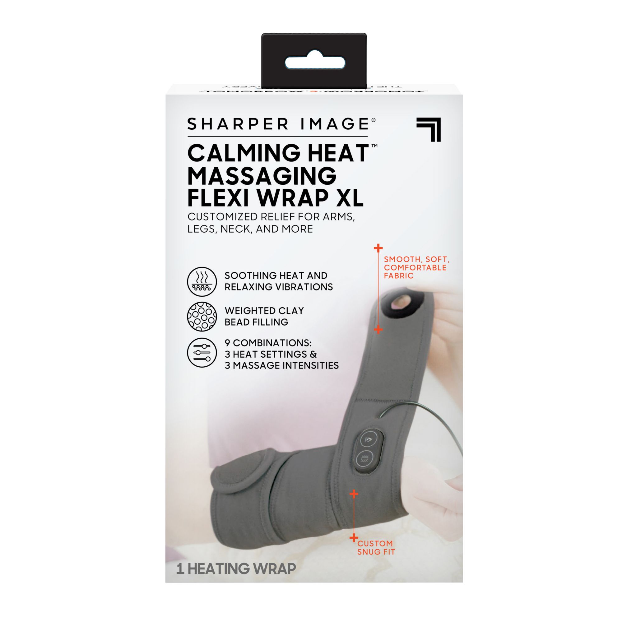 Includes calming heat flexi wrap, 9' cord and wall adapter