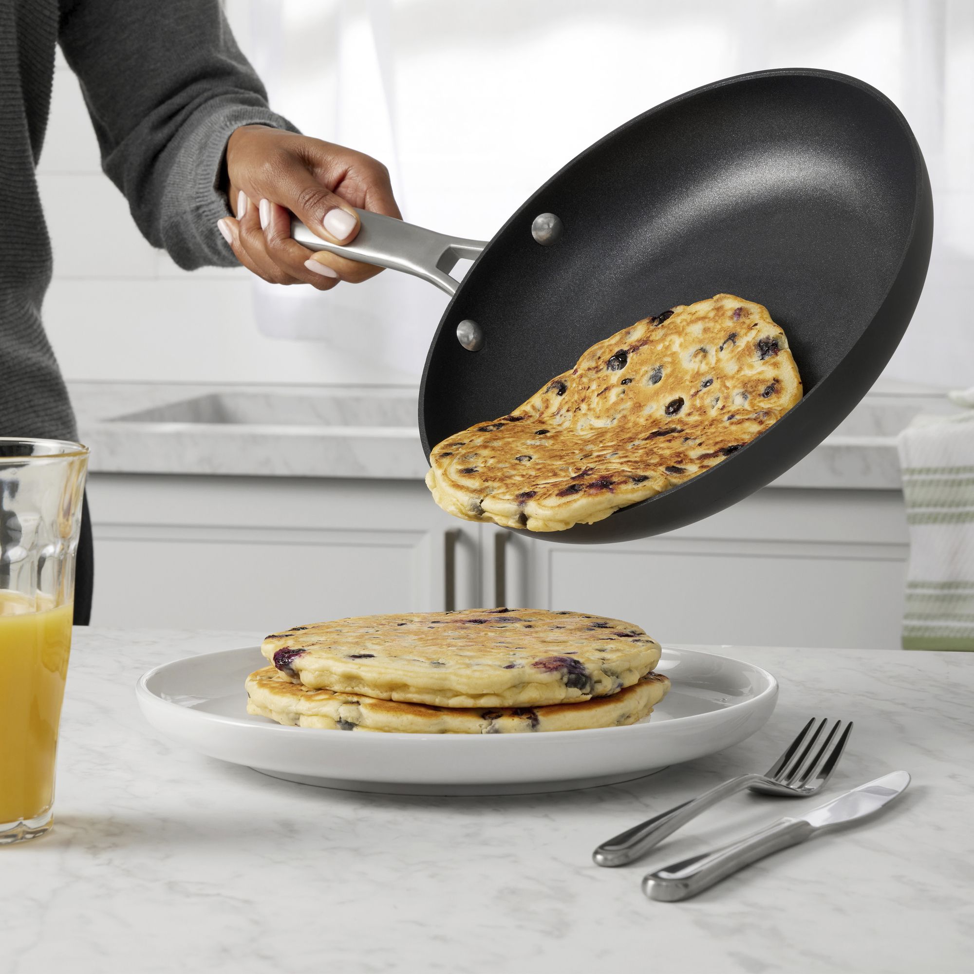 Designed to save you time in the kitchen, Calphalon Classic Hard-Anodized Nonstick Cookware delivers cooking versatility every step of the way with an improved easy-release surface. Featuring AquaShield nonstick technology, this cookware line performs like new 40% longer for remarkable food release over and over again. Made with water-based nonstick and a hard-anodized exterior, it's dishwasher-safe for quick cleanup. Convenient measuring marks, straining covers, and pour spouts allow you to cook efficiently. Long stainless steel handles make lifting and moving easy and stay cool on the stovetop. This nonstick cookware set is oven-safe up to 450°, so it can go from the stovetop into the oven for heating. Elevate your cooking experience with Calphalon Classic, and enjoy an exceptional performance with endless possibilities.