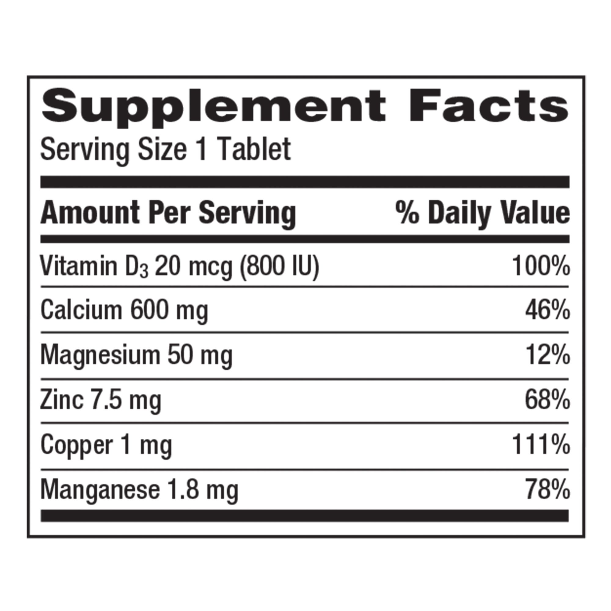 Caltrate 600+D3 Plus Minerals has calcium plus collagen-supporting minerals to help your bones stay strong and flexible. Additionally, Caltrate Plus Minerals has the most vitamin D3 to help maximize calcium absorption to support stronger, healthier bones.*