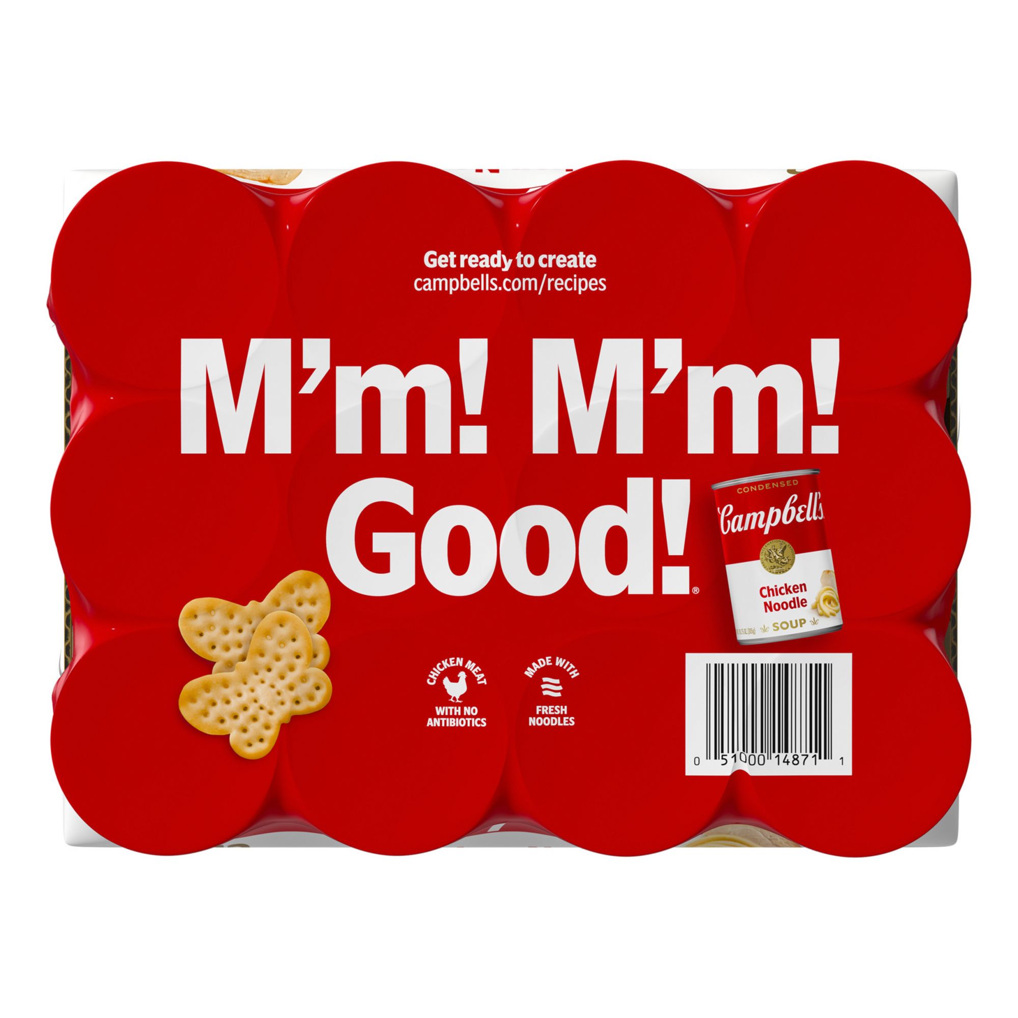 Campbell's Condensed chicken noodle soup is made with chicken meat with no antibiotics and delicious, fresh noodles