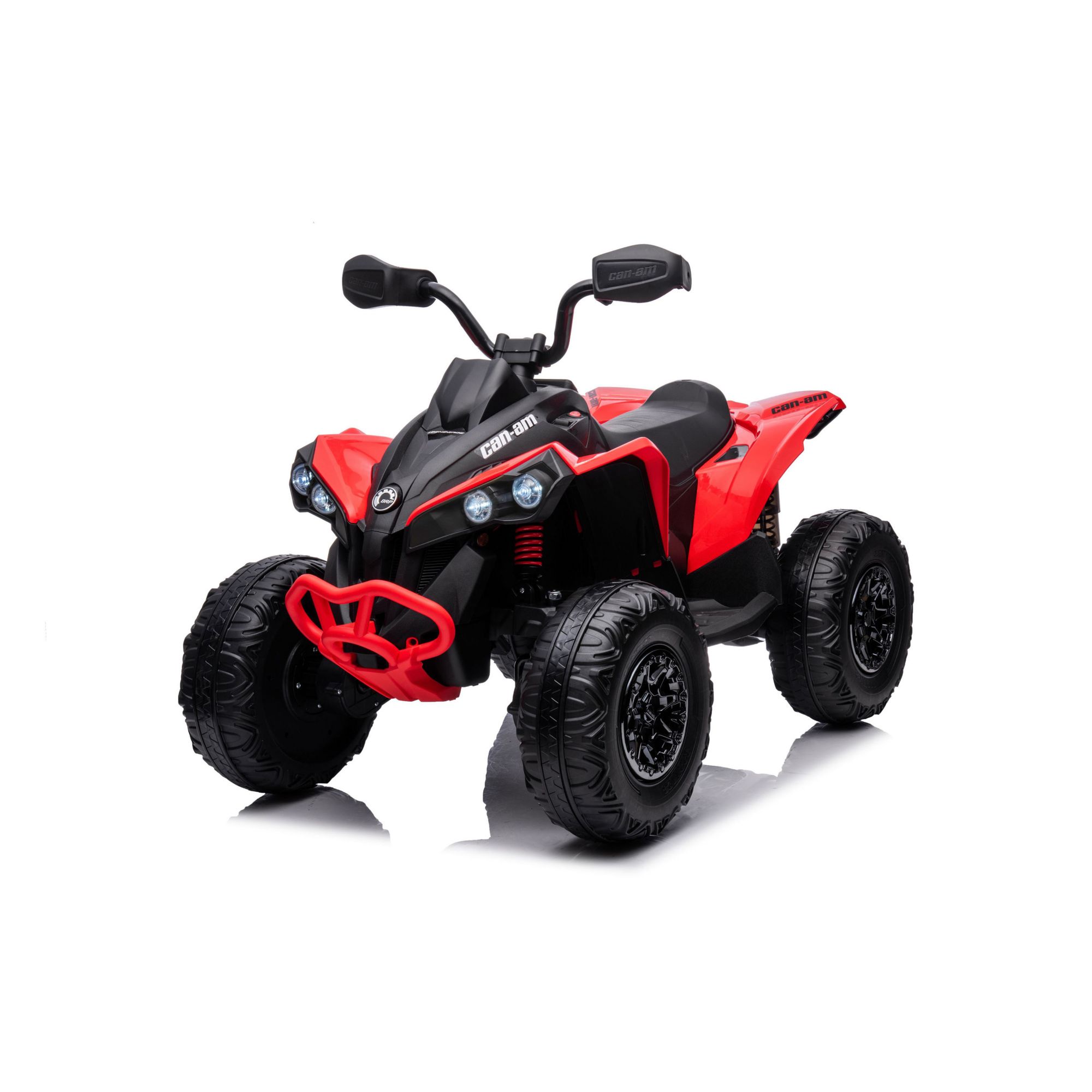 Your child will feel the thrill of riding an officially licensed Can-Am Renegade ATV like an adult. Features include LED lights, MP3 music, a USB radio, and a spring suspension. Accommodates a child up to 66 pounds and runs at a safe 2-3 MPH. The rechargeable 12V, 4.5 AH battery recharges easily in 8 to 10 hours by plugging the charge cord into a standard household outlet.