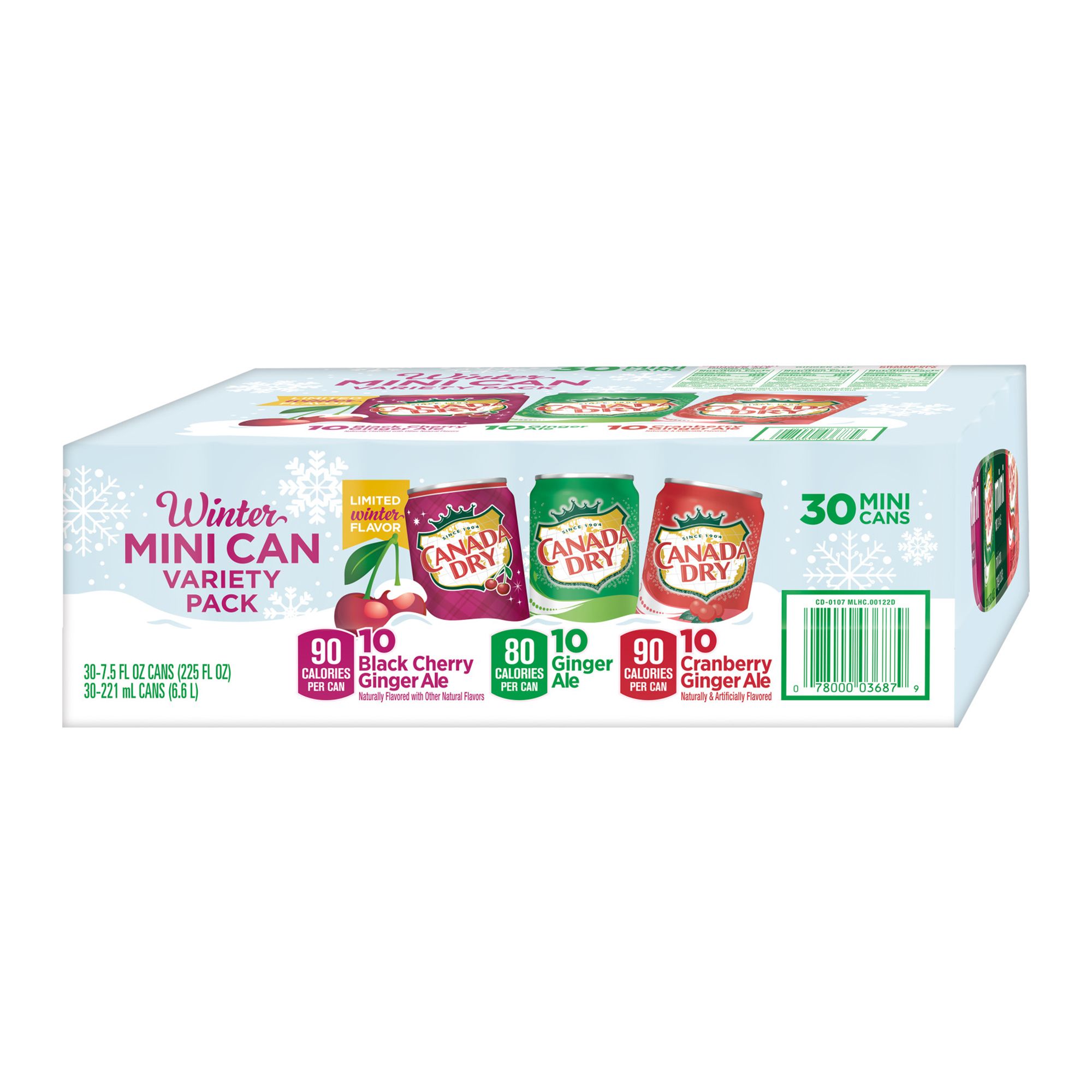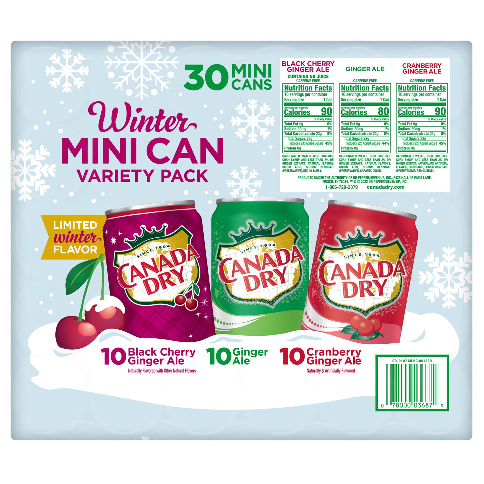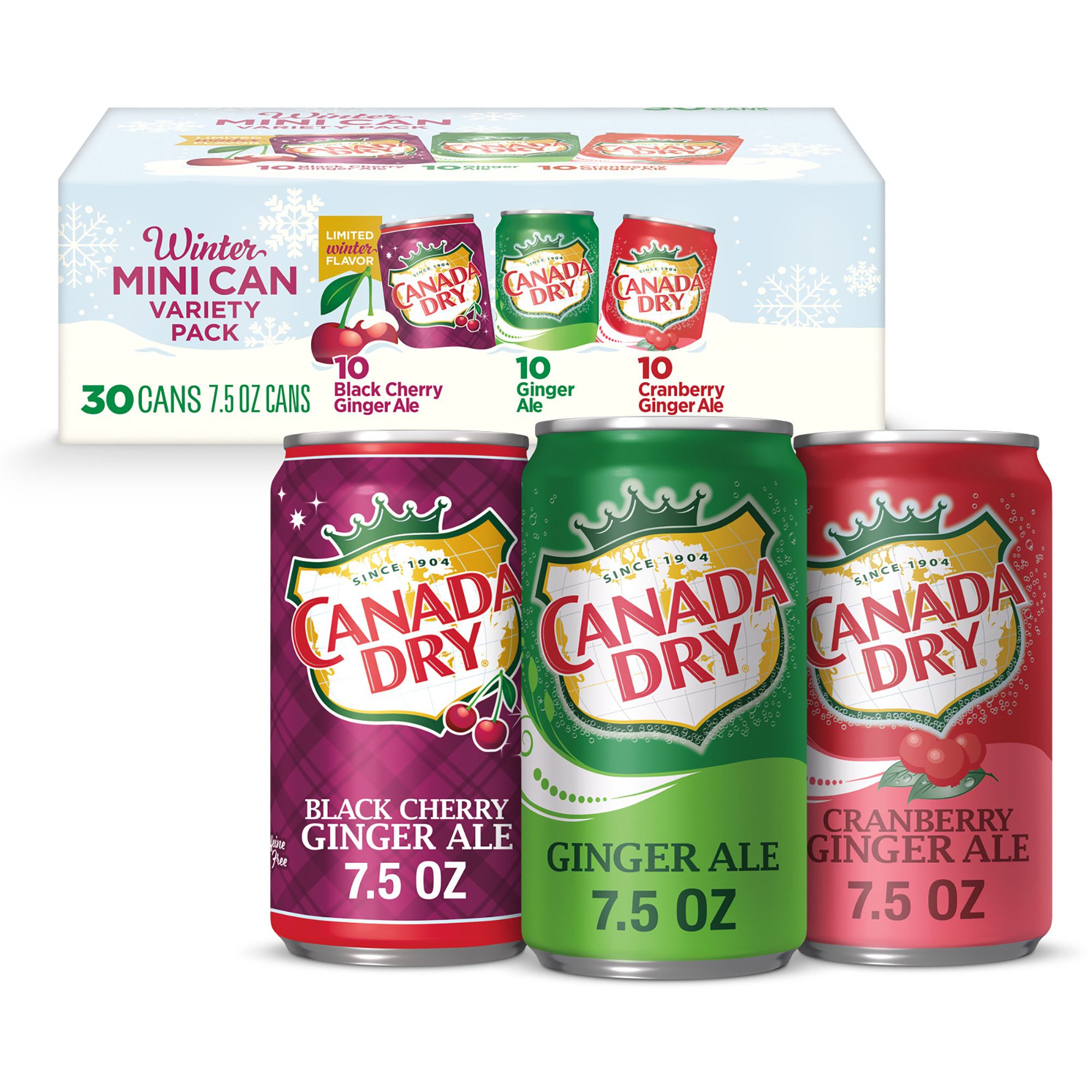 Canada Dry Ginger Ale Winter Mini Cans Variety Pack, 30 pk.