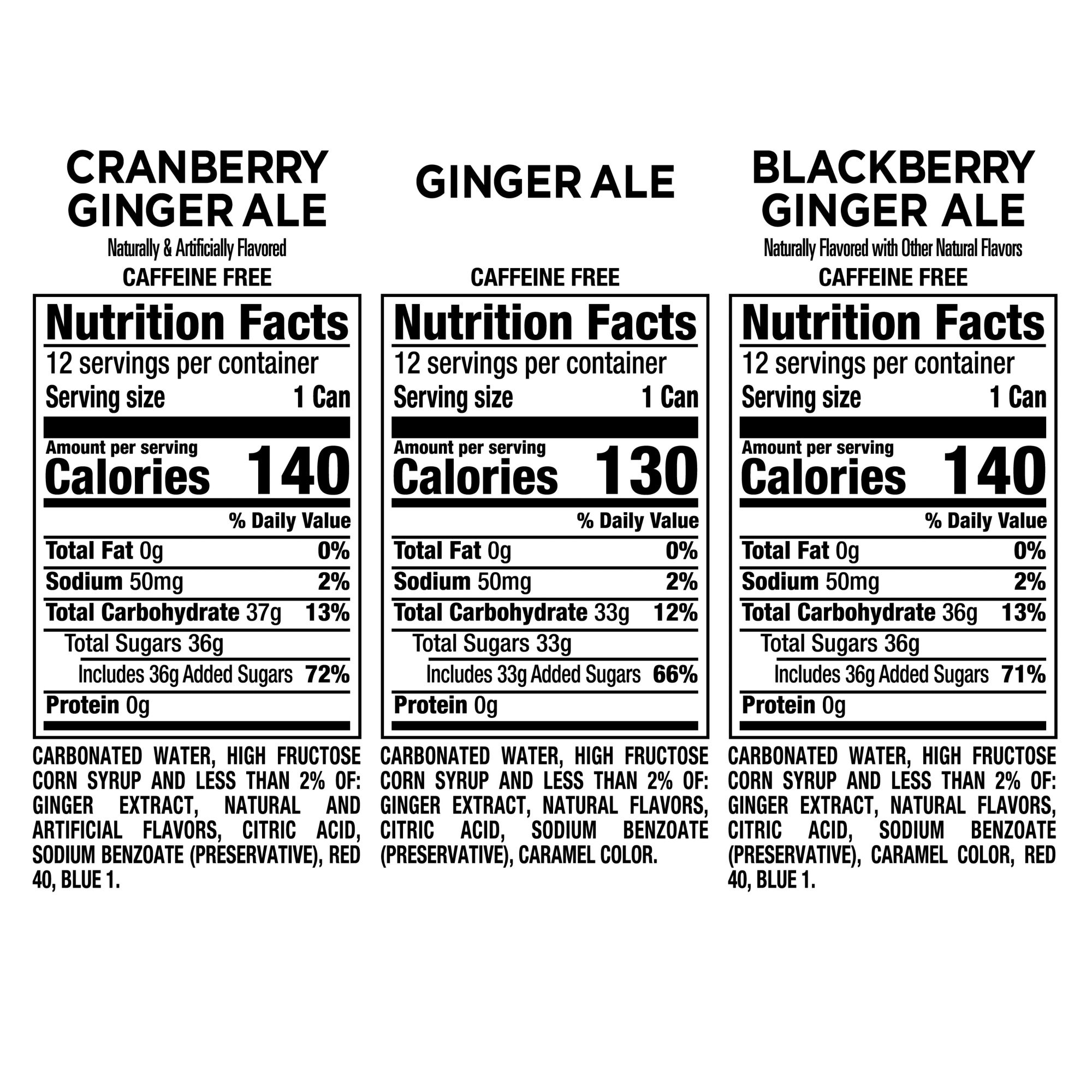 Includes classic ginger ale, cranberry ginger ale and blackberry ginger ale sodas