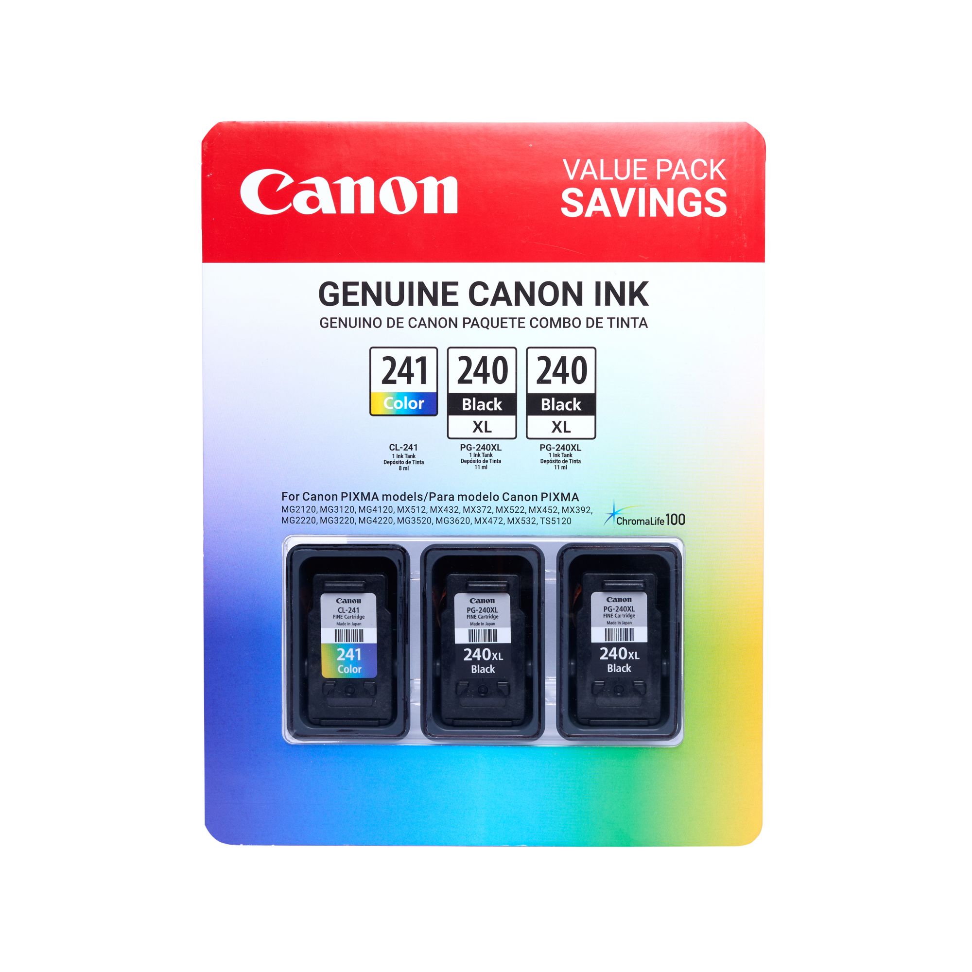 Canon PG-240XL and CL-241 Combo Ink Cartridges, 3 Pack