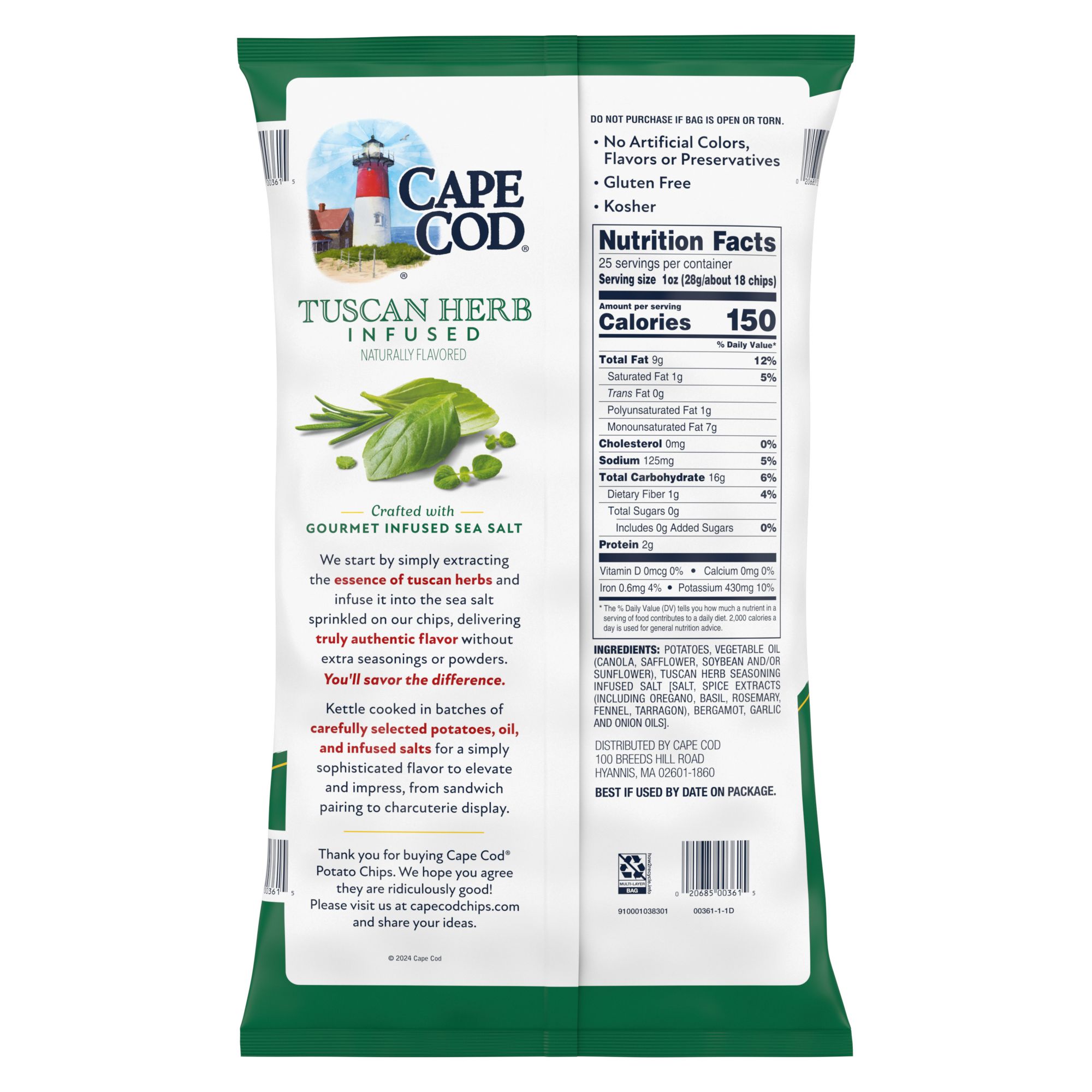 Includes one (1) 25-ounce bag of Cape Cod Tuscan Herb Infused Naturally Flavored Chips