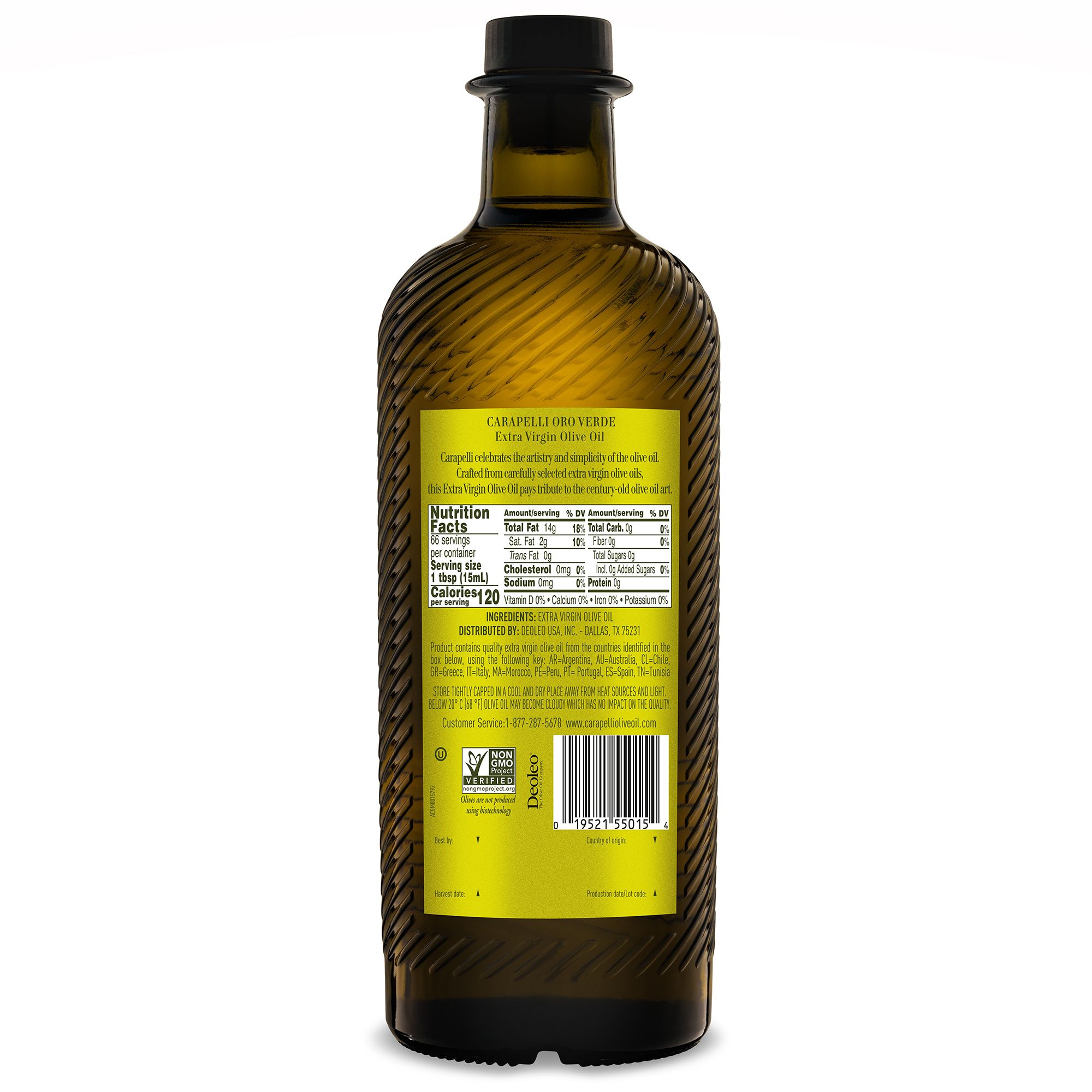 Carapelli Oro Verde Extra Virgin Olive Oil is a well-balanced blend of Mediterranean olive oils made from first cold pressing of the entire olive. Perfected by tradition, this olive oil captures the classical heritage of Carapelli. Carapelli Oro Verde is what the everyday EVOO should be, its mild intensity makes it a great accompaniment to any meal. The characteristic flavor of this extra virgin olive oil features aromas of leaves harmoniously balanced with a taste of almonds, artichokes and fresh vegetables. This oil is a great addition to any pantry. EVOO is best consumed fresh and will decay in quality once opened. While Carapelli bottles are designed to protect against UV-light, prolong your oil's shelf life by storing the bottle away from light and heat such as a stove. Do not refrigerate. When choosing an EVOO for your cooking and general use, always check the best before and harvest date to ensure fresh quality. All Carapelli bottles are stamped with this information.