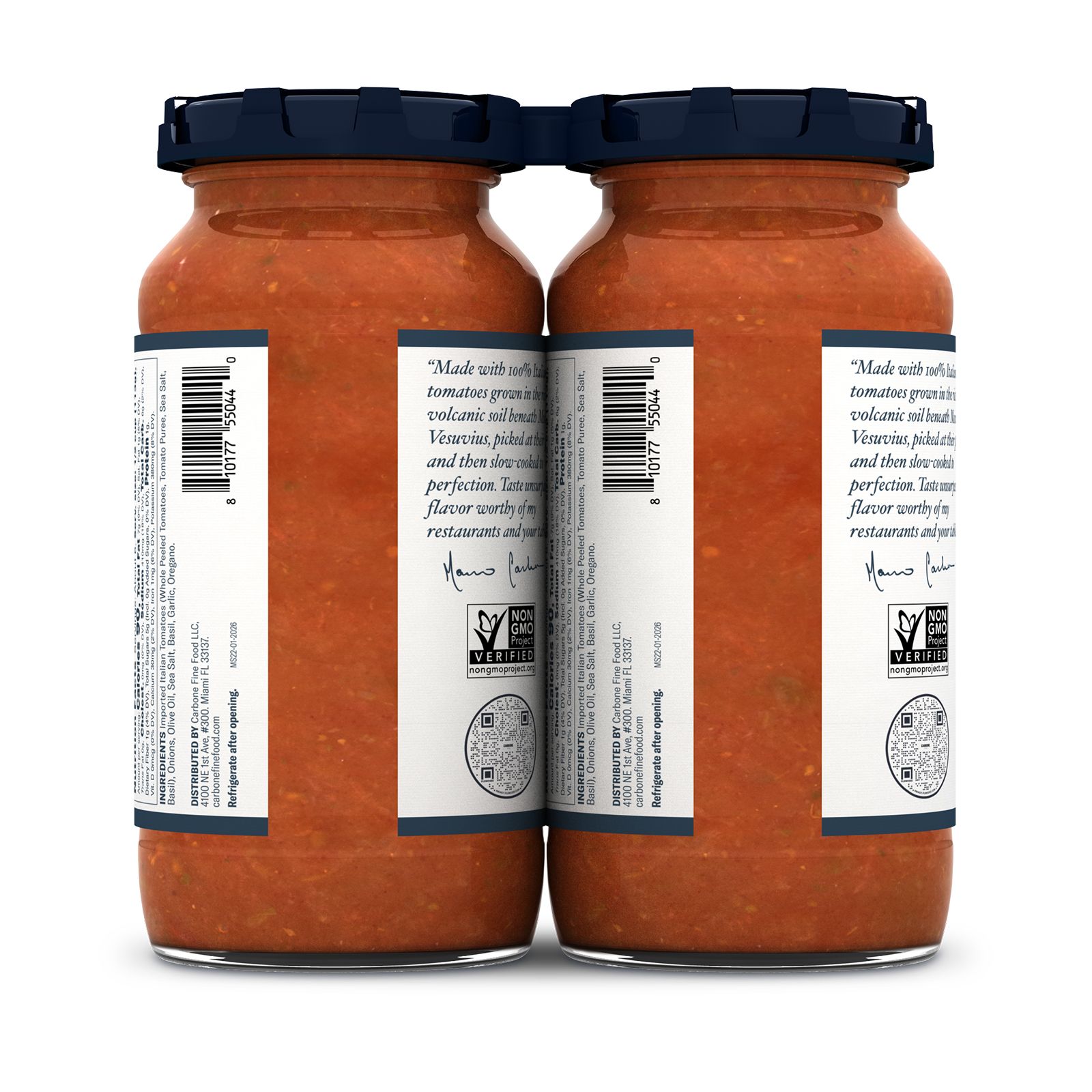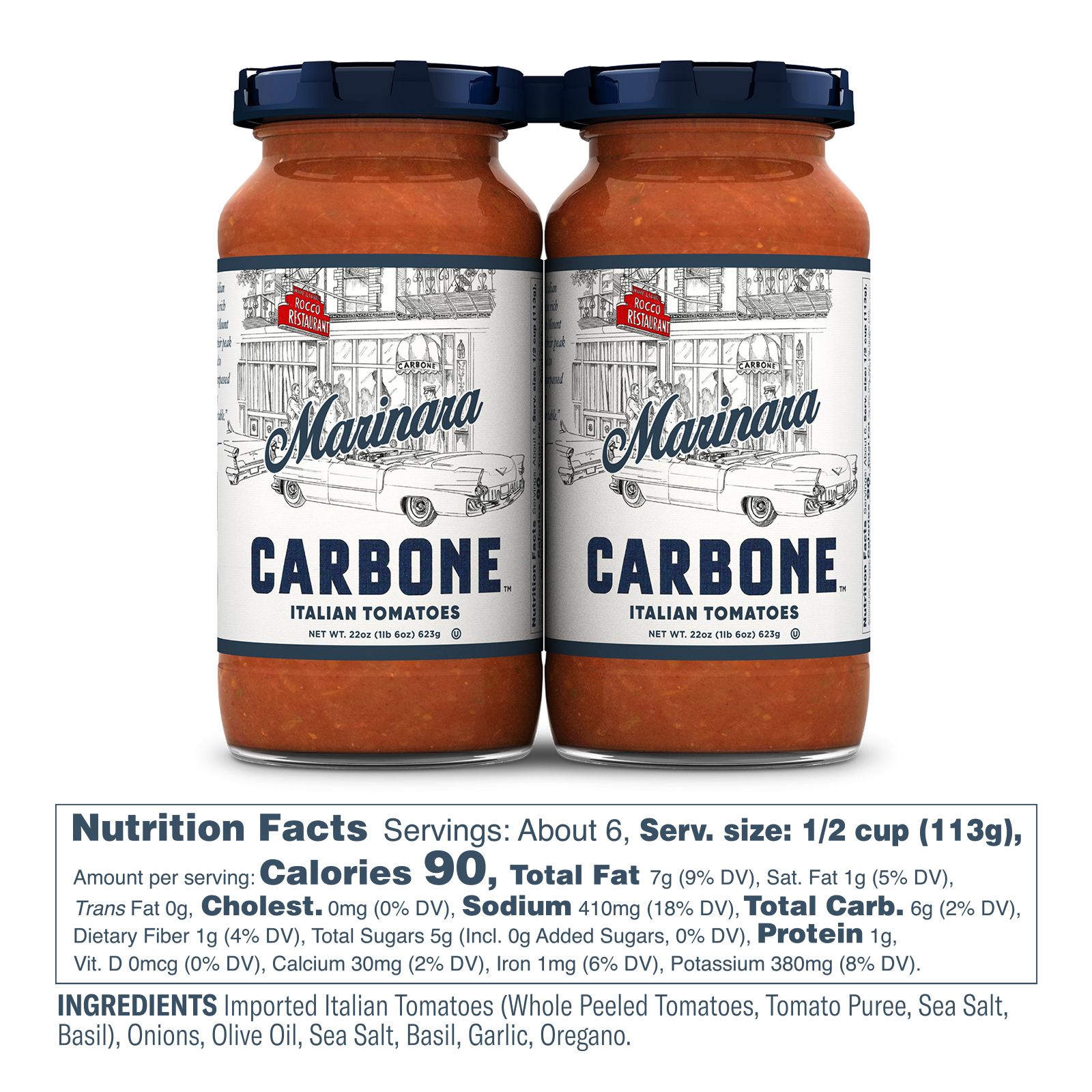 Our take on the quintessential homemade pasta sauce straight from the famous kitchen at Carbone. Using only the finest imported Italian tomatoes our popular marinara sauce is cooked slow with fresh ingredients in small batches. Elevate your “marinara” experience with this exceptional offering. Simply serve with your favorite recipes, like penne pasta, meatballs, chicken parmesan, and spaghetti bolognese.