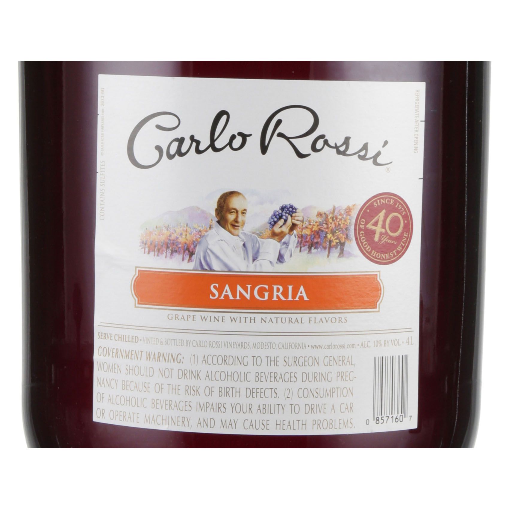 Carlo Rossi Sangria Red Wine delivers fruit-forward notes of red fruits and citrus fruits. This red wine pairs perfectly with slices of fresh fruit. An unpretentious wine, this fruity Sangria in a larger 4L bottle is ideal for your next fiesta or pool party. This Sangria wine is best served chilled. Because of its screw top lid, this Carlo Rossi gallon wine bottle allows for easy opening and secure storage.