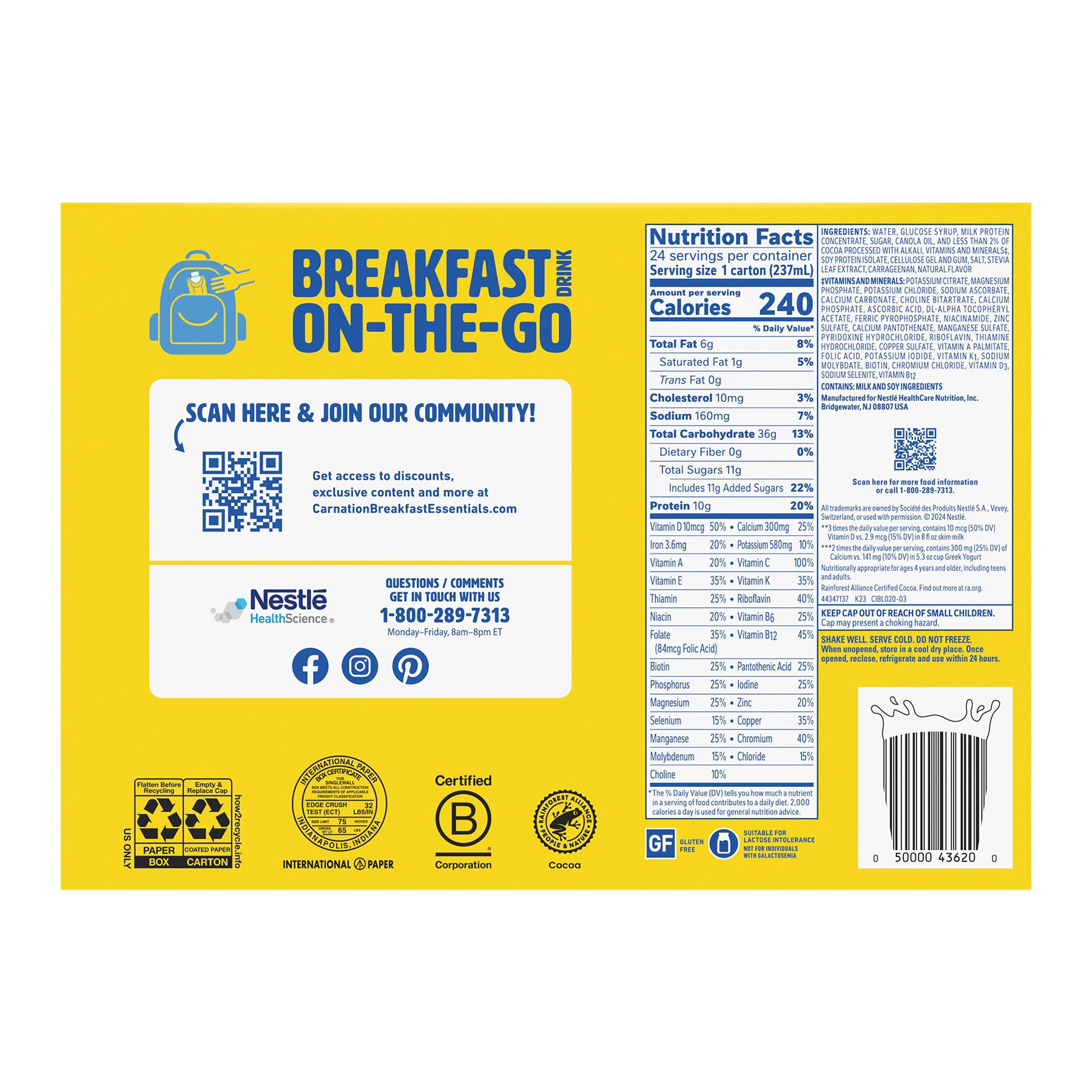Carnation Breakfast Essentials Ready to Drink with Fiber, Rich Milk Chocolate, 24 pk./8 fl. oz.