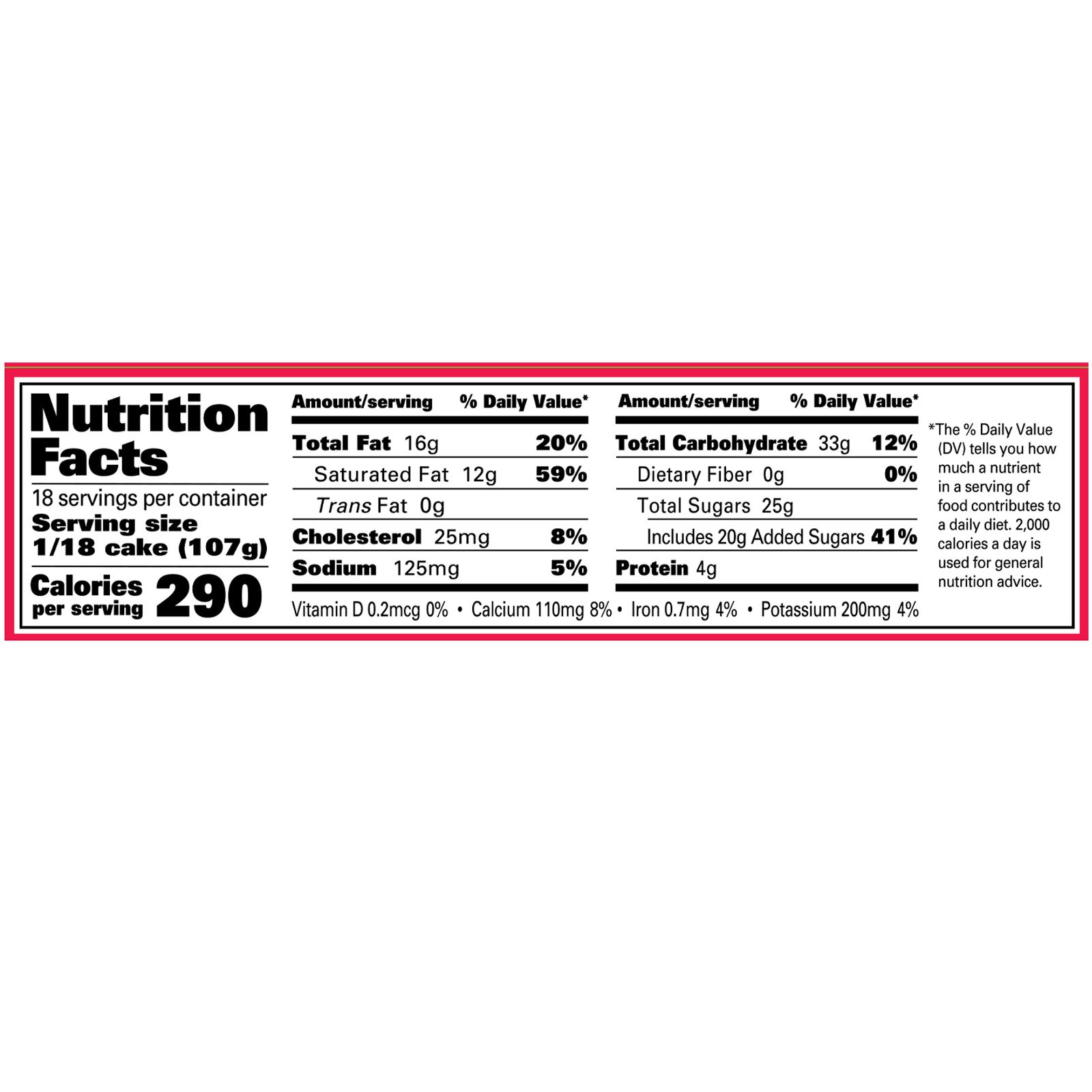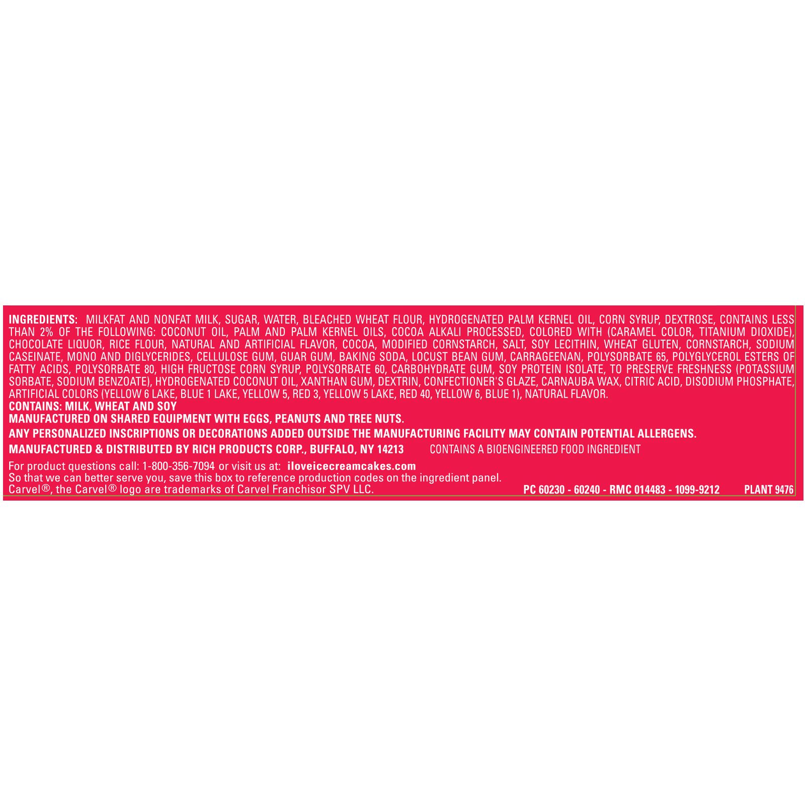 Ingredients: Milkfat and Nonfat Milk, Sugar, Water, Bleached Wheat Flour, Hydrogenated Palm Kernel Oil, Corn Syrup, Dextrose, Contains Less than 2% of the Following: Coconut Oil, Palm and Palm Kernel Oils, Cocoa Alkali Processed, Colored with (Caramel Color, Titanium Dioxide), Chocolate Liquor, Rice Flour, Natural and Artificial Flavor, Cocoa, Modified Cornstarch, Salt, Soy Lecithin, Wheat Gluten, Cornstarch, Sodium Caseinate, Mono and Diglycerides, Cellulose Gum, Guar Gum, Baking Soda, Locust Bean Gum, Carrageenan, Polysorbate 65, Polyglycerol Esters of Fatty Acids, Polysorbate 80, High Fructose Corn Syrup, Polysorbate 60, Carbohydrate Gum, Soy Protein Isolate, to Preserve Freshness (Potassium Sorbate, Sodium Benzoate), Hydrogenated Coconut Oil, Xanthan Gum, Dextrin, Confectioner's Glaze, Carnauba Wax, Citric Acid, Disodium Phosphate, Artificial Colors (Yellow 6 Lake, Blue 1 Lake, Yellow 5, Red 3, Yellow 5 Lake, Red 40, Yellow 6, Blue 1), Natural Flavor.