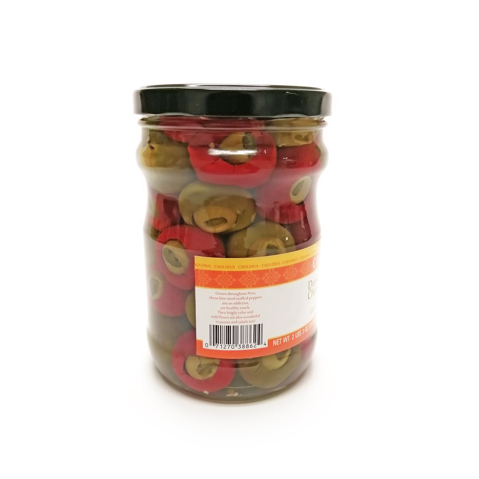 All natural Peruvian Sweet Pepper stuffed with Olives and Jalapenos are great in any application. Plate them solo to brighten up any appetizer or include them in salads, hors d’oeuvres, salad bars and much more.