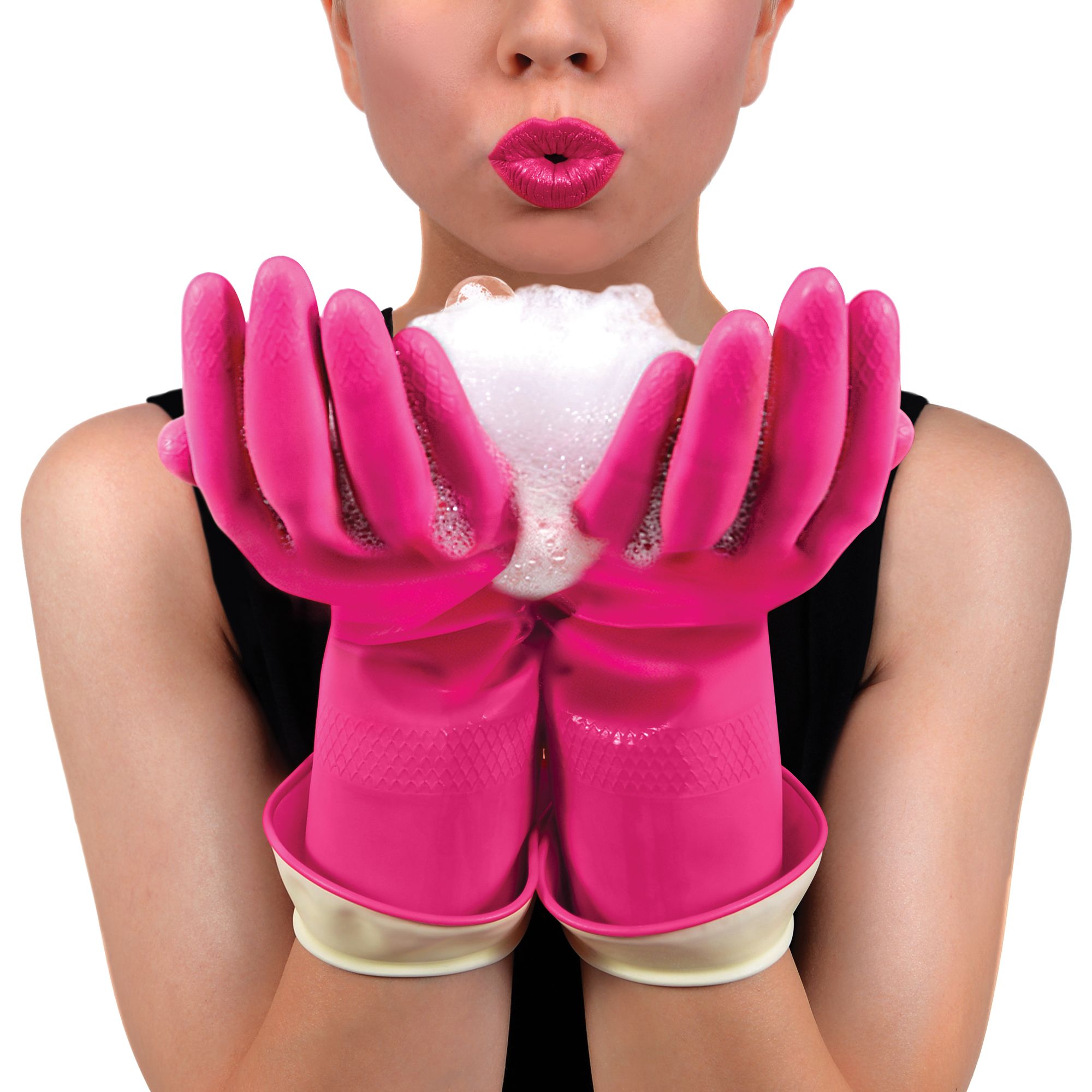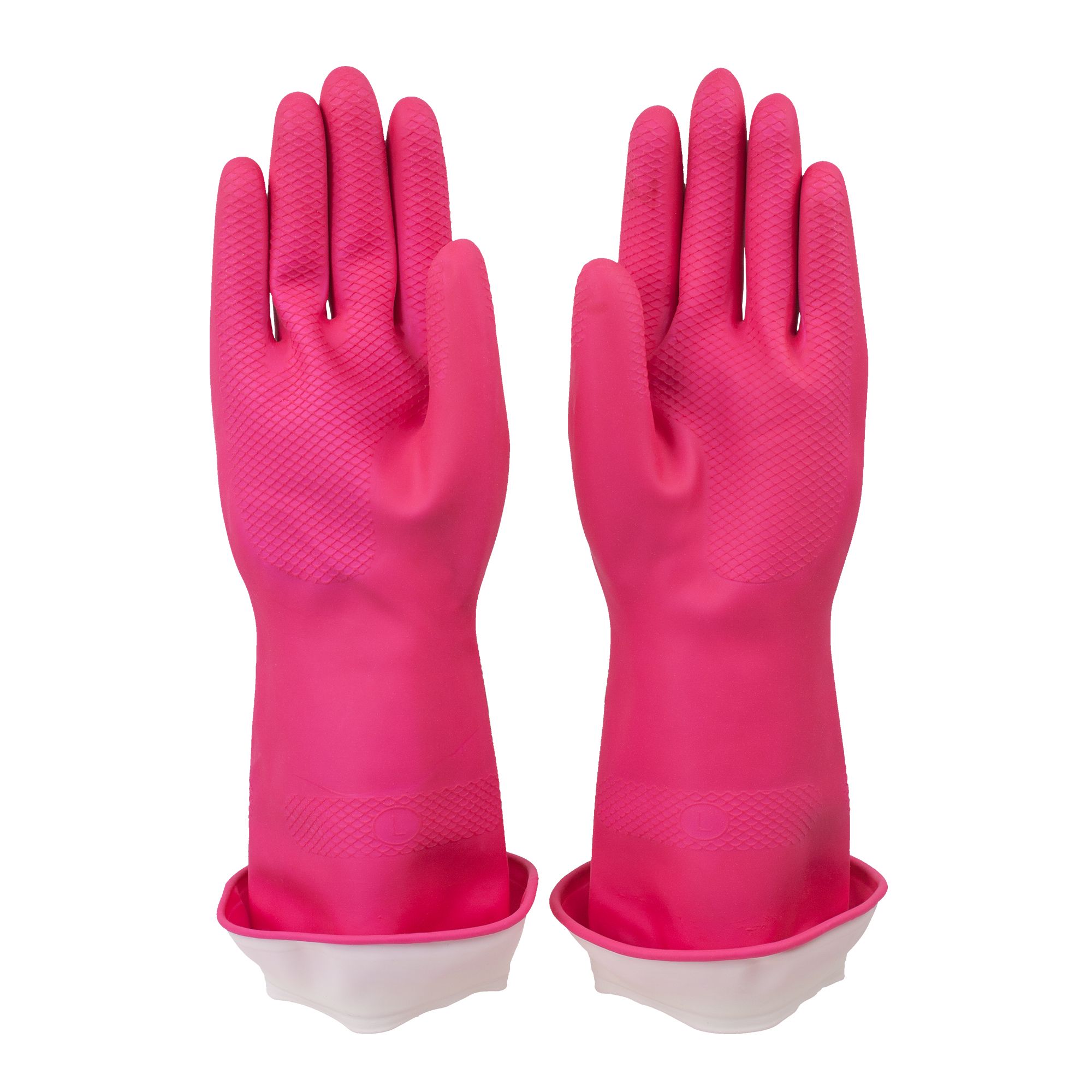 Turnback cuff keeps arms and sleeves dry Latex with cotton lining Tailored fit for dexterity Embossed texture helps grip slippery objects Pleasant fragrance with no lingering latex smell Durable and long lasting Perfect for dish washing, car washing, bath cleaning, oven cleaning and other chores Includes 2 pairs of latex gloves