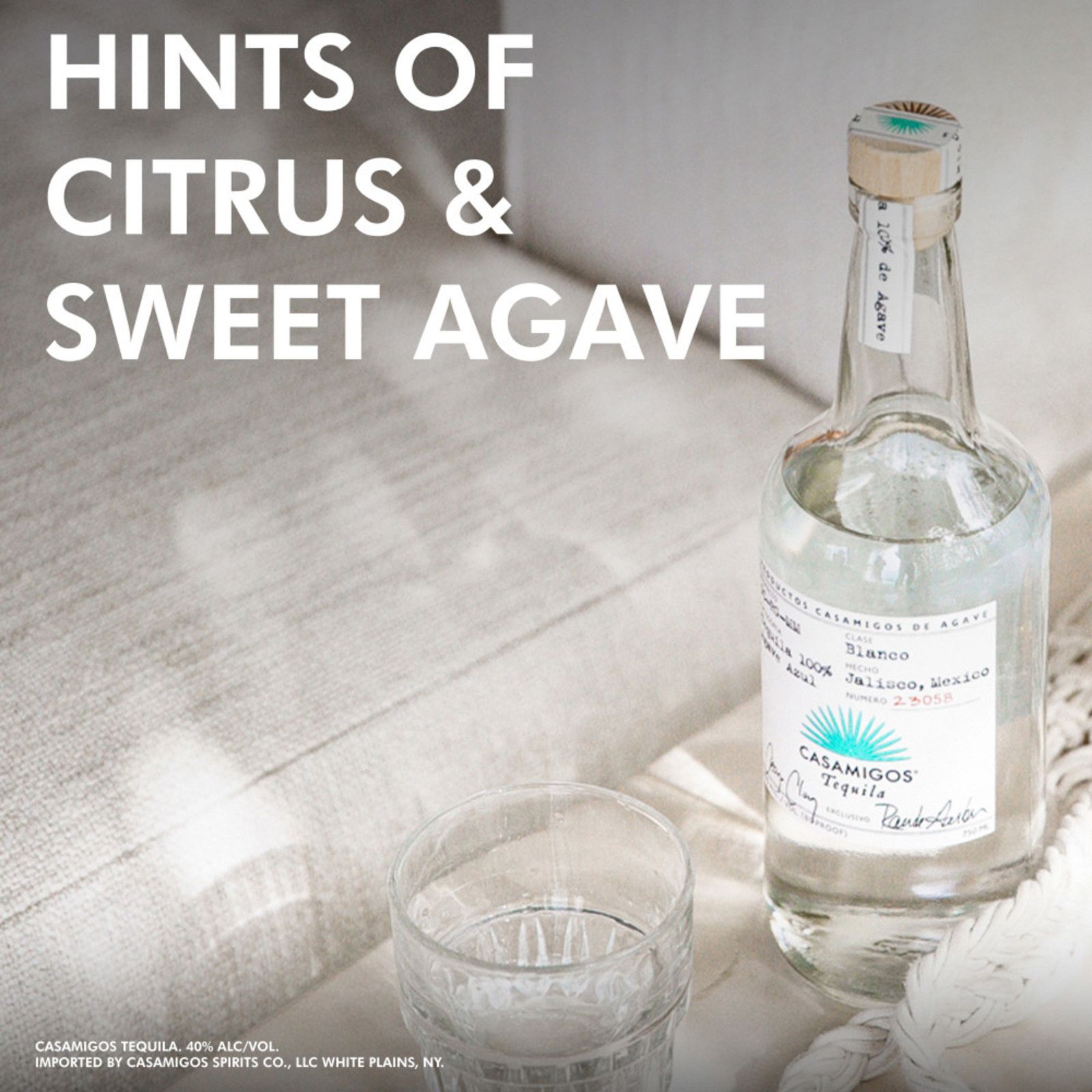 Experience Casamigos Blanco, a crystal-clear tequila made from 100% Blue Weber agave grown in Mexico's rich clay soils. Slow roasted for optimal flavor, it offers crisp notes of citrus, vanilla, and sweet agave. The smooth, long finish highlights a vibrant mix of grapefruit and fruit-forward flavors. Perfect for sipping neat, on the rocks, or in cocktails, Casamigos Blanco combines versatility and elegance, celebrating the spirit of Mexico with every sip. Includes one 80 proof 750 mL bottle of Casamigos Blanco Tequila. Please drink responsibly.