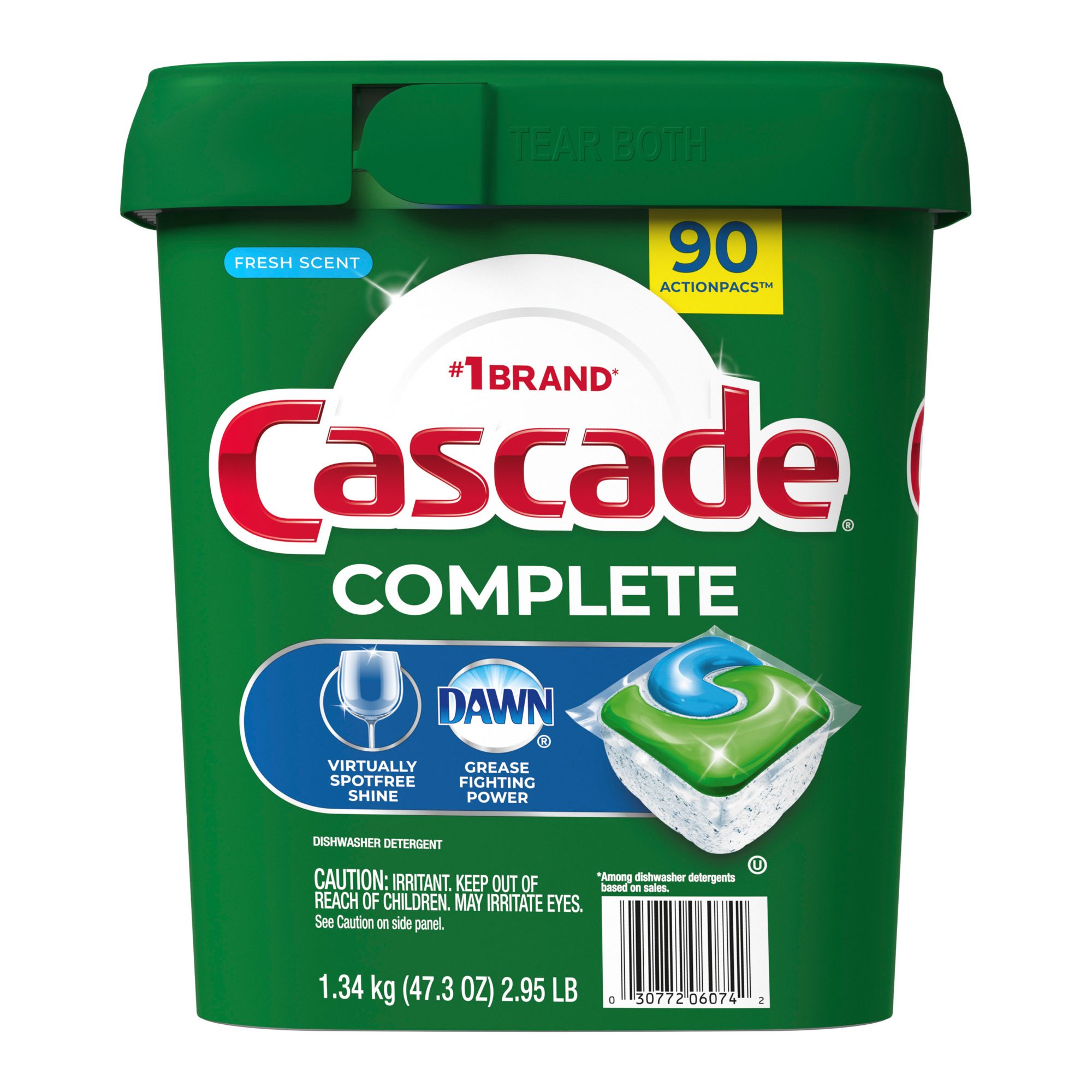Cascade Complete Fresh Scent Dishwasher Detergent Action Pacs, 90 ct.